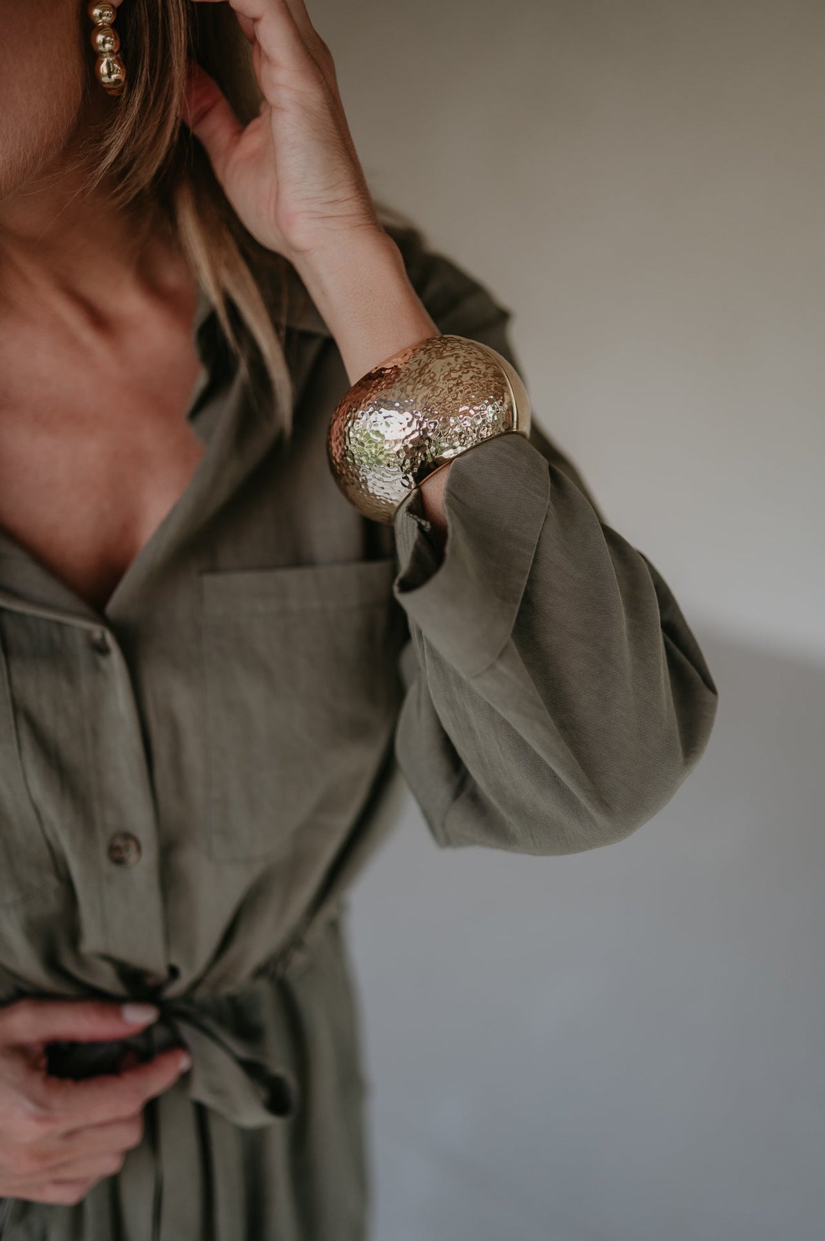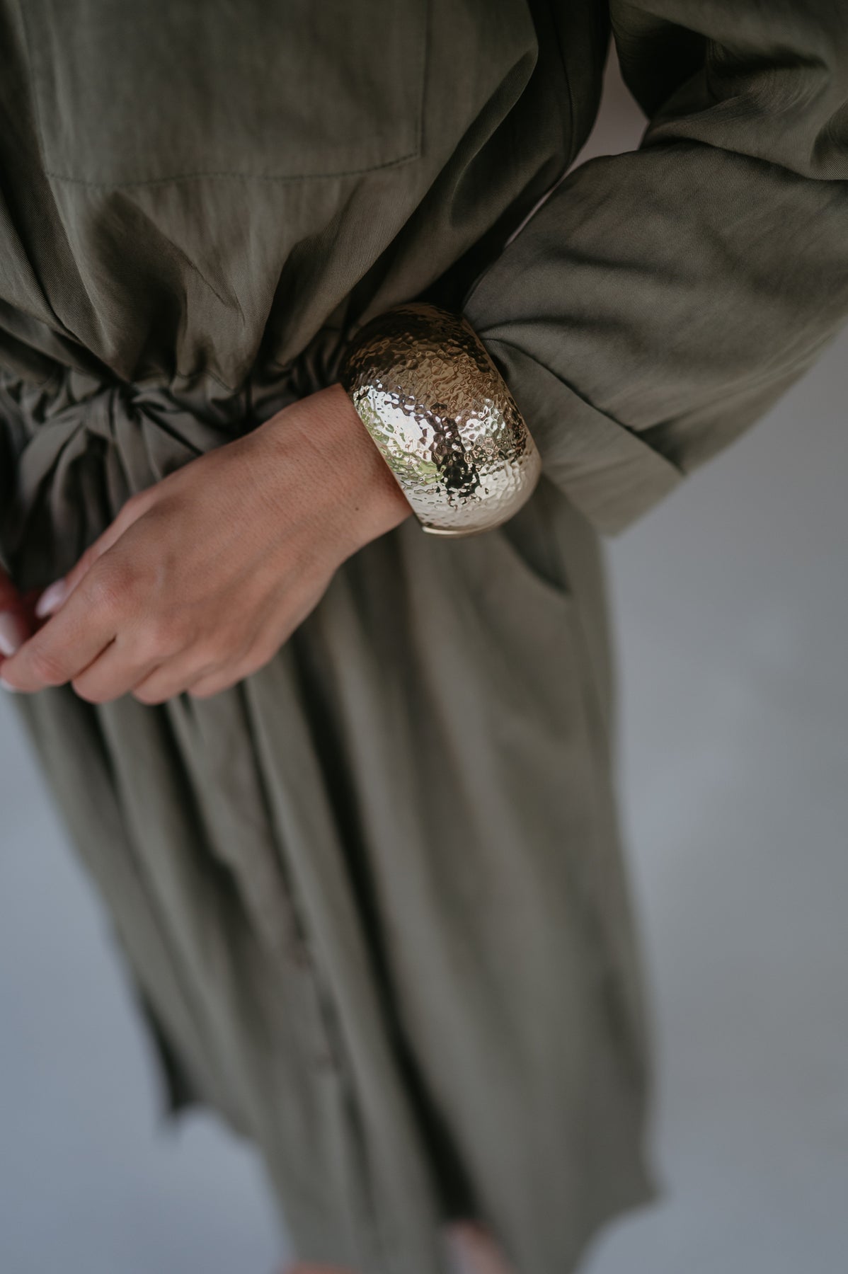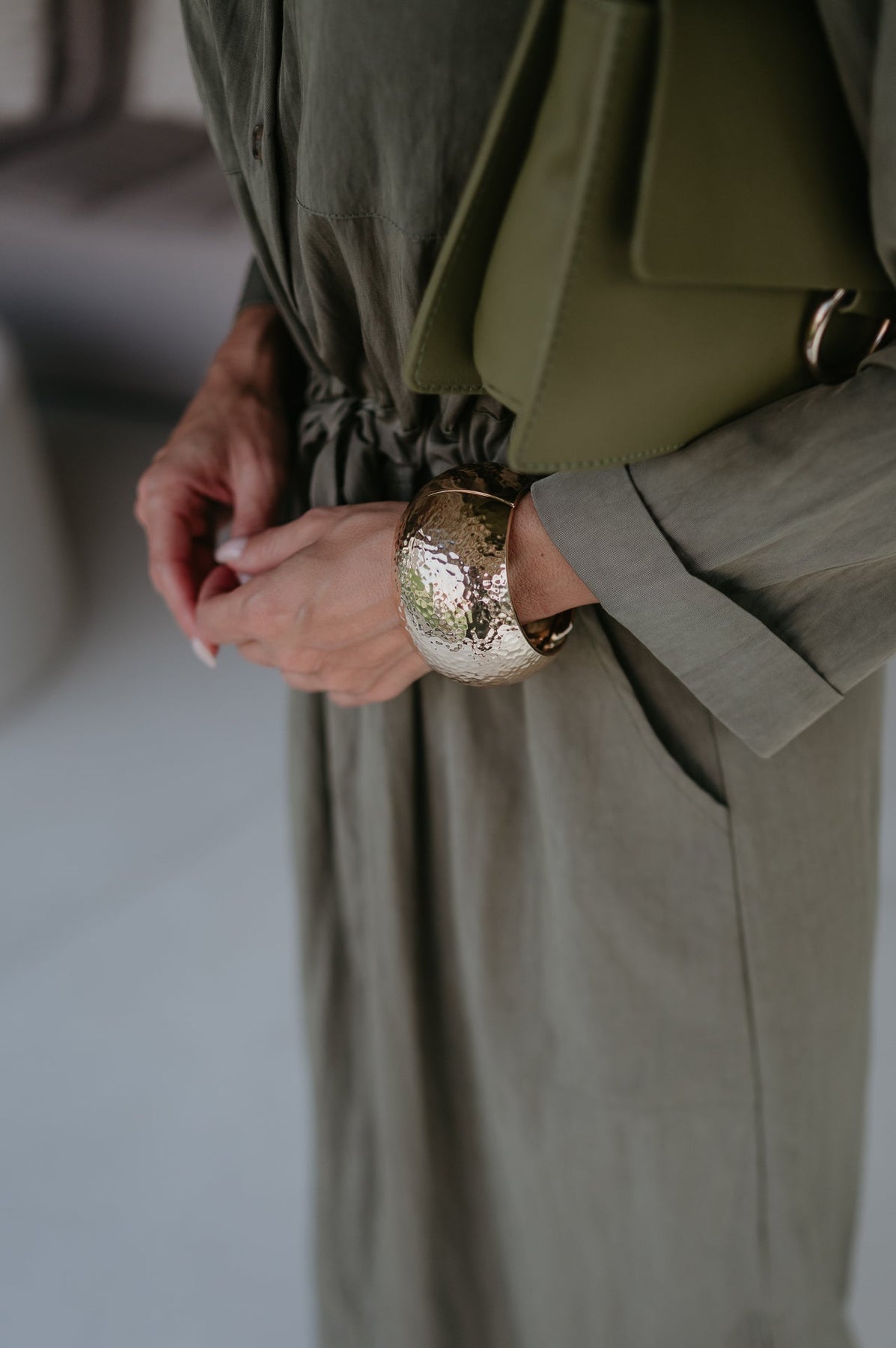 Dankzij de makkelijke sluiting draag je hem snel en comfortabel, terwijl de glanzende gouden finish elke outfit direct een luxe touch geeft.