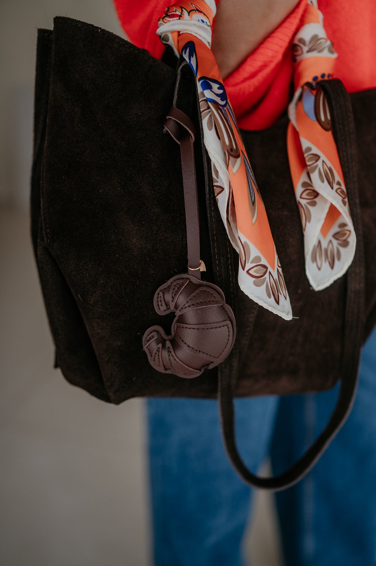 Deze croissant sleutelhanger is het perfecte accessoire voor je sleutelbos of handtas.