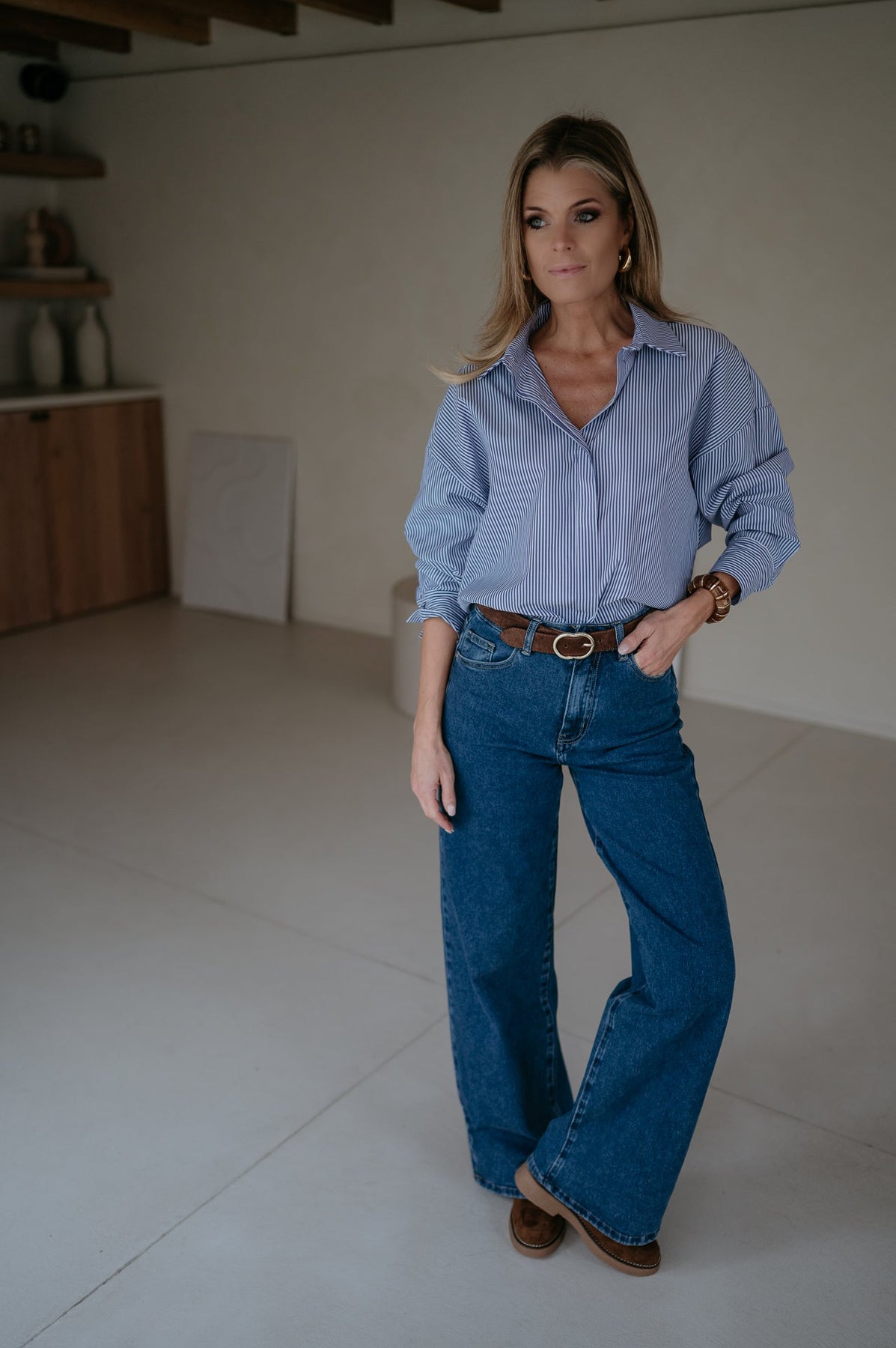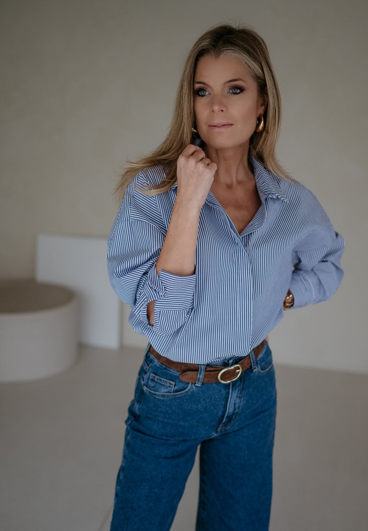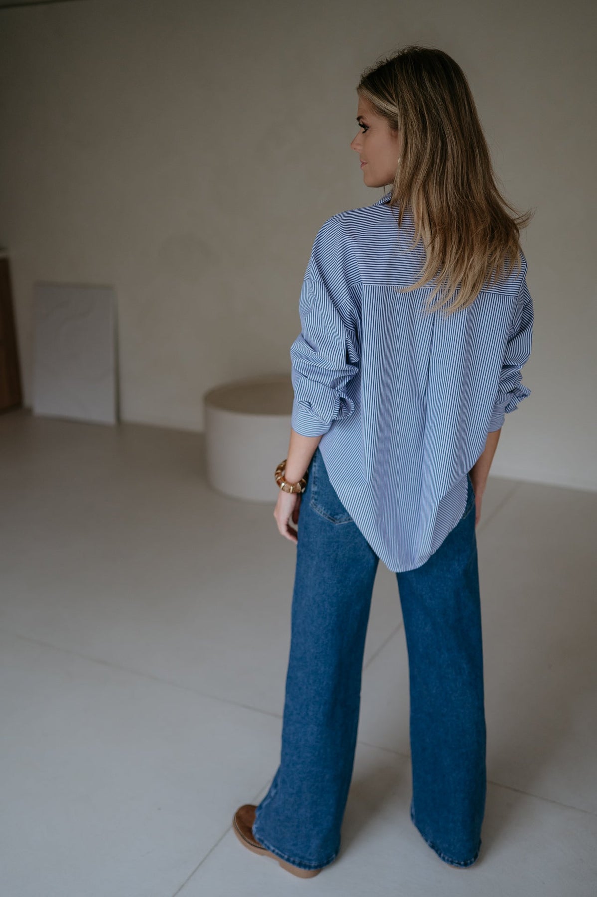 Dit prachtige hemd met blauw-witte streepjes is een echte essential voor je garderobe.