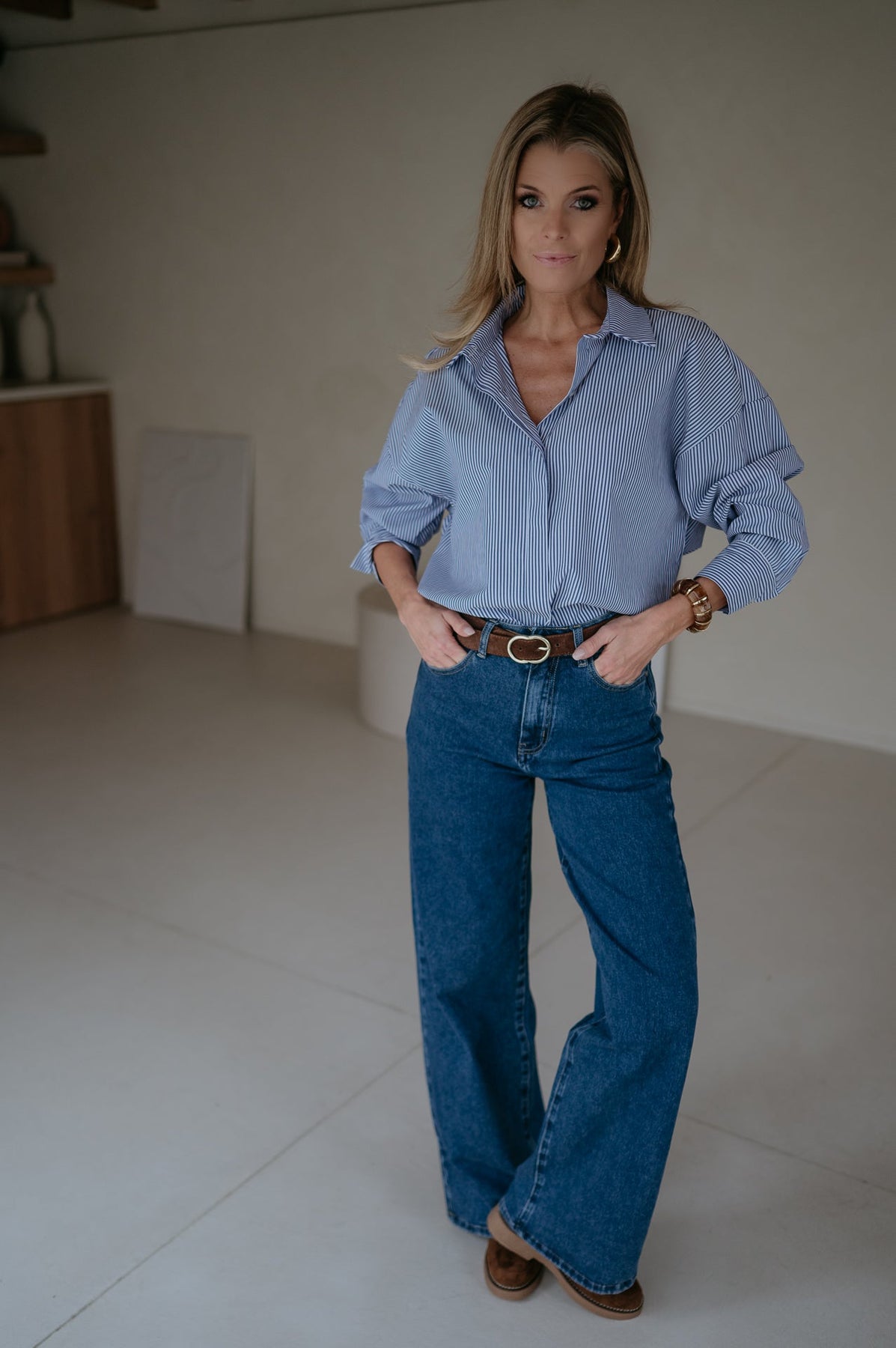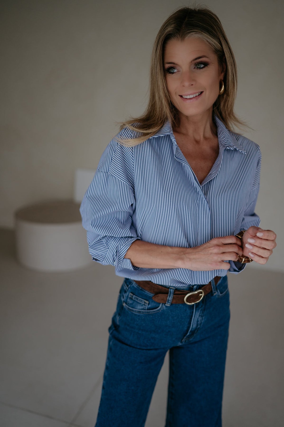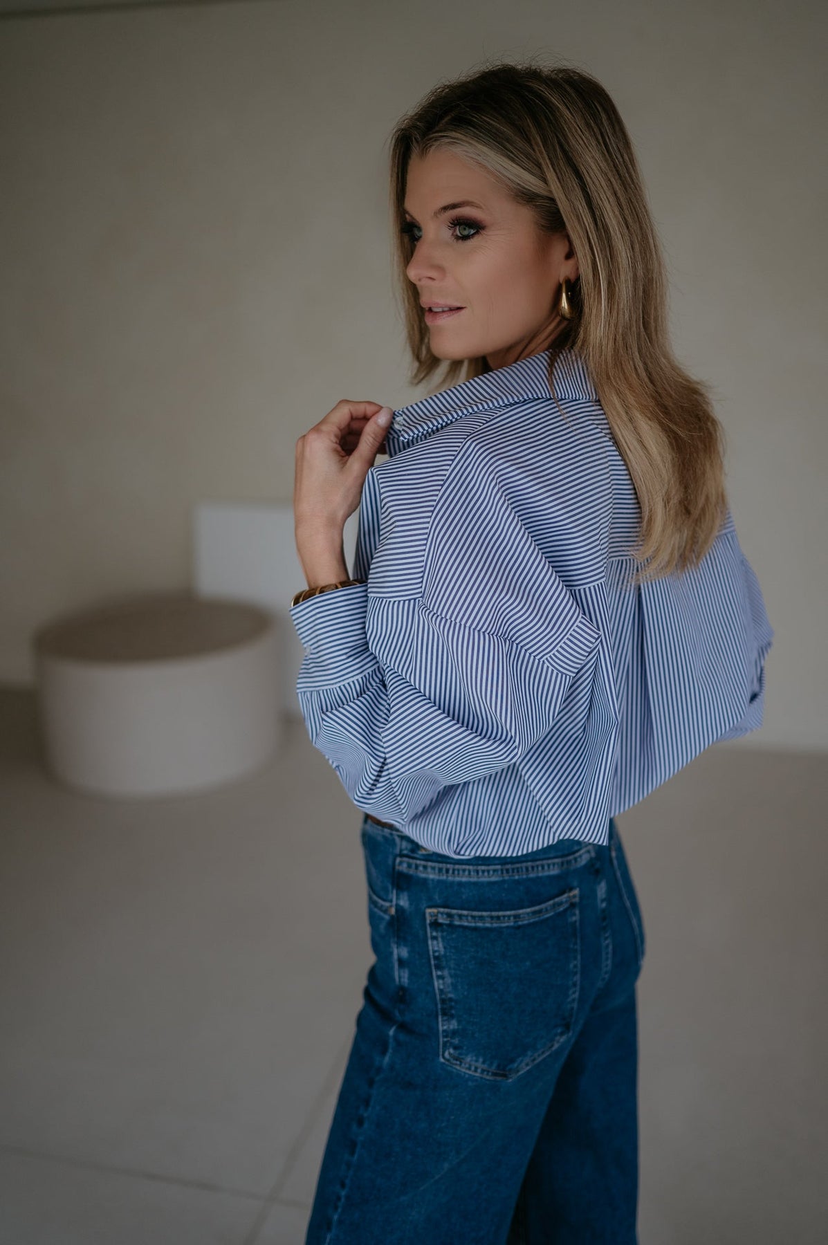 Dit prachtige hemd met blauw-witte streepjes is een echte essential voor je garderobe.