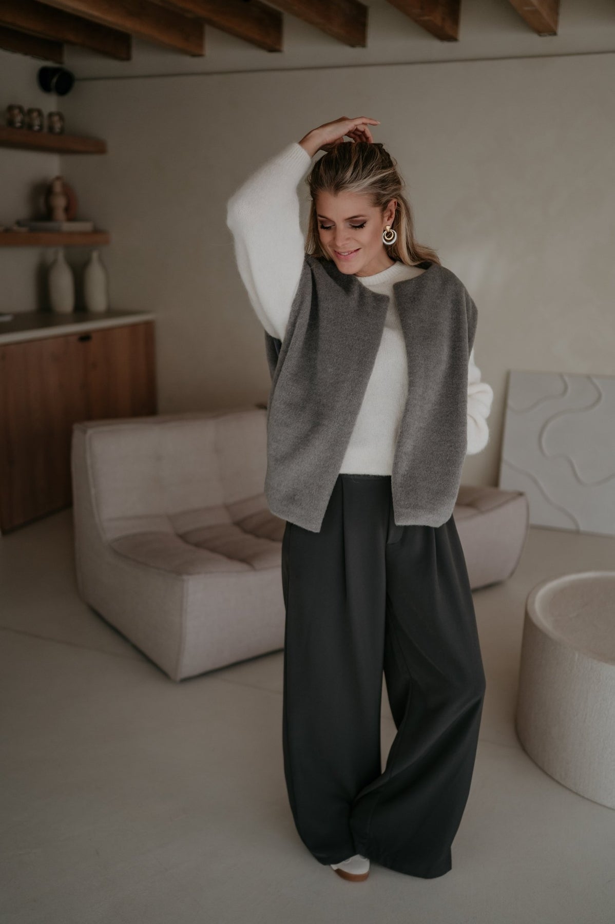 Het model is stijlvol en makkelijk te combineren, of je het nu draagt over een blouse, trui of jurk.
