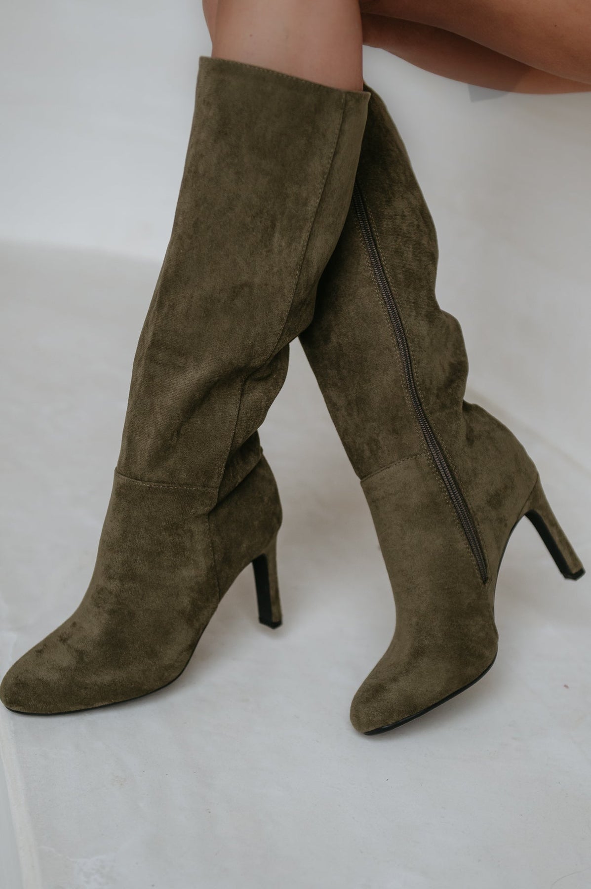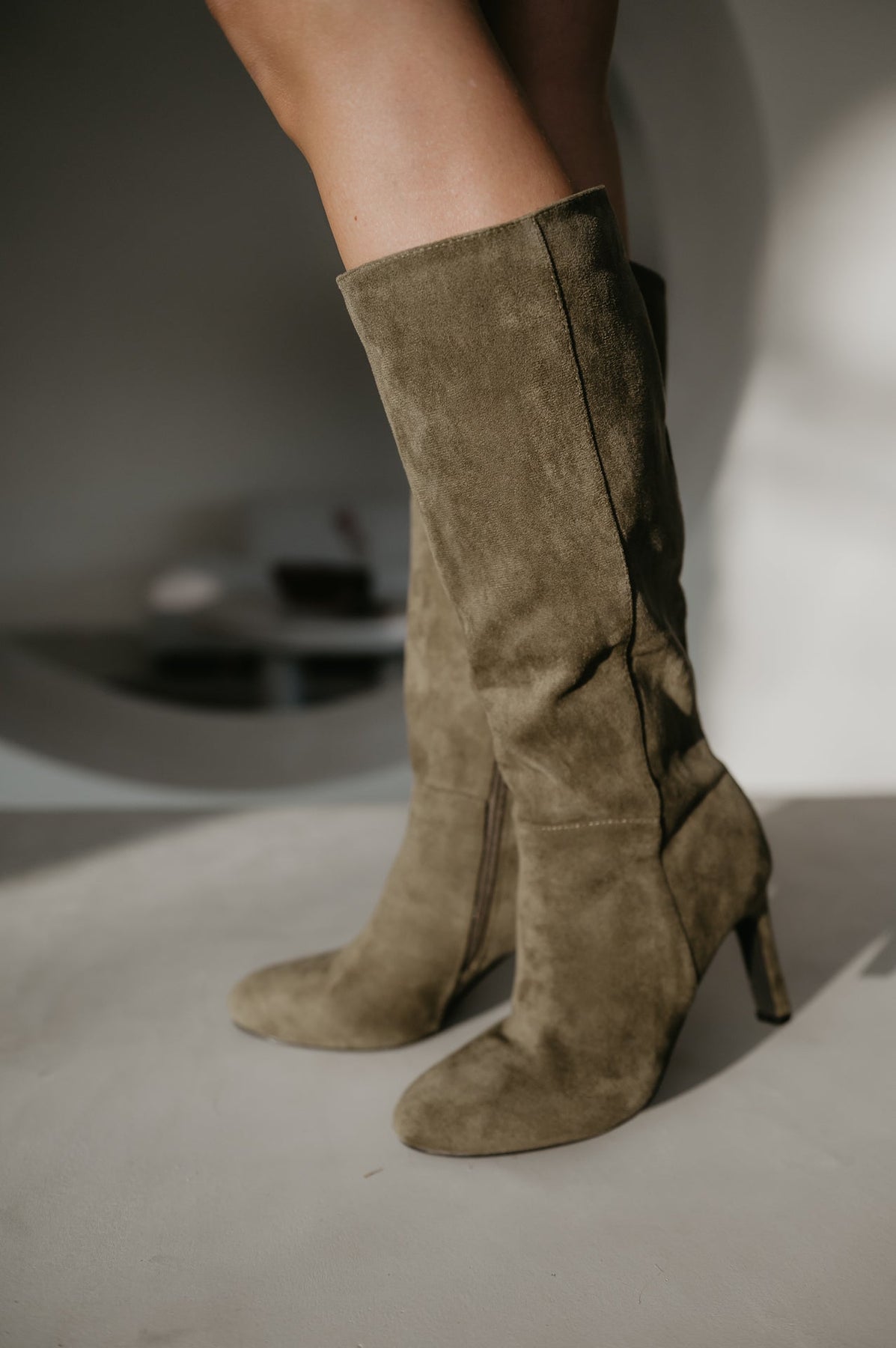 Heel mooie nep suede boots met een elegante hak en een ronde neus.