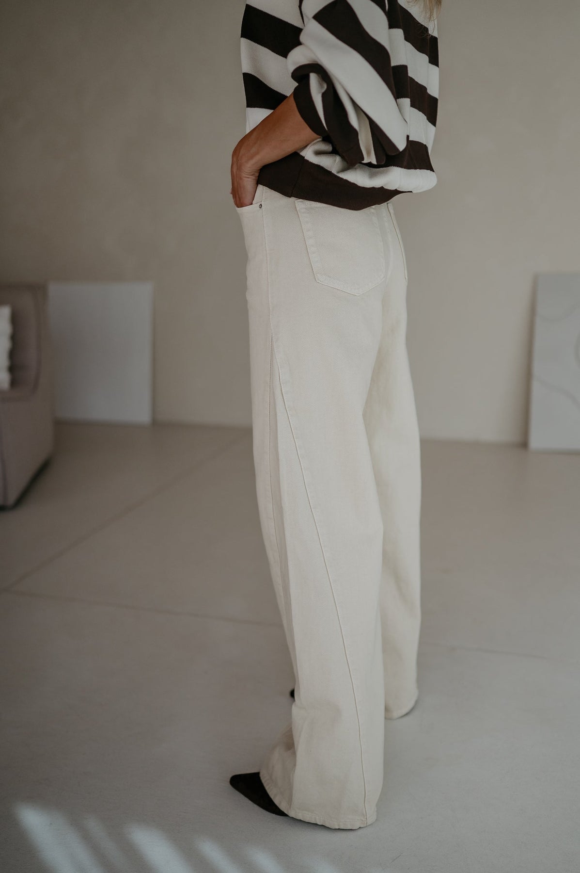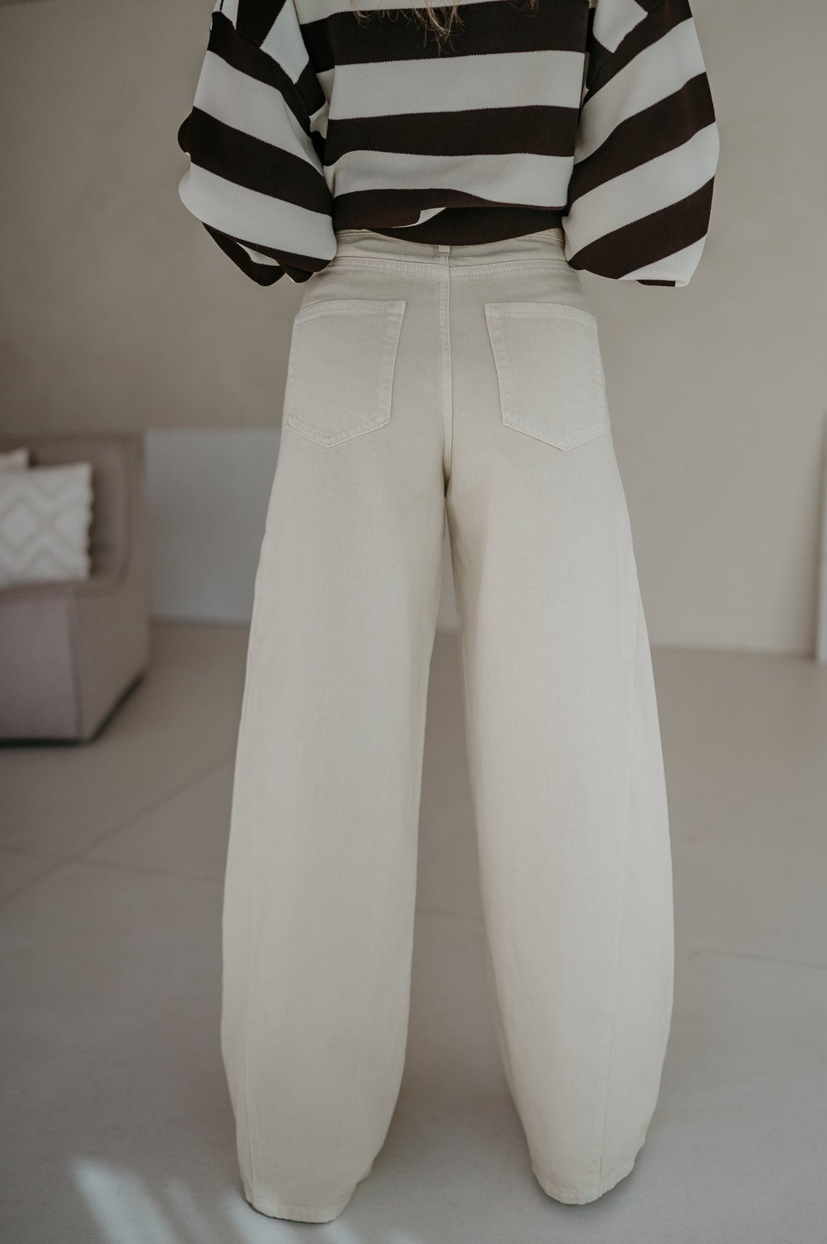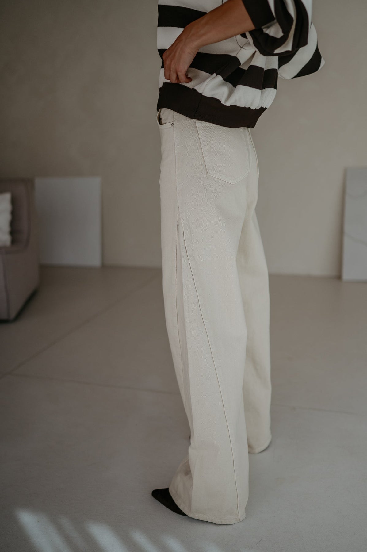 Deze prachtige beige brede jeans moet je echt hebben voor de herfst.