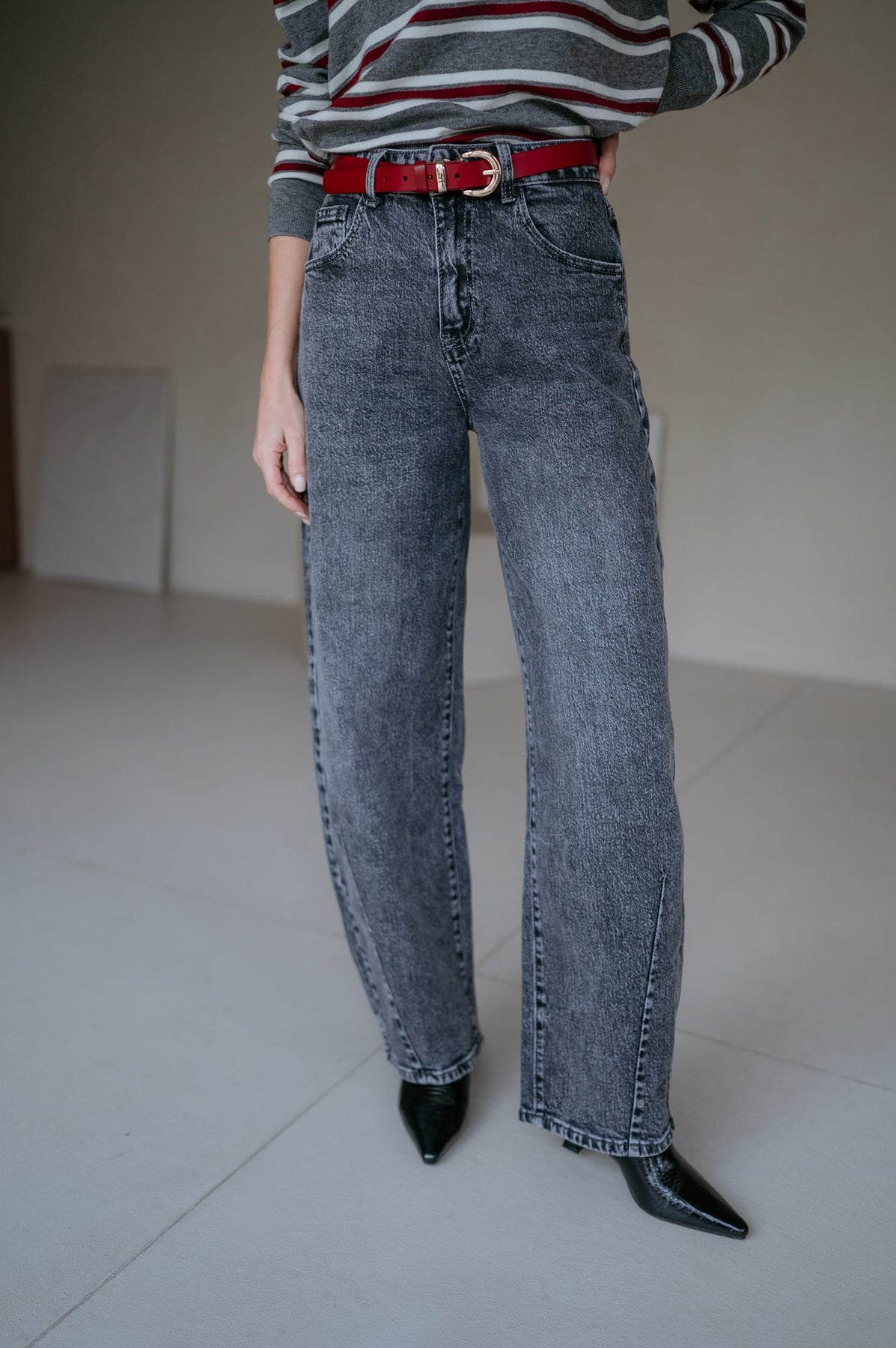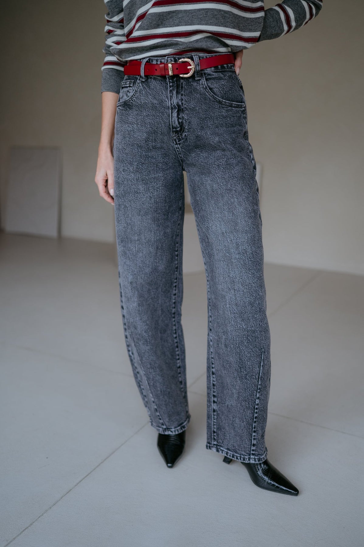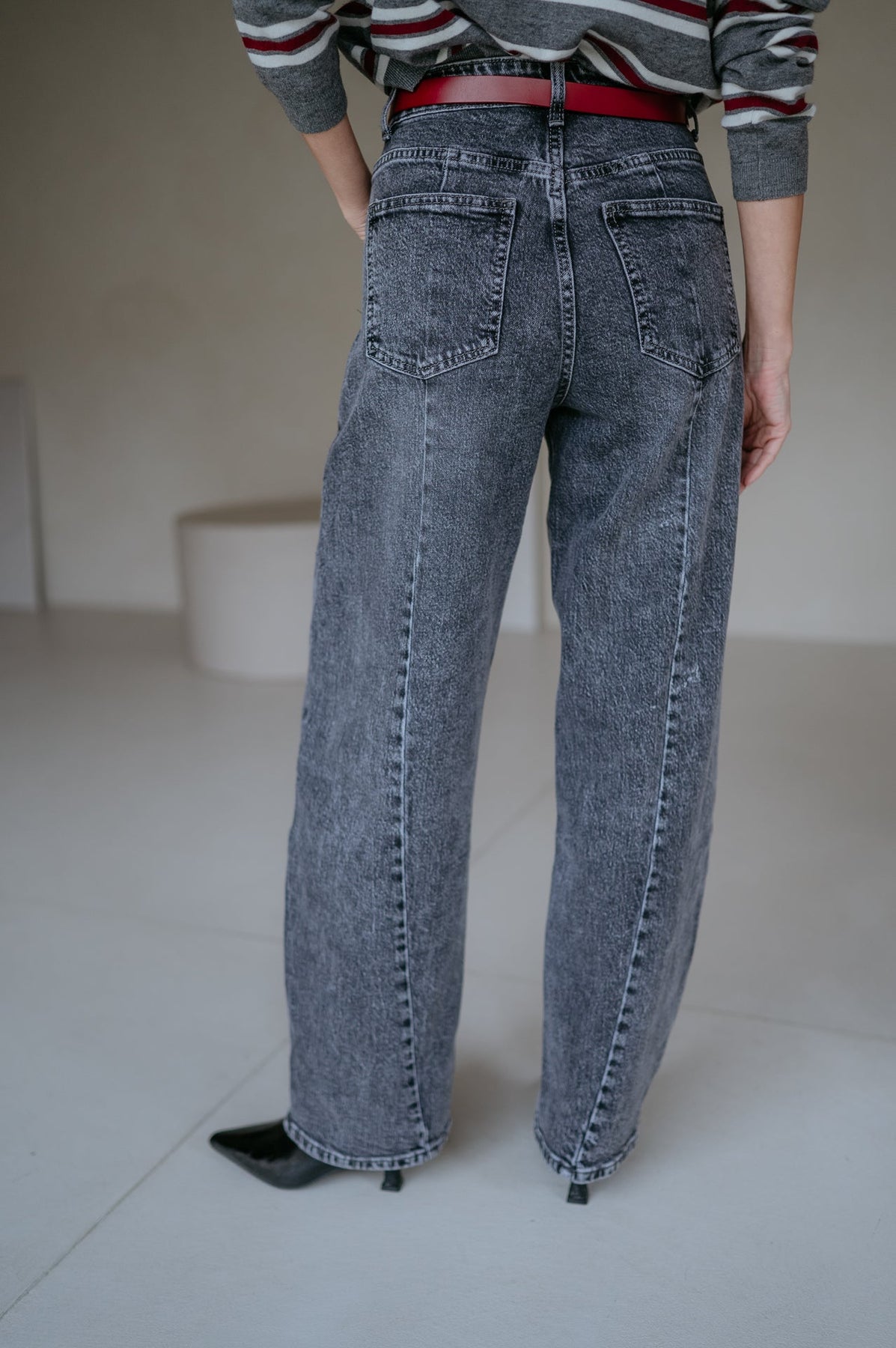 Het brede, moderne model zorgt voor een stoere en relaxte look, terwijl de neutrale grijze kleur super makkelijk te combineren is.