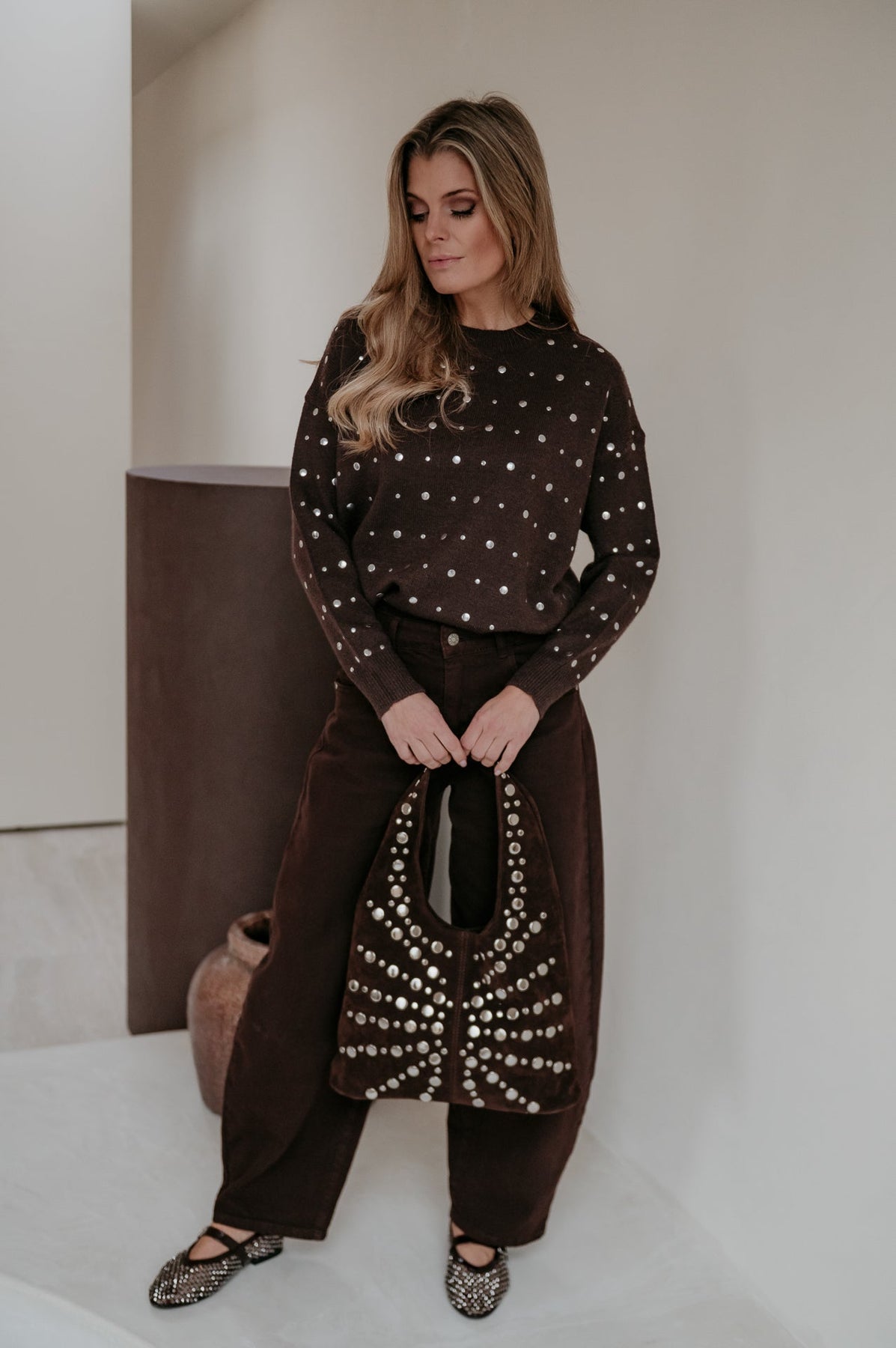Deze trui is echt een eyecatcher dankzij de zilveren studs die een subtiel maar stijlvol accent geven.