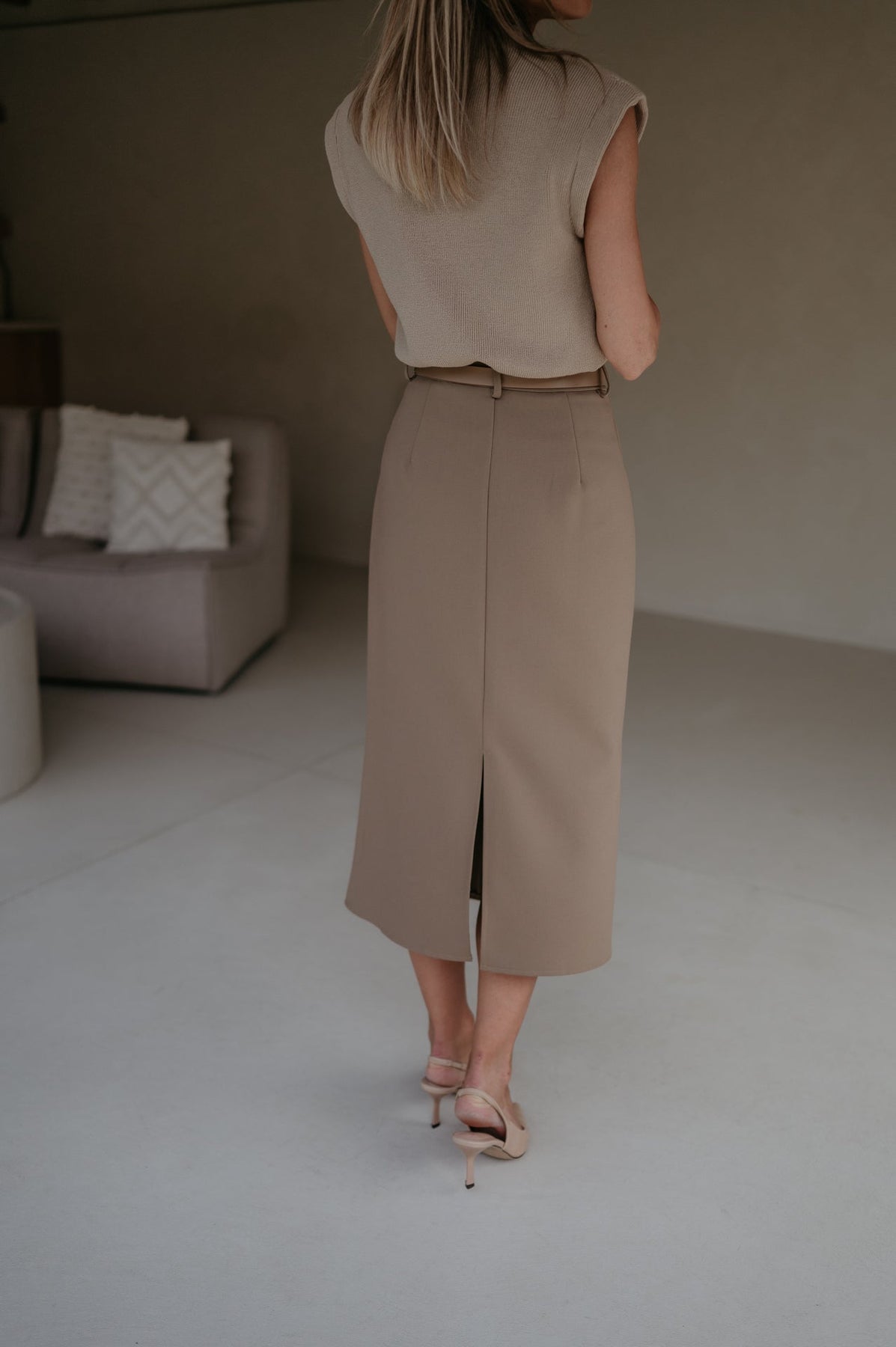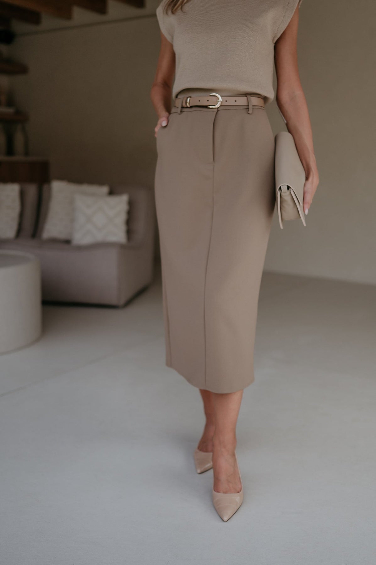 Stijlvolle kokerrok met een elegante split aan de achterkant voor een subtiele, vrouwelijke touch.