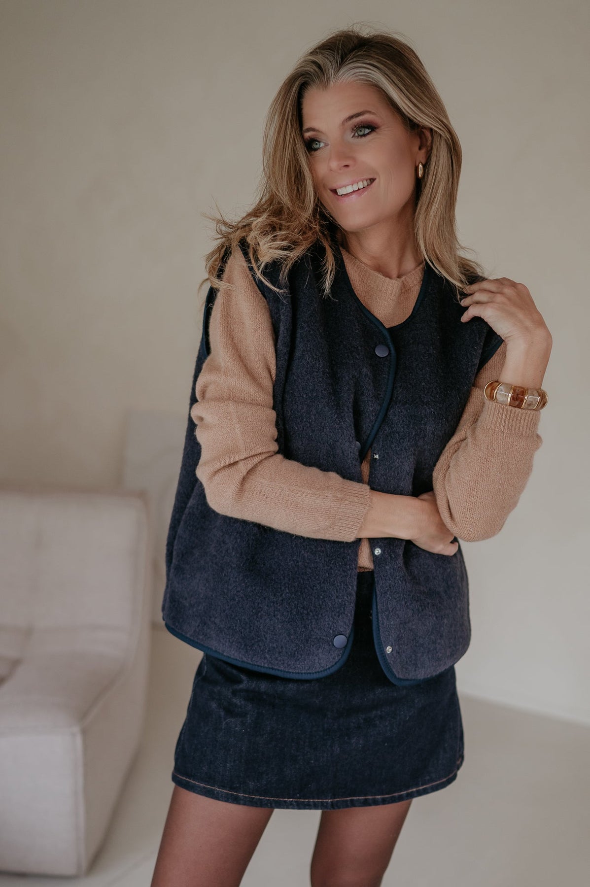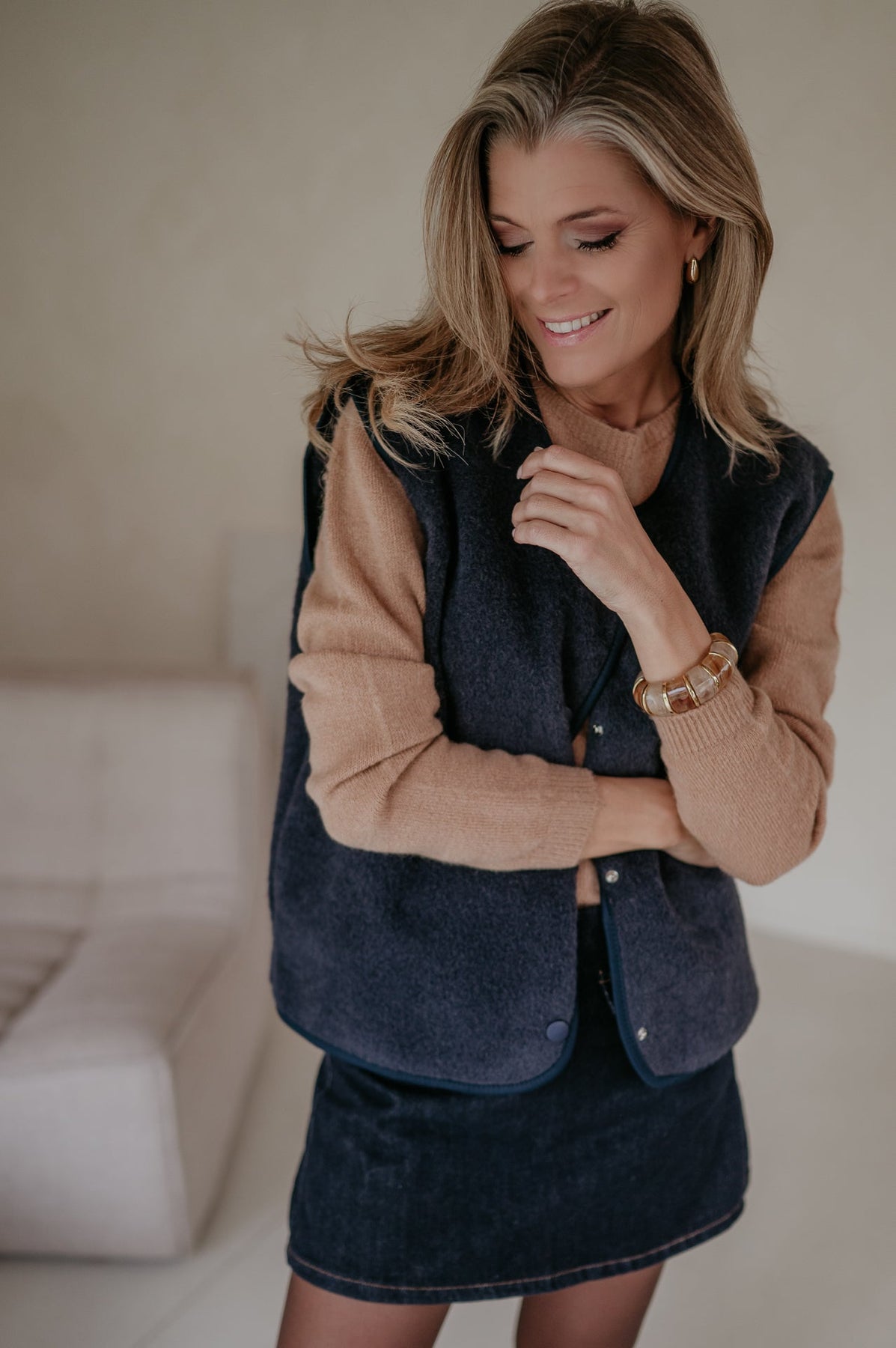 Deze mega mooie en zachte gilet is een echte topper om te combineren.