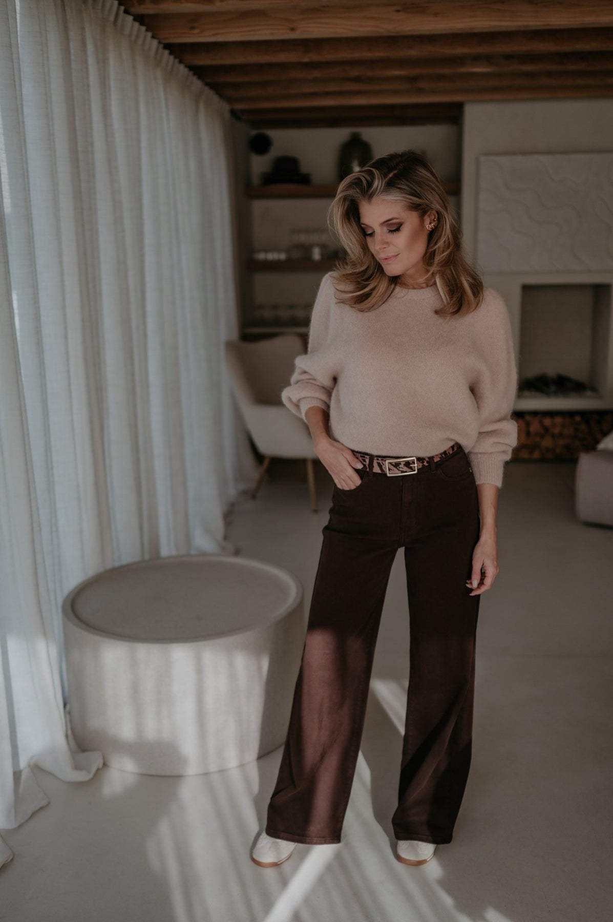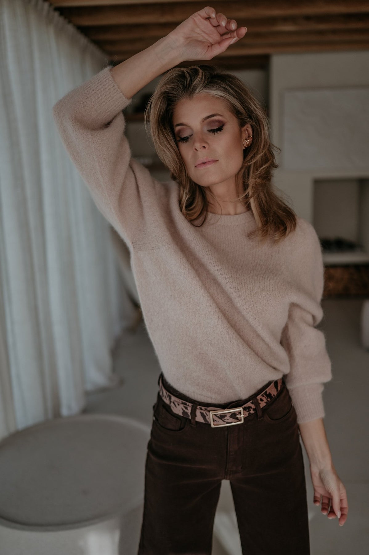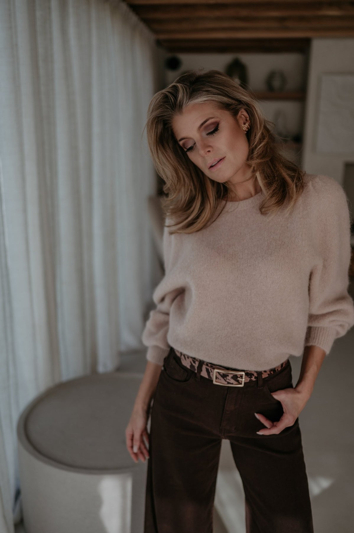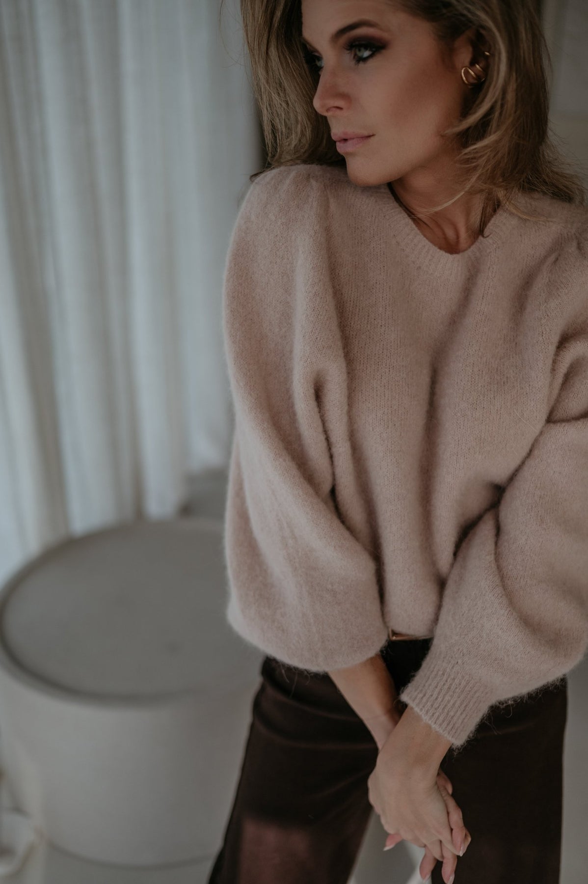 Prachtige knit met speelse pofmouwen die je look meteen een vrouwelijke touch geven.