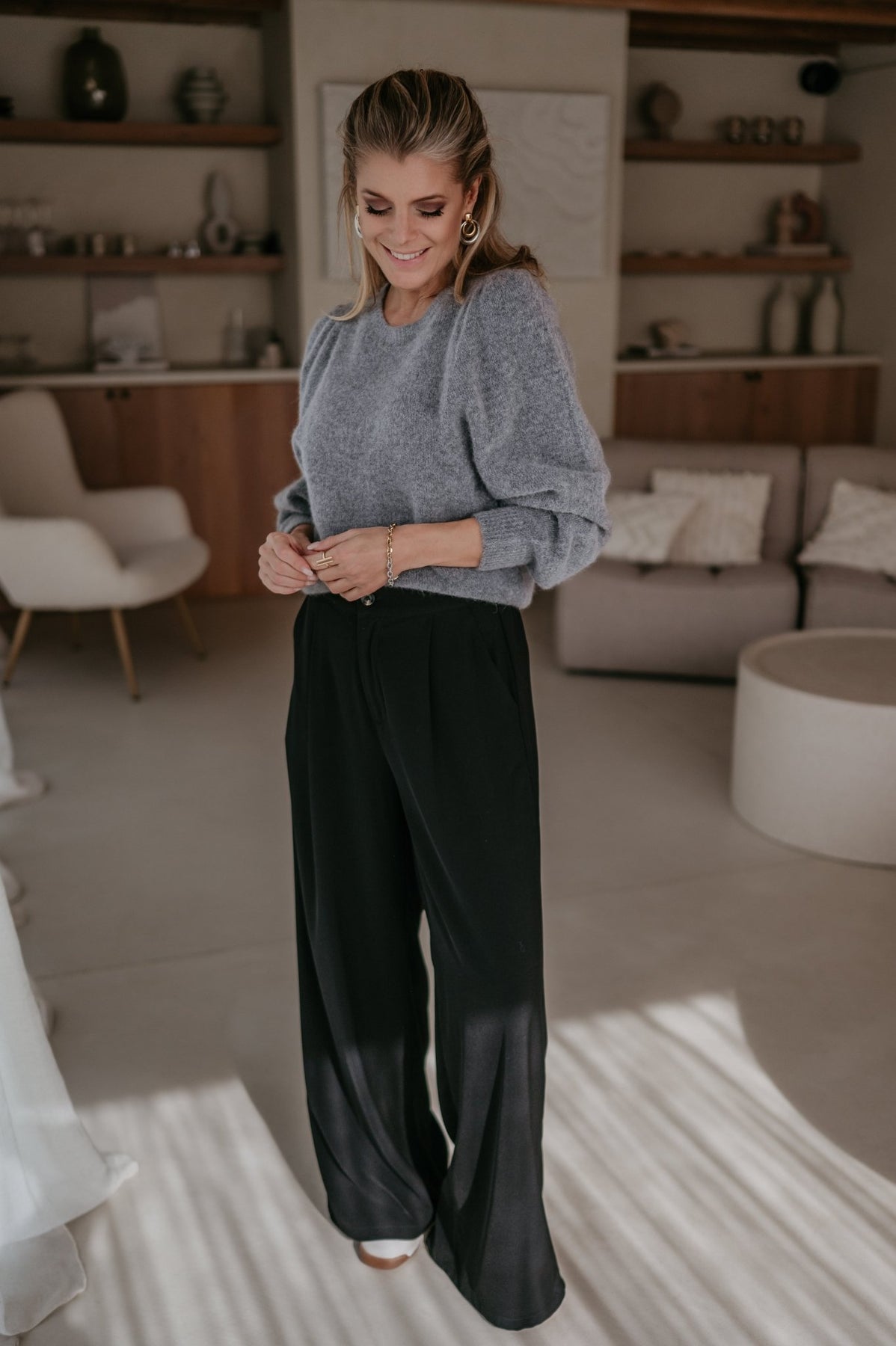 Prachtige knit met speelse pofmouwen die je look meteen een vrouwelijke touch geven.