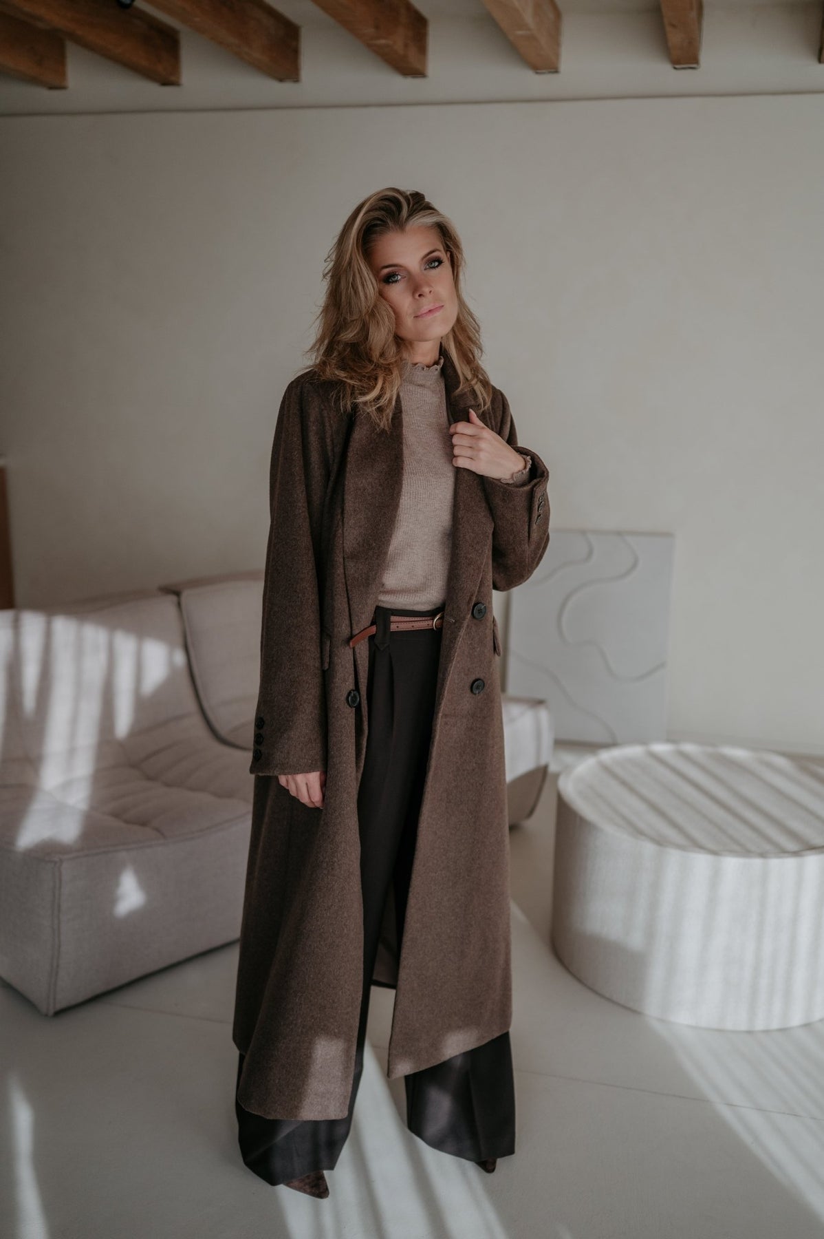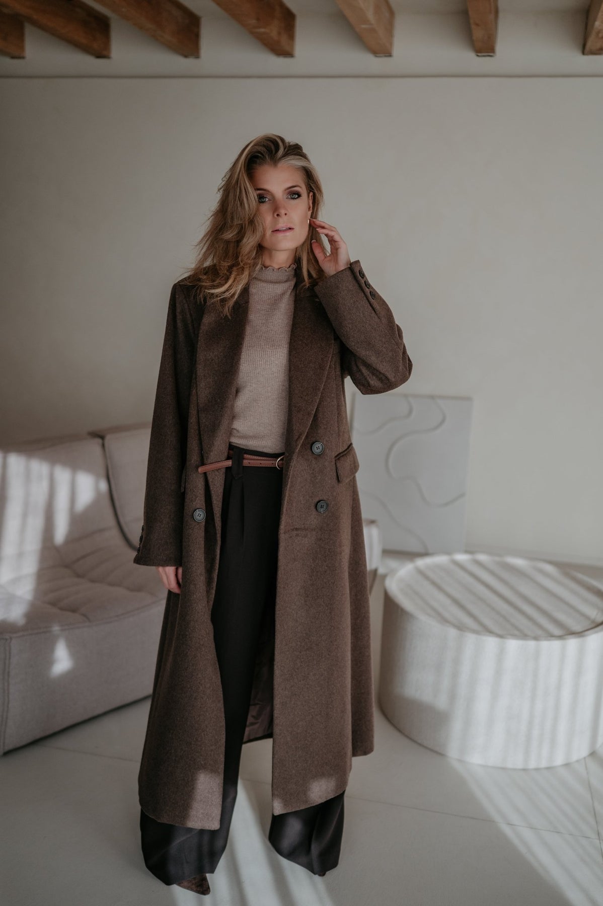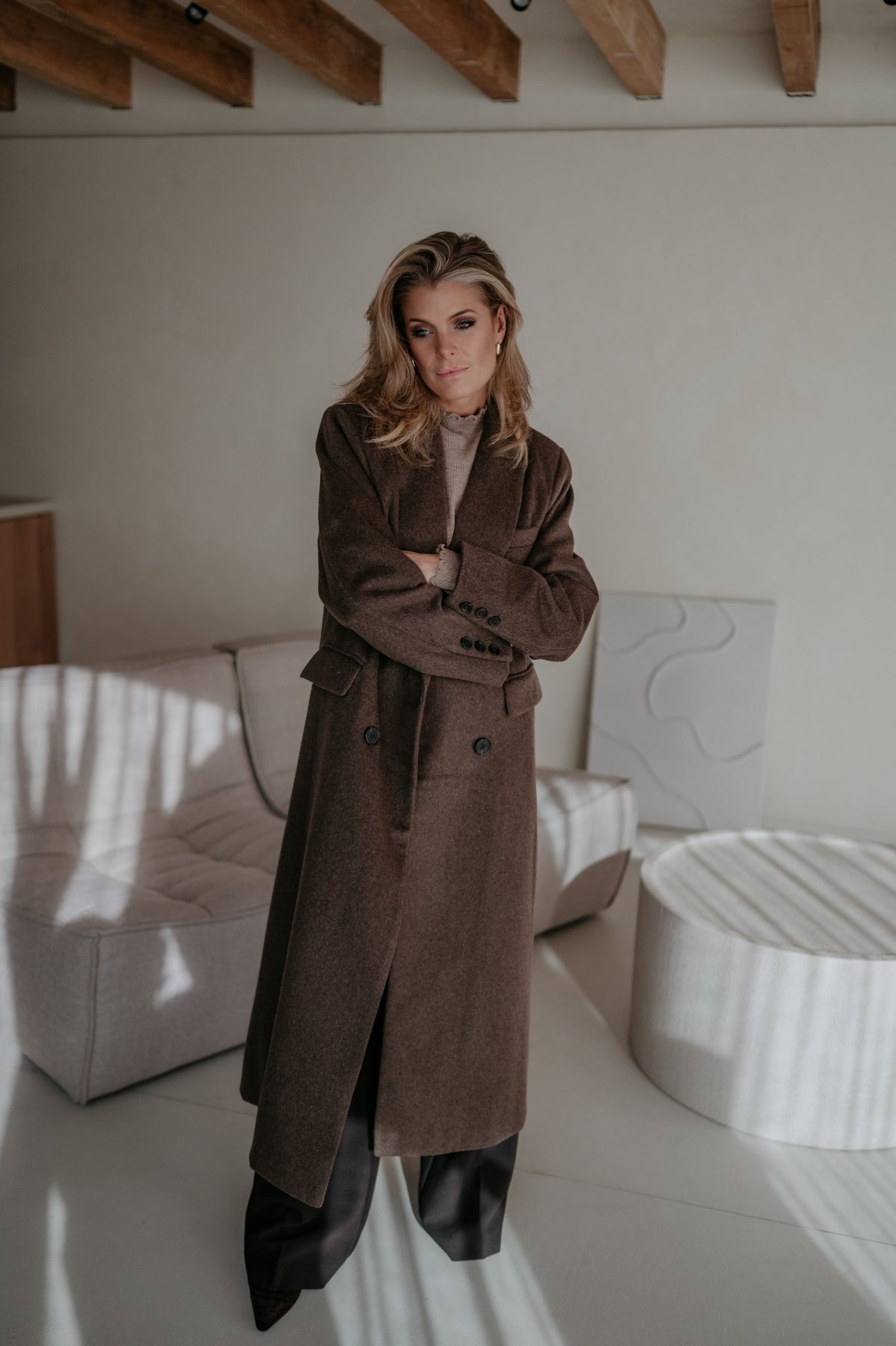 Prachtige lange mantel die perfect is als herfstjas.