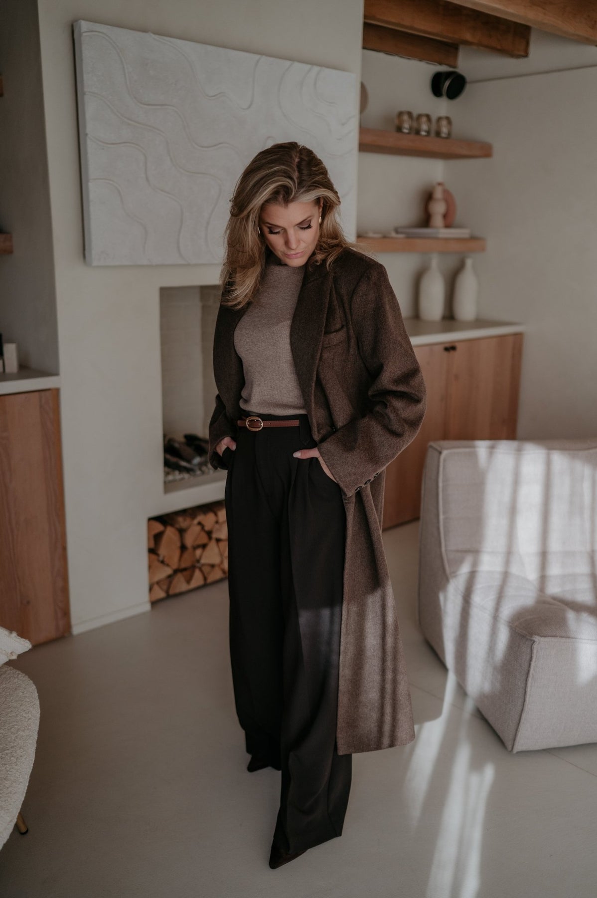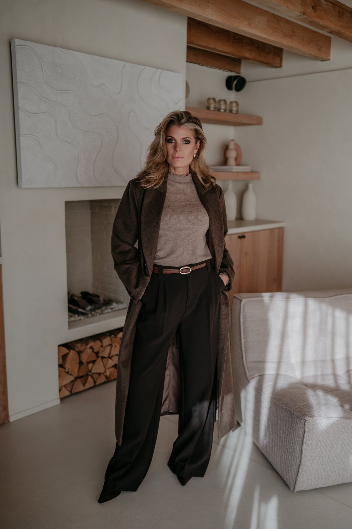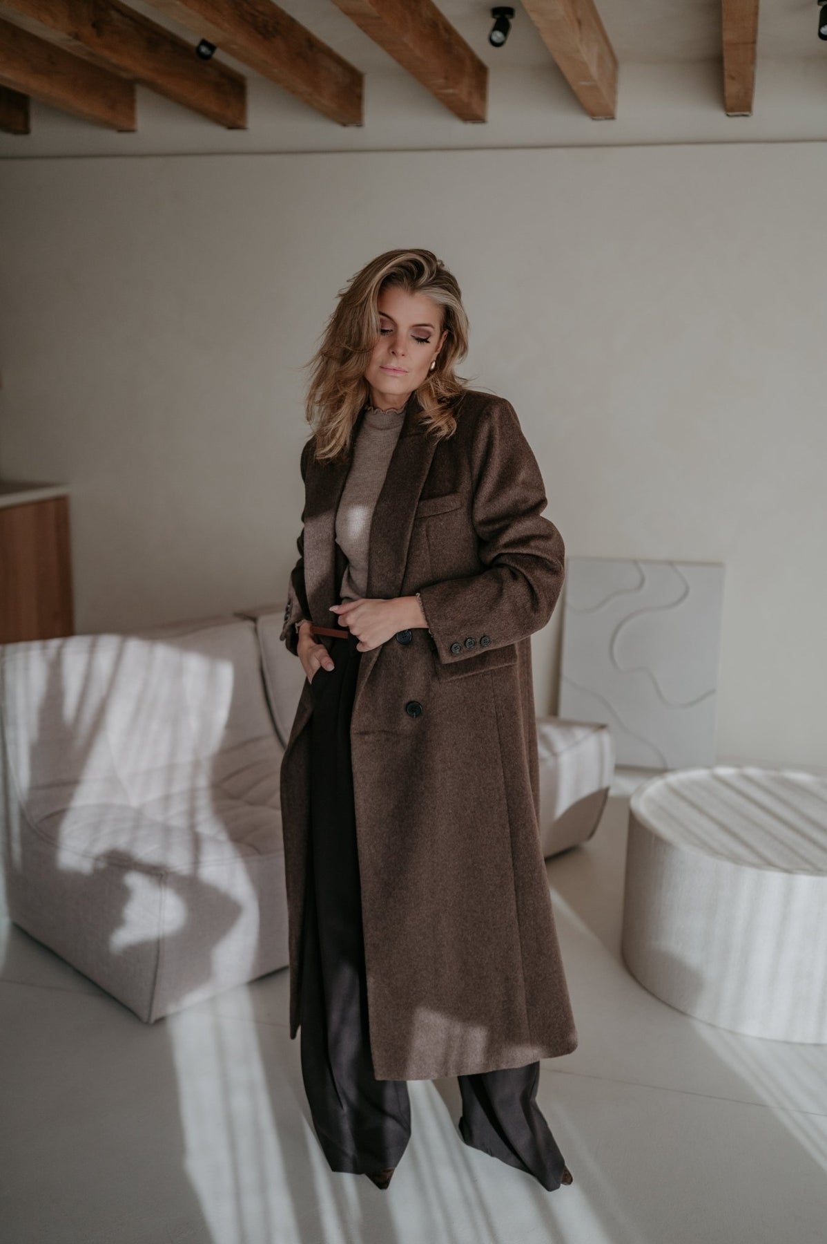 Prachtige lange mantel die perfect is als herfstjas.