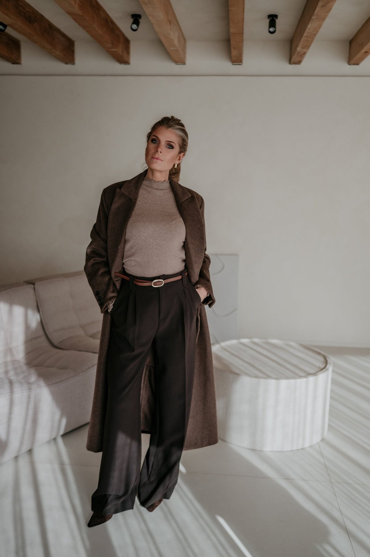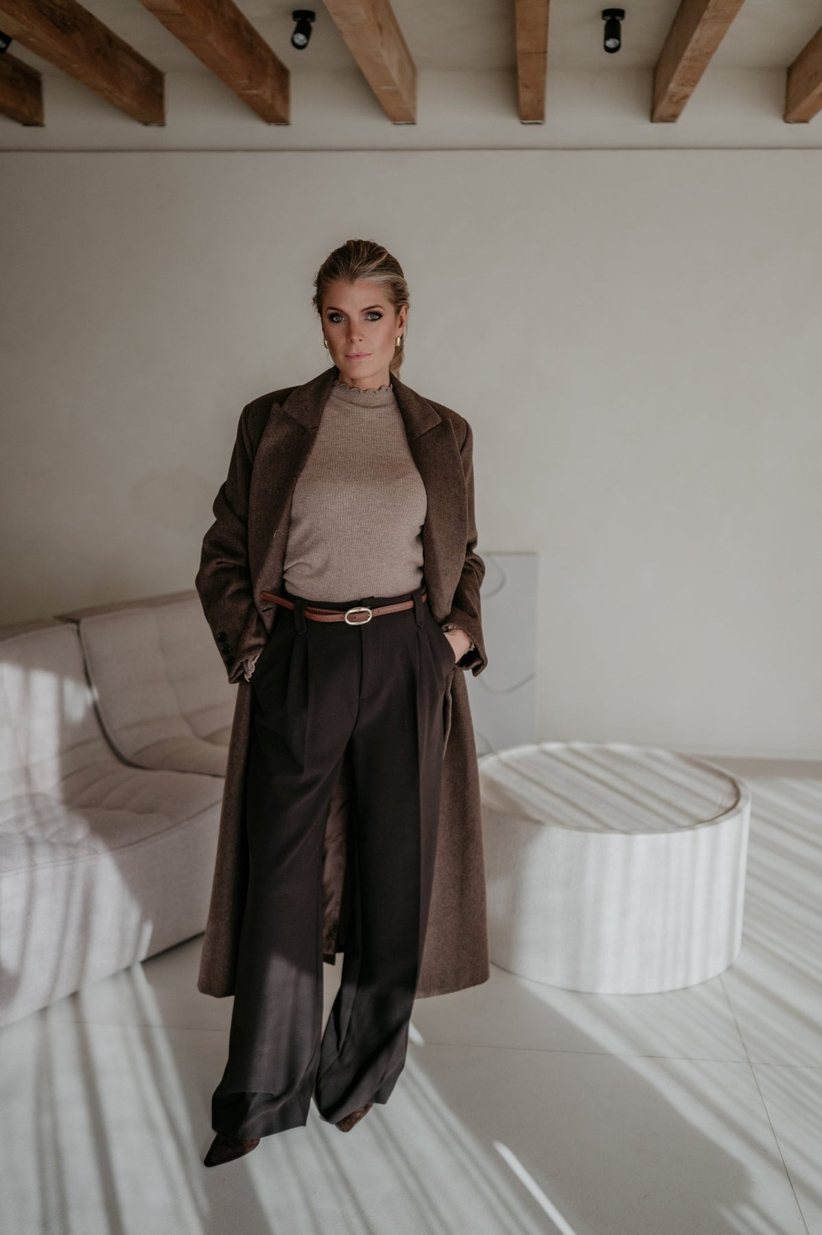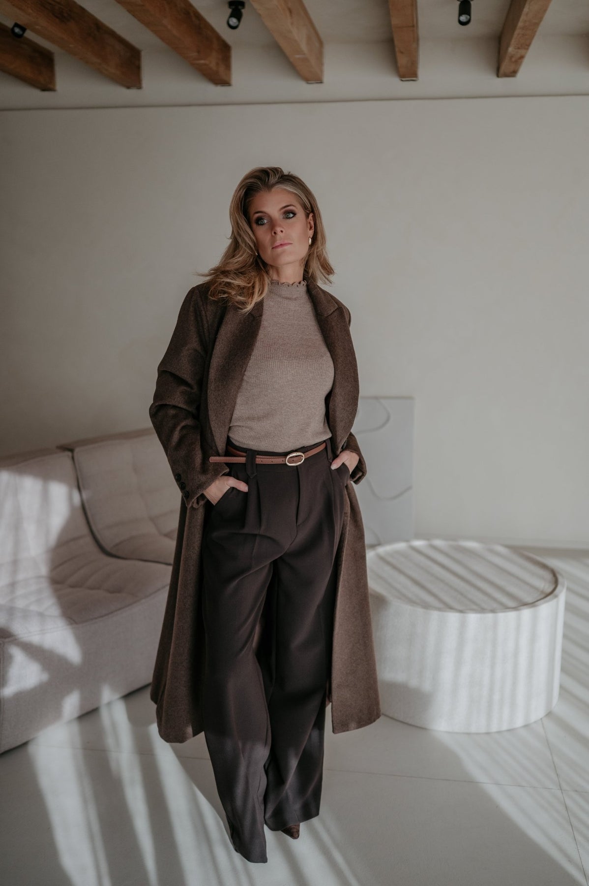 De pasvorm is stijlvol en elegant, waardoor hij elke outfit een verfijnde uitstraling geeft.
