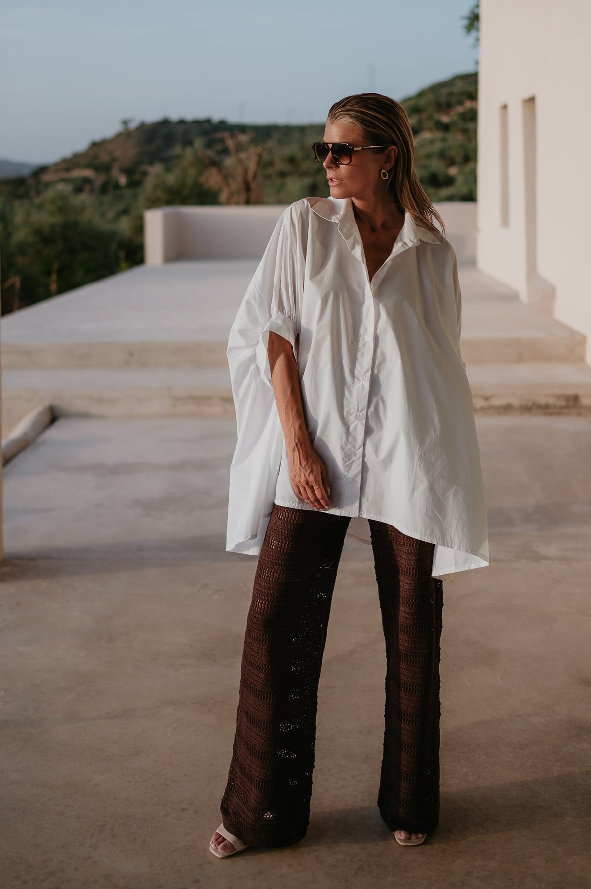 Dankzij de fijne gehaakte structuur oogt ze speels en luchtig, en met huidkleurig ondergoed is ze perfect draagbaar.