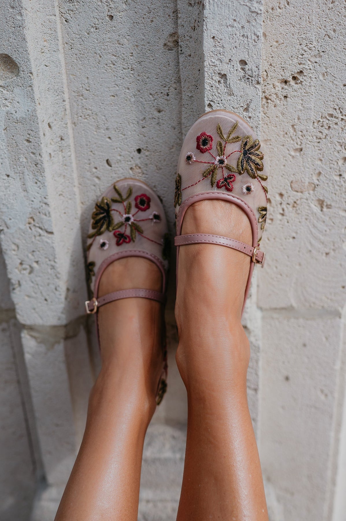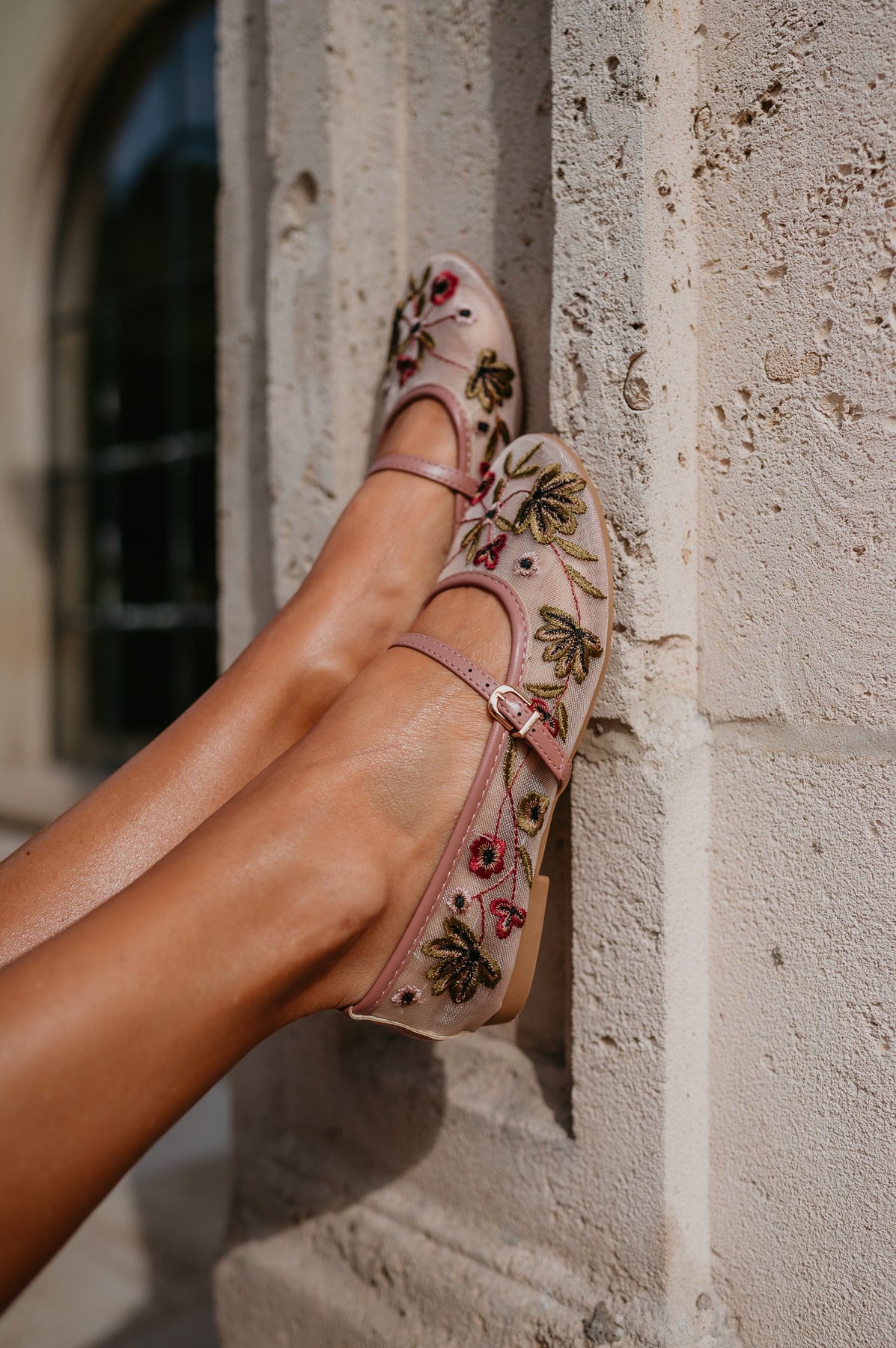 Ze zijn versierd met fijne bloemetjes die zorgen voor een speelse en vrouwelijke touch. Het zachte roze kleurtje maakt ze makkelijk te combineren met zowel casual als geklede looks.