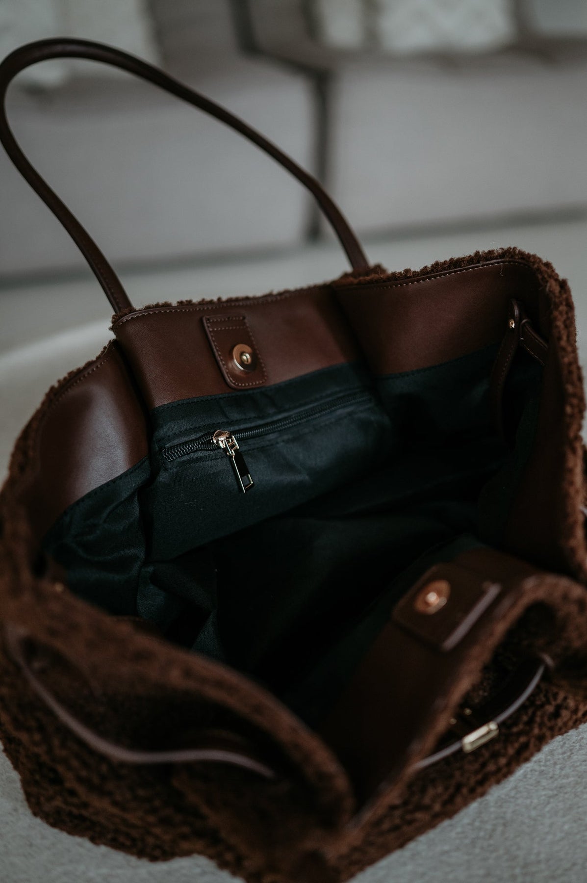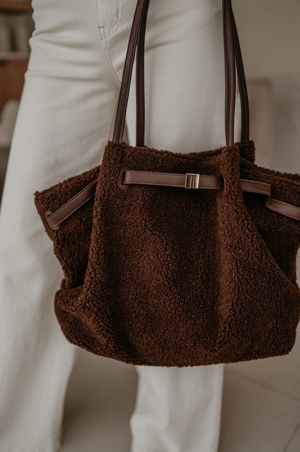Heel toffe grote teddy tas die je makkelijk sluit met een drukknop.