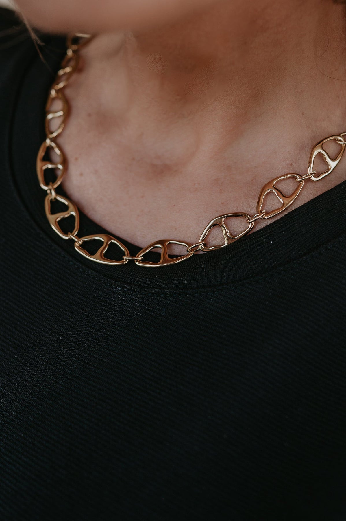Deze gouden schakelketting is het statement accessoire dat elke outfit naar een hoger niveau tilt.