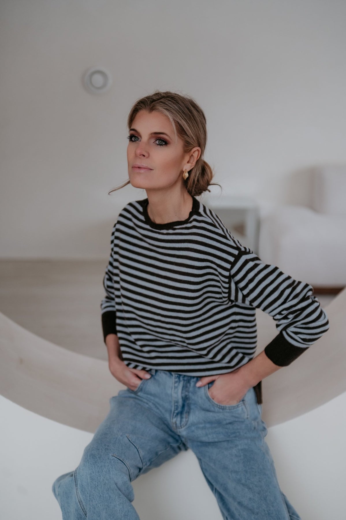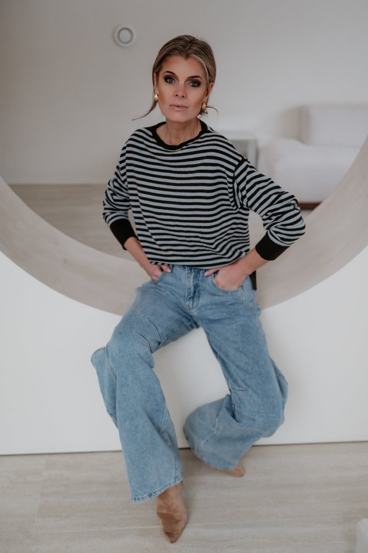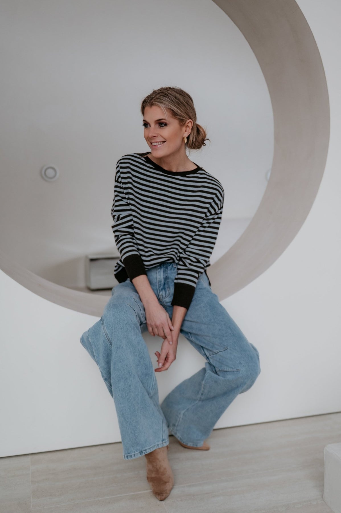 Dit heel mooie truitje met streepjes is een echte must-have voor je garderobe.