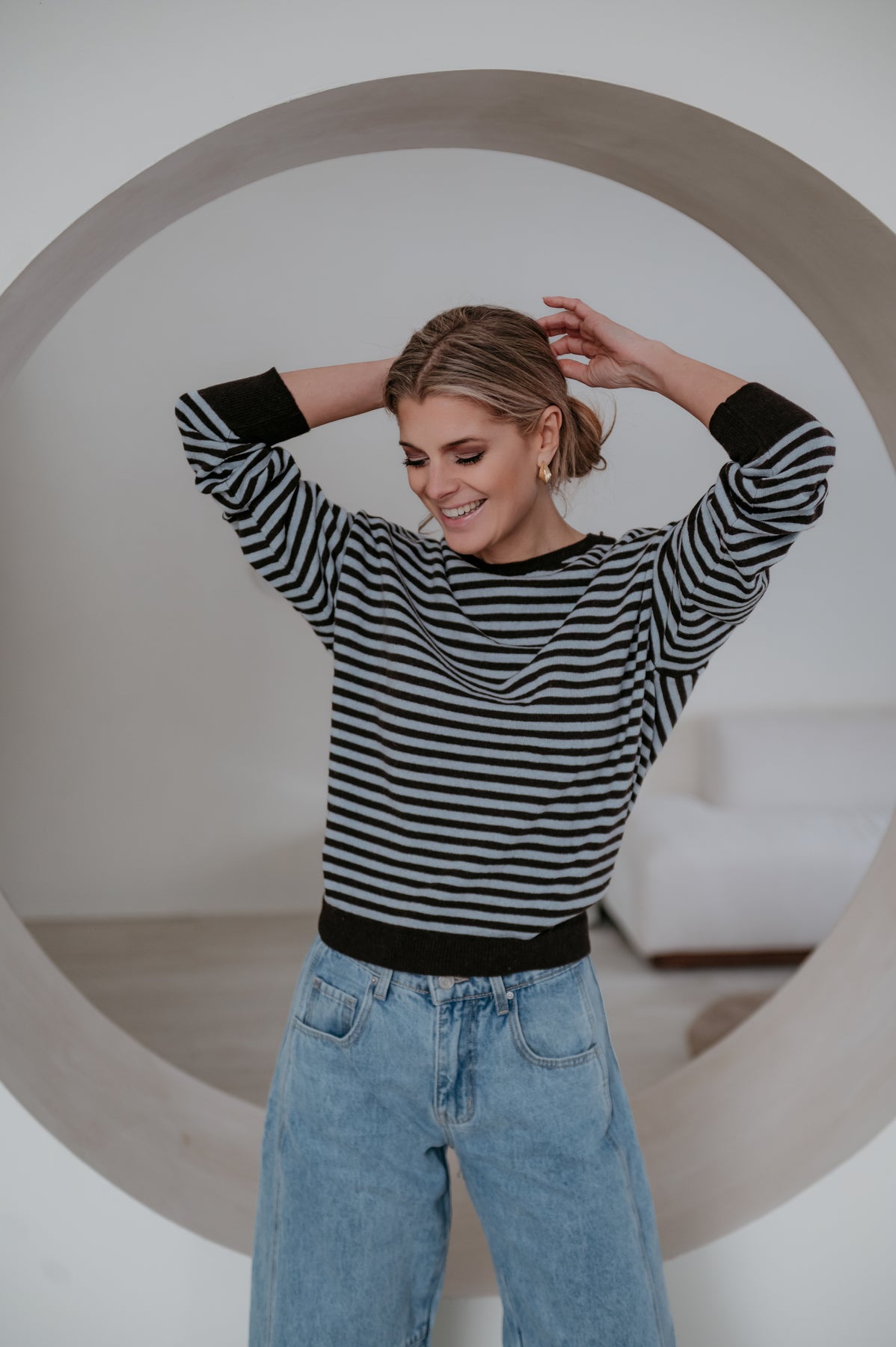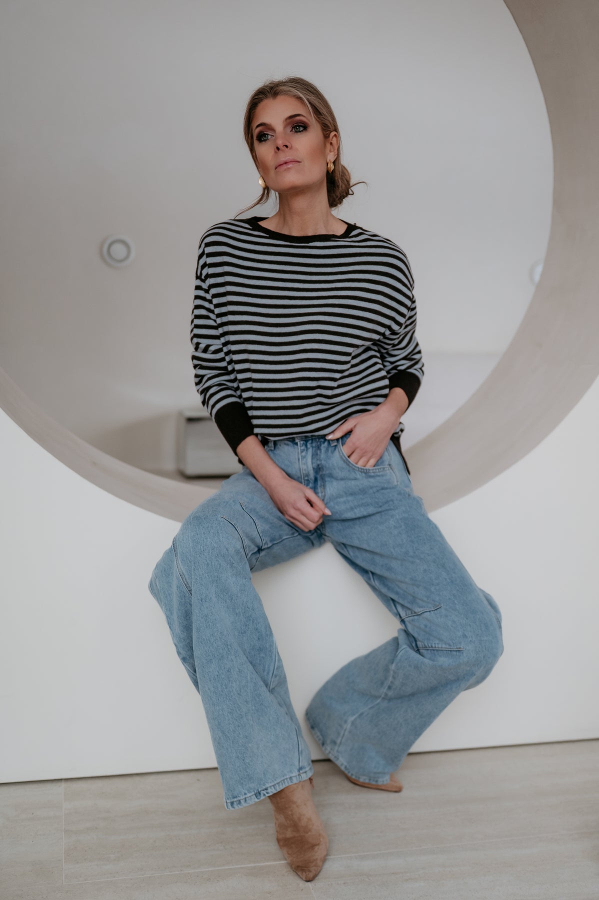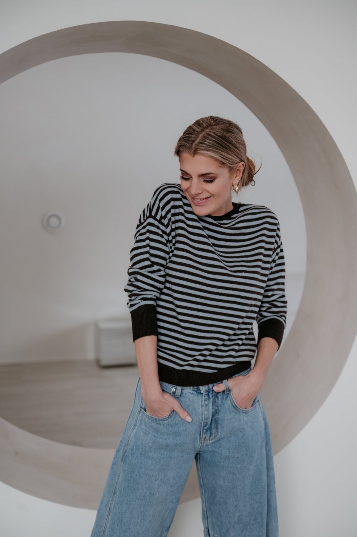 Dit heel mooie truitje met streepjes is een echte must-have voor je garderobe.