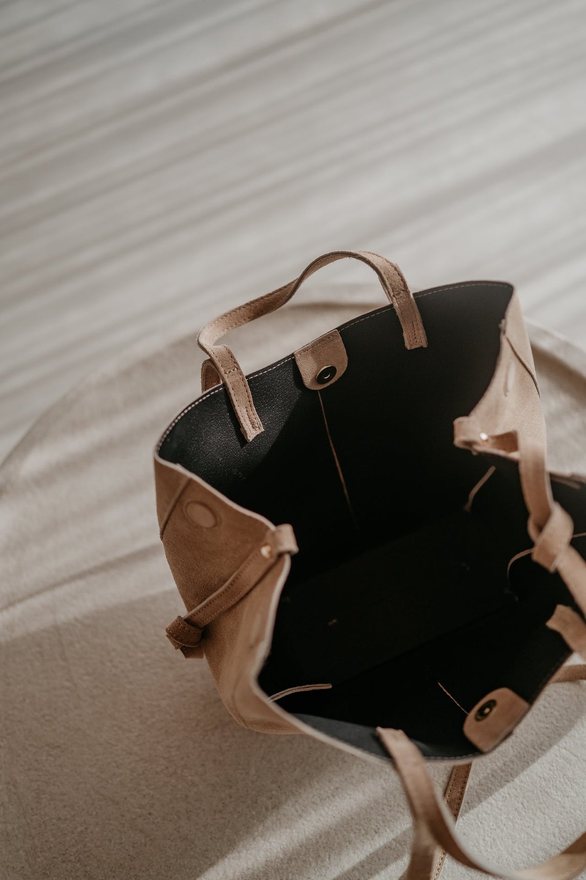 Je kan de tas veranderen naar het moment van de dag door de magneetjes op de zijkanten open of toe te maken. Net een andere look.