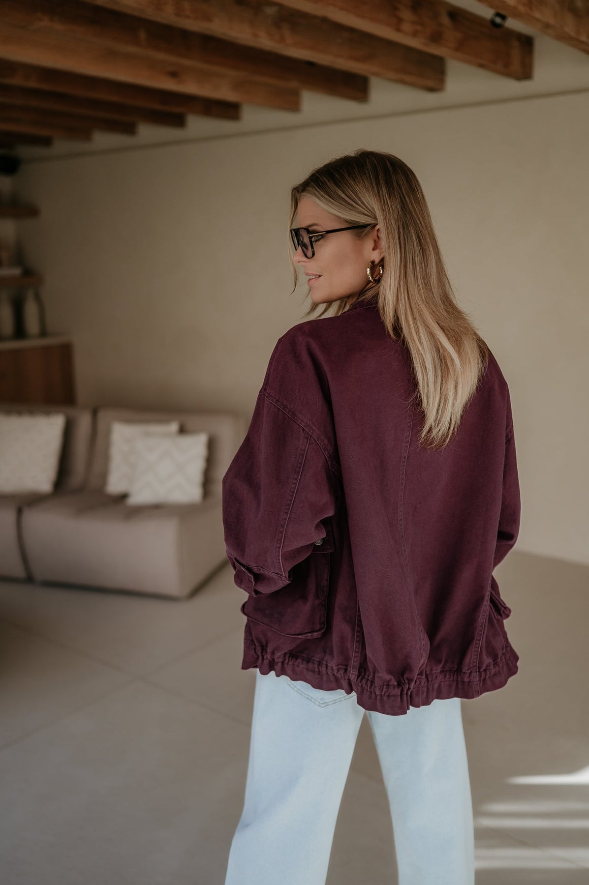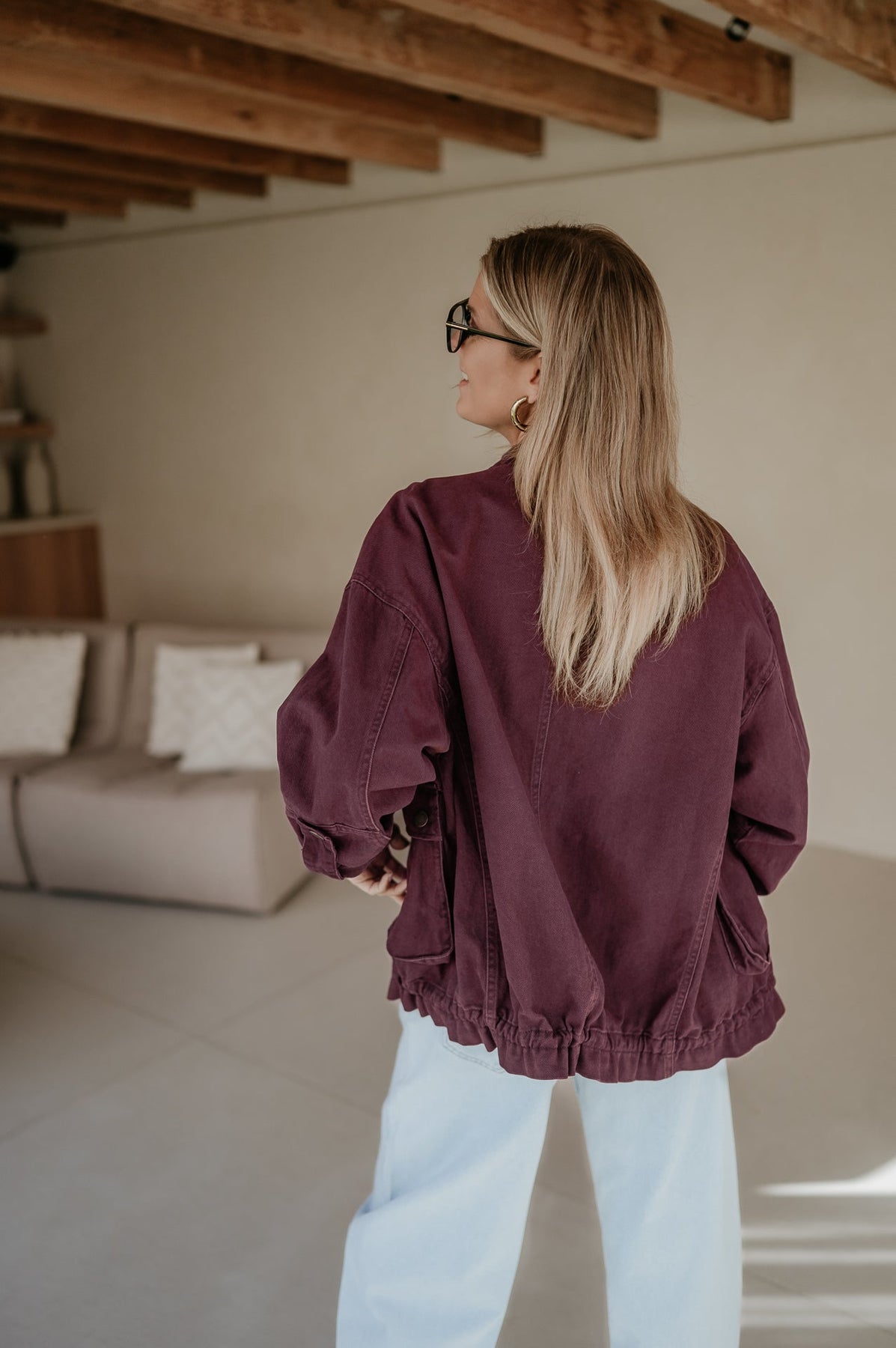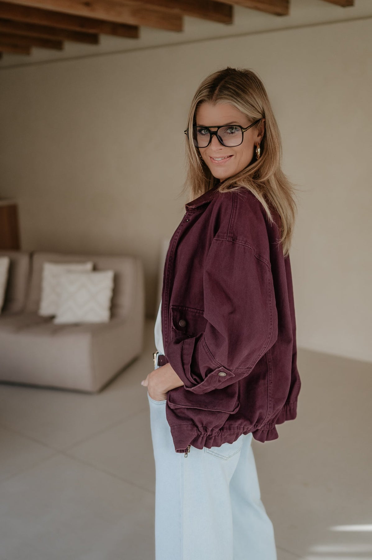 Dit prachtige burgundy jasje is zowel elegant als functioneel.