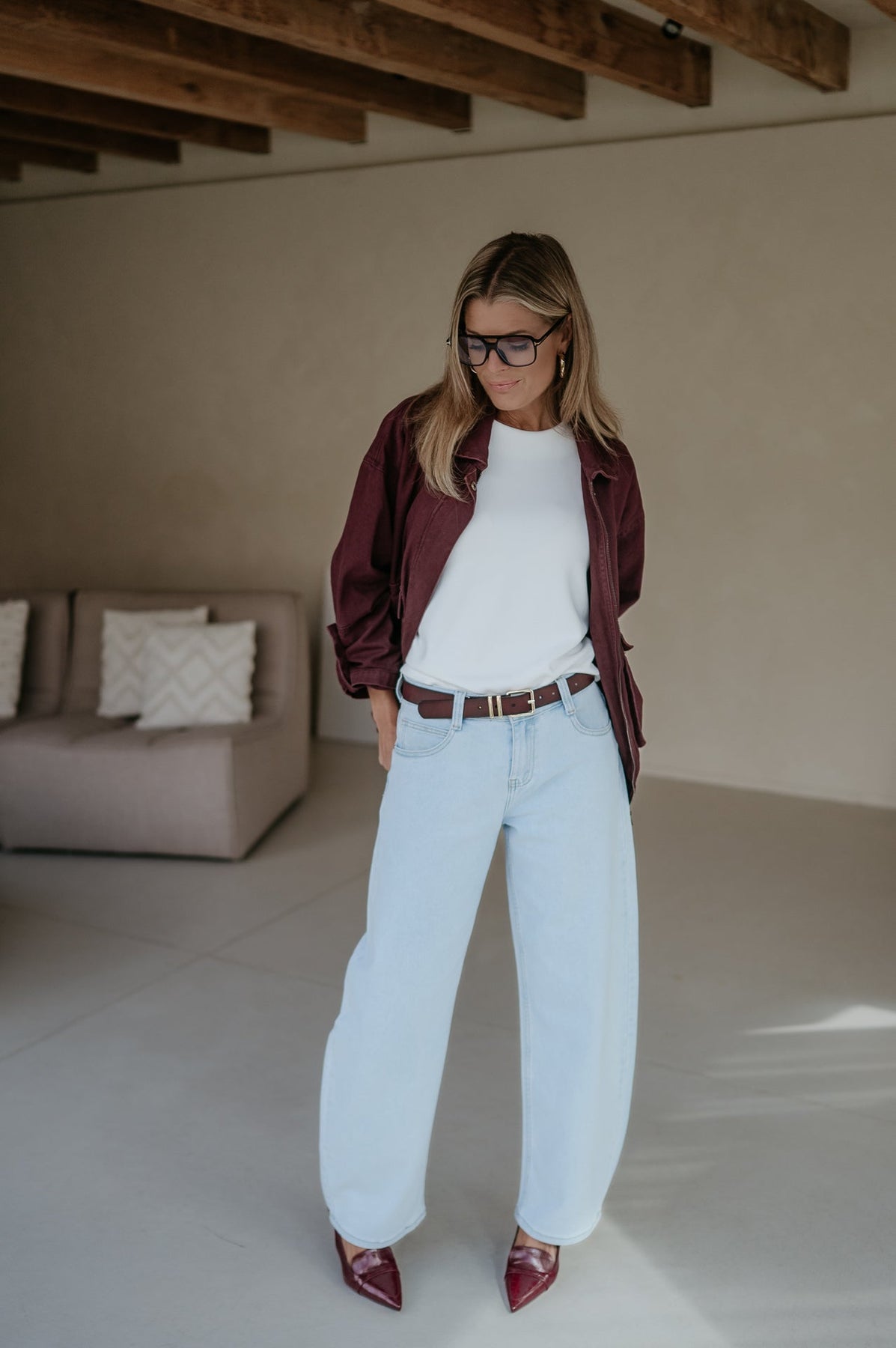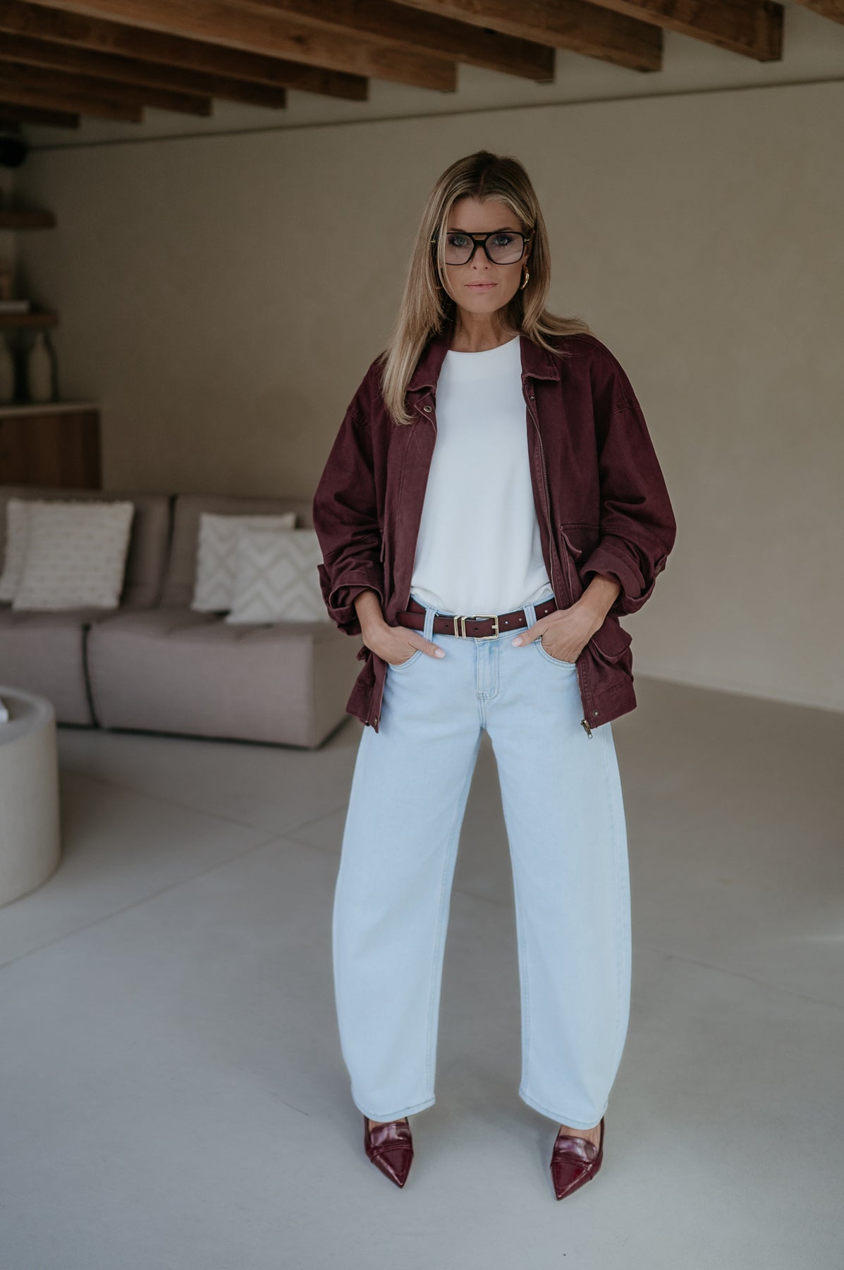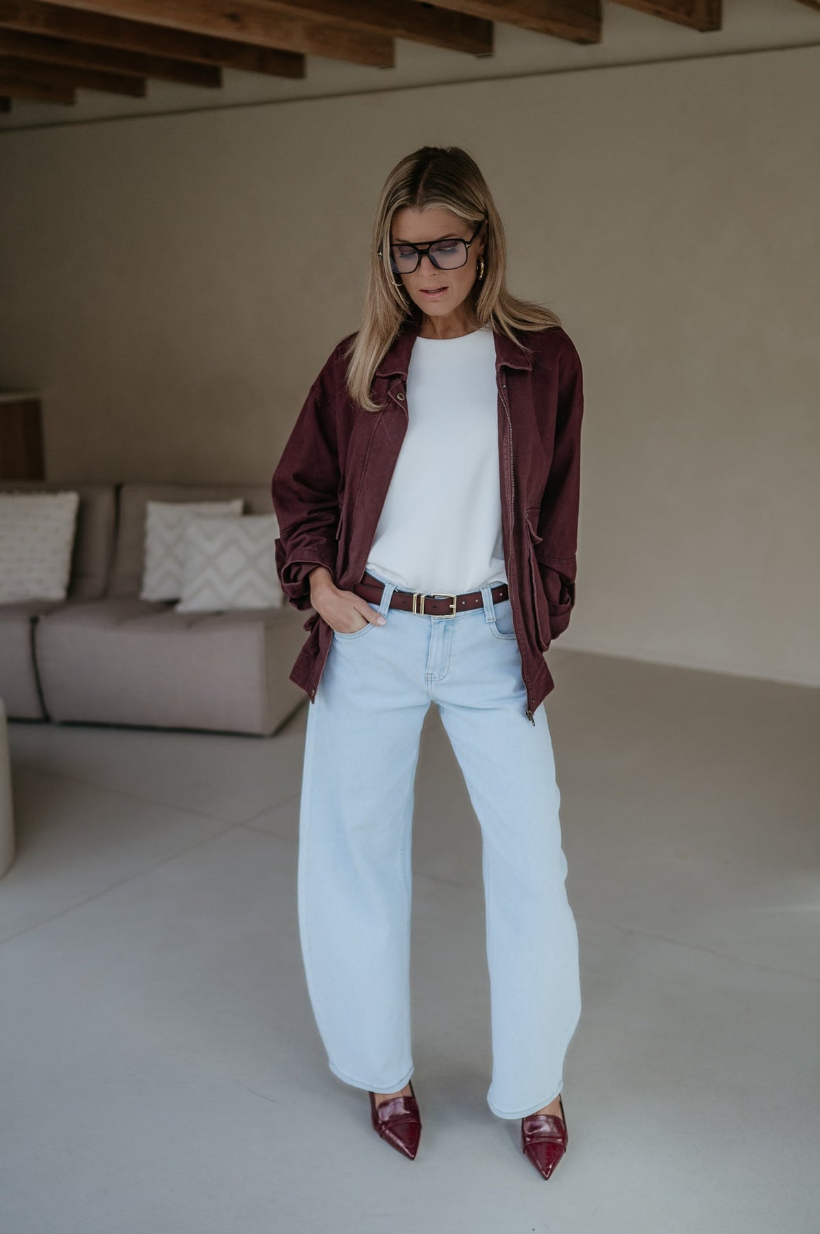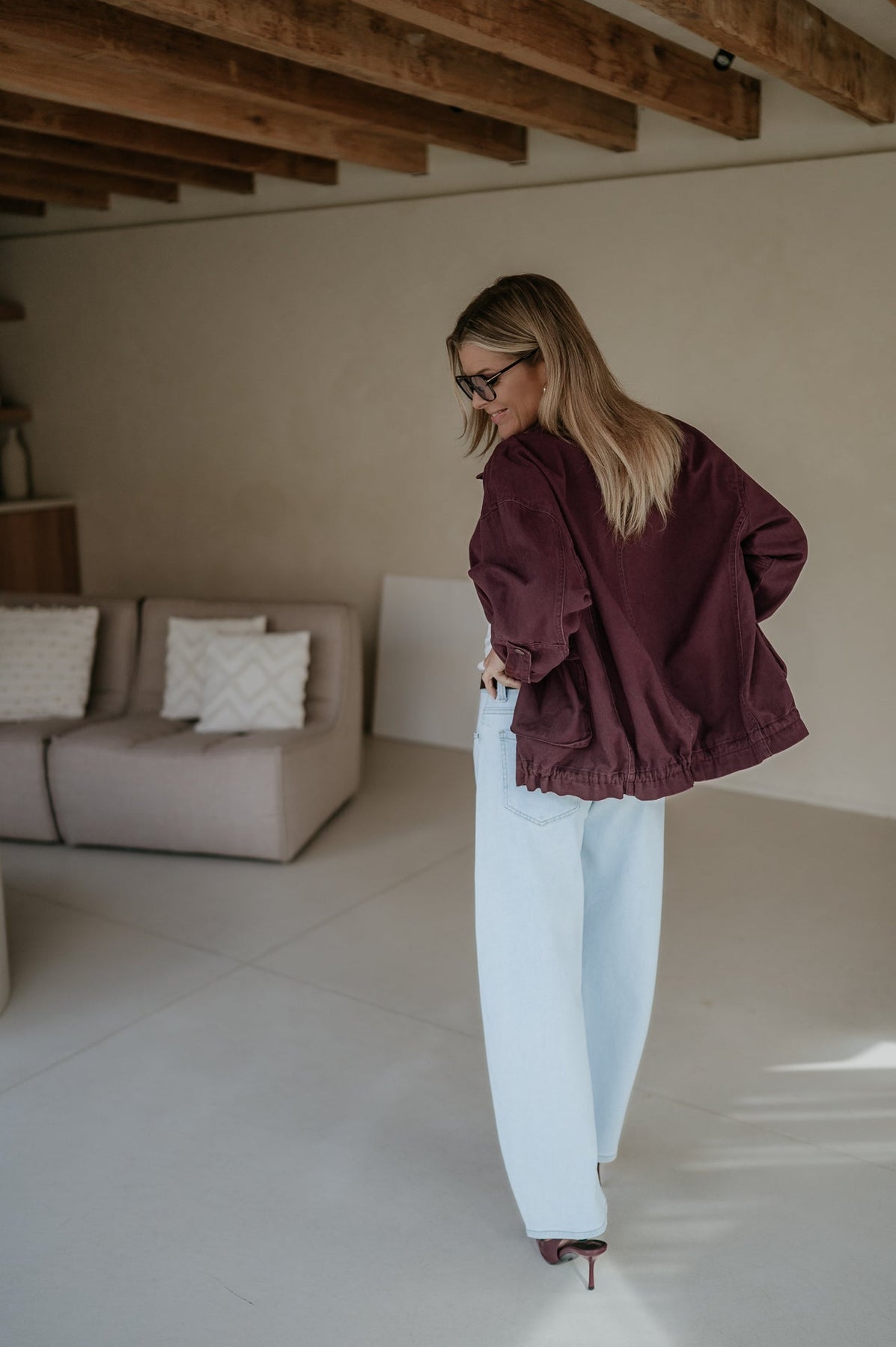 Dit prachtige burgundy jasje is zowel elegant als functioneel.