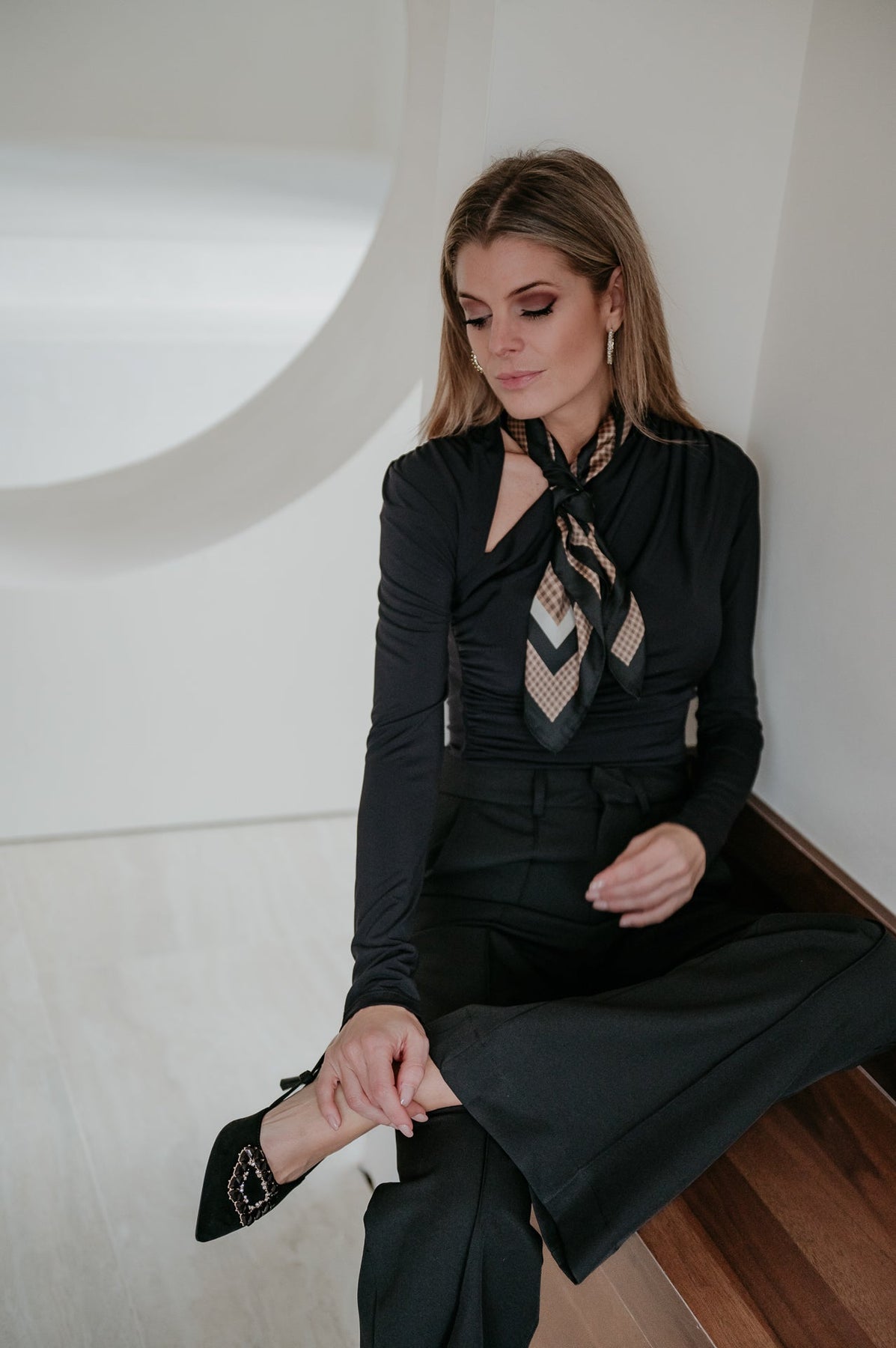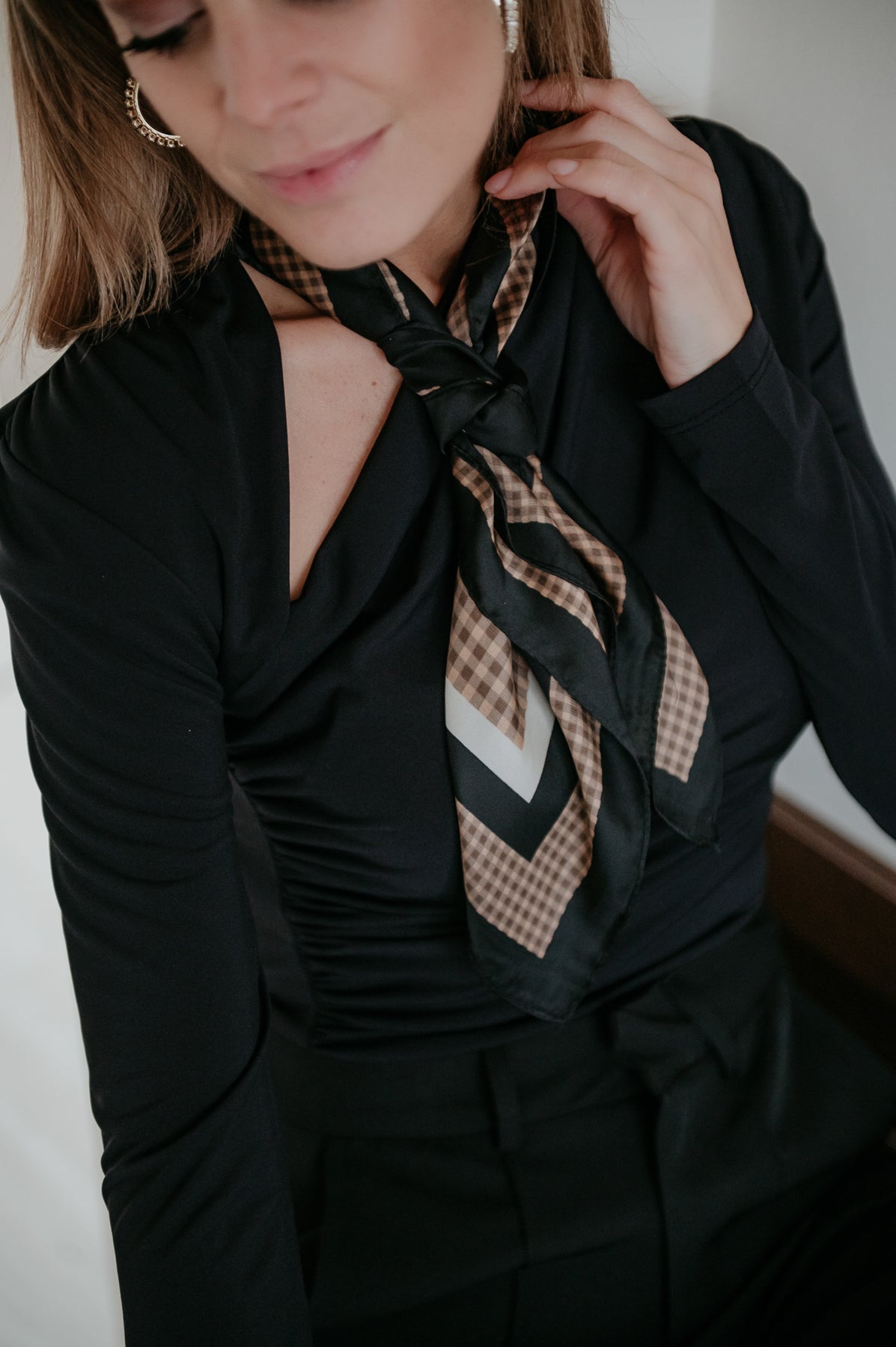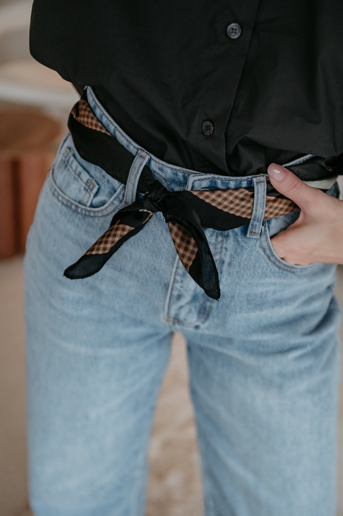 Je kunt het stijlvol knopen rond je nek, als accessoire aan je handtas of zelfs in je haar. Het materiaal voelt zacht aan en geeft een subtiel extra detail aan elke outfit.