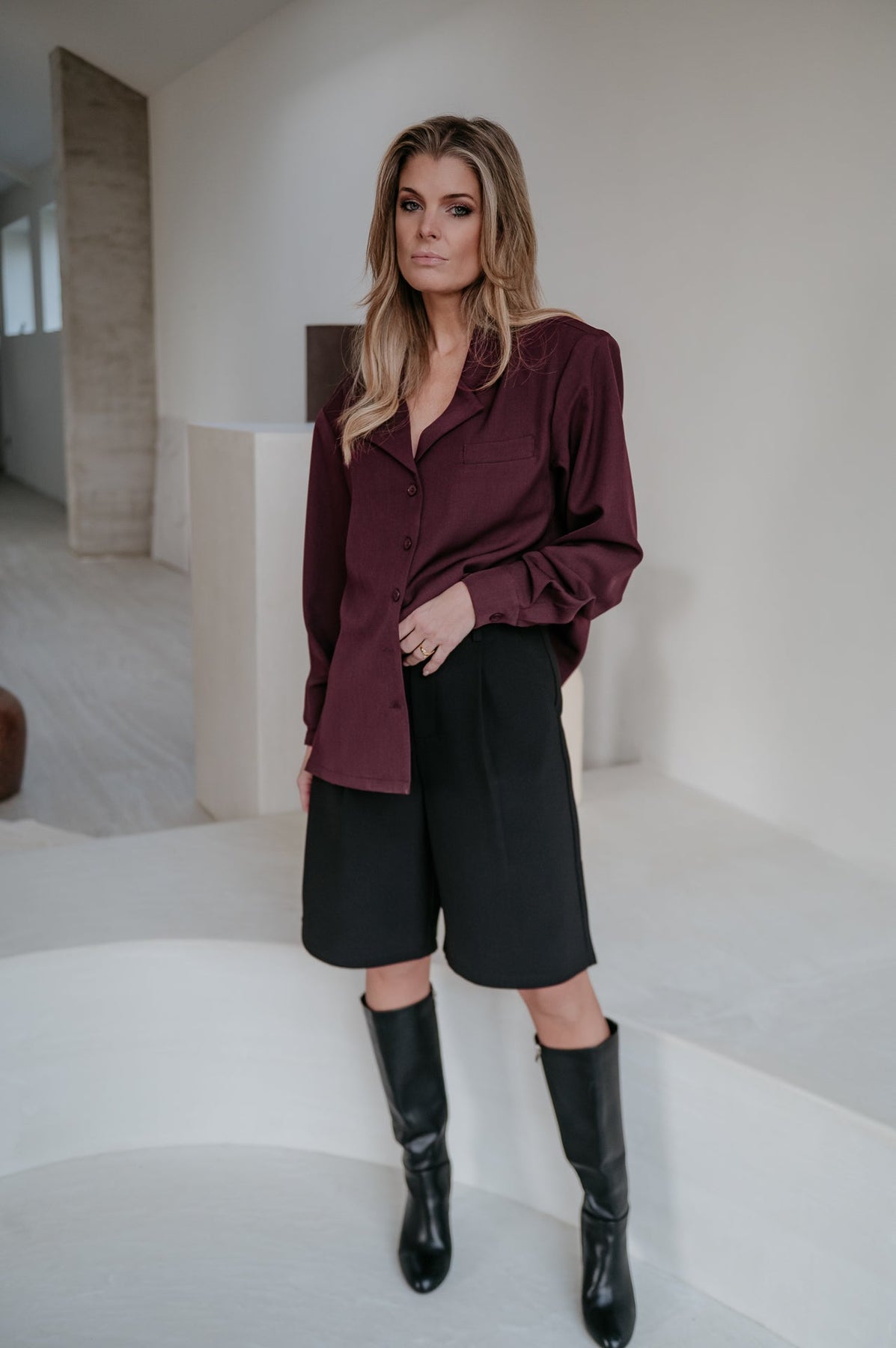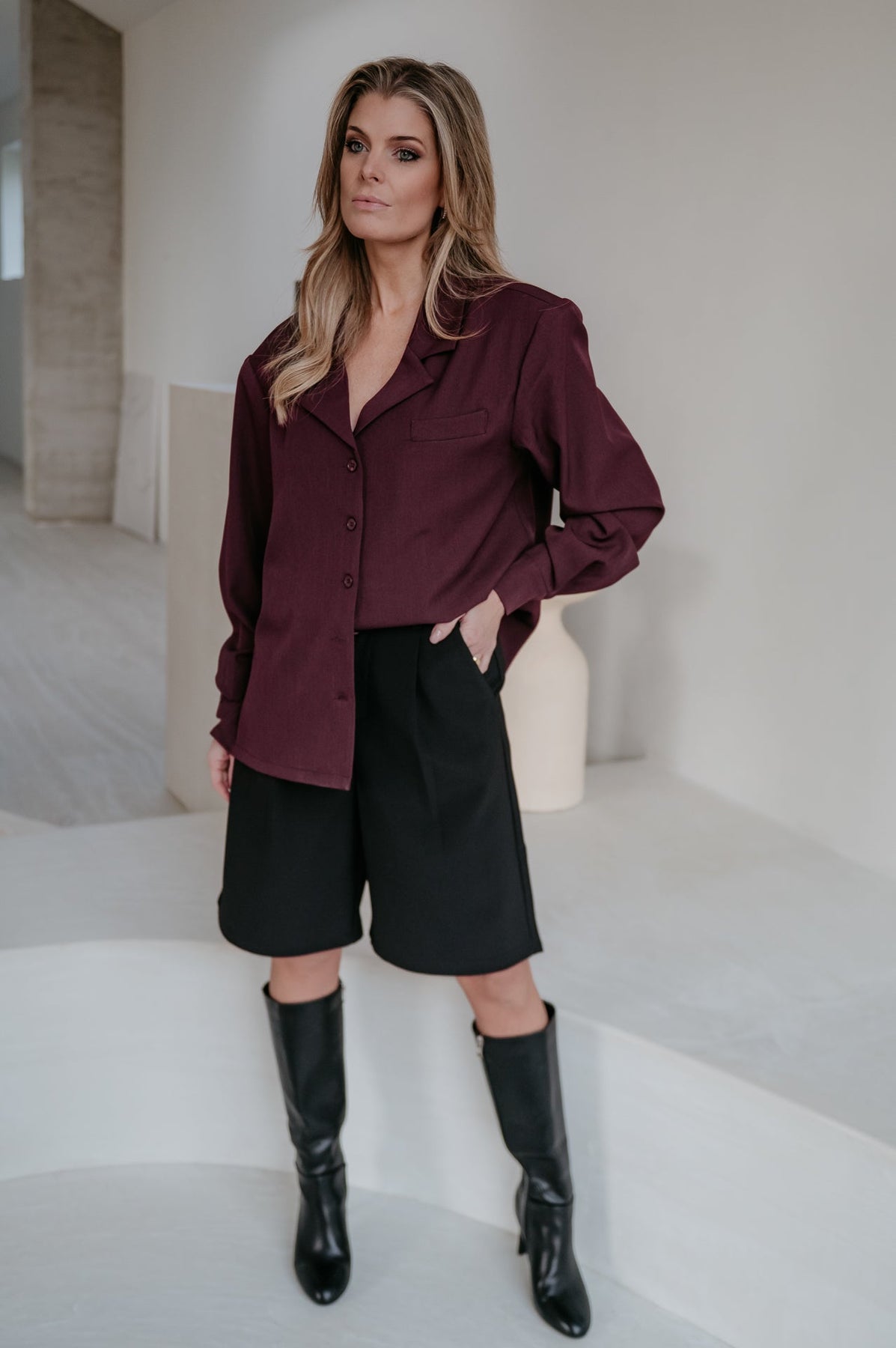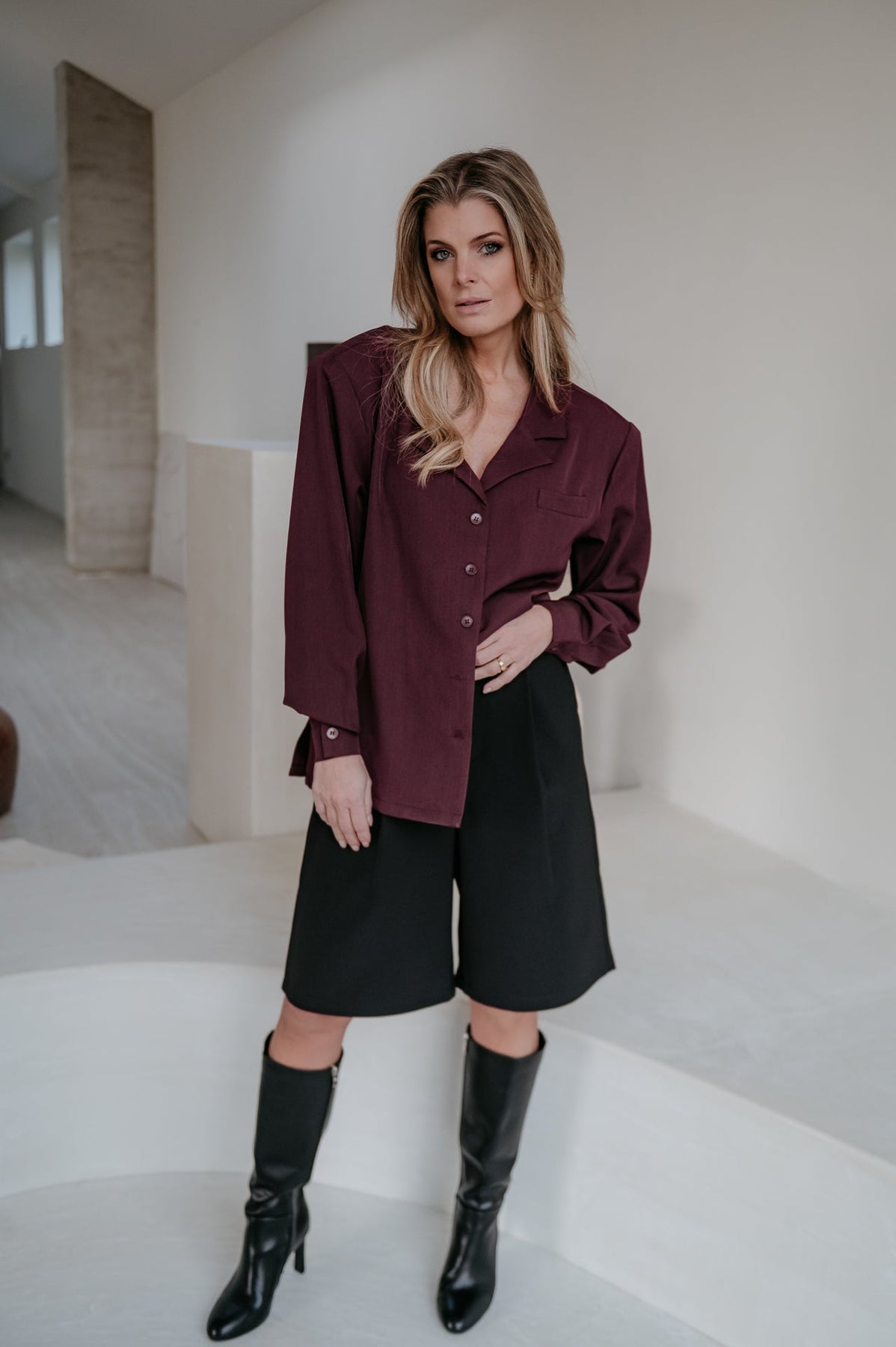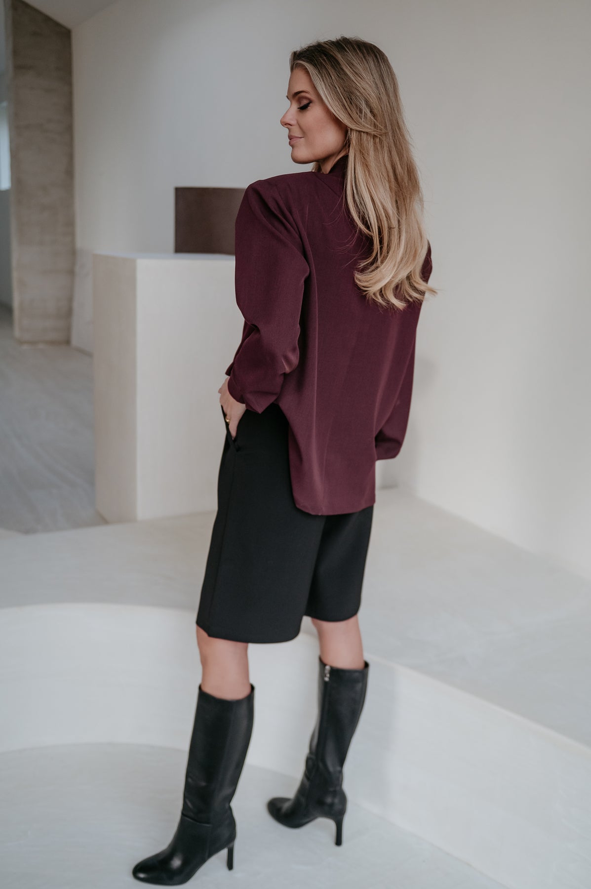 Het heeft die elegante, geklede look van een blazer maar voelt licht en vrouwelijk zoals een blouse.