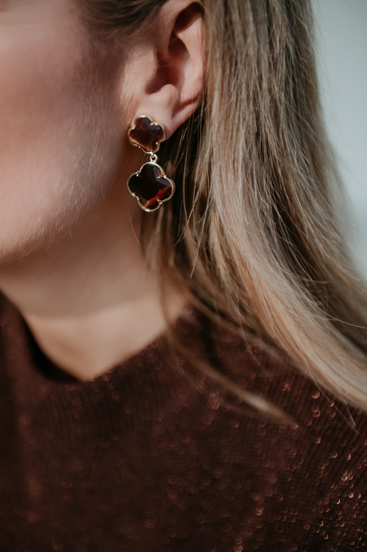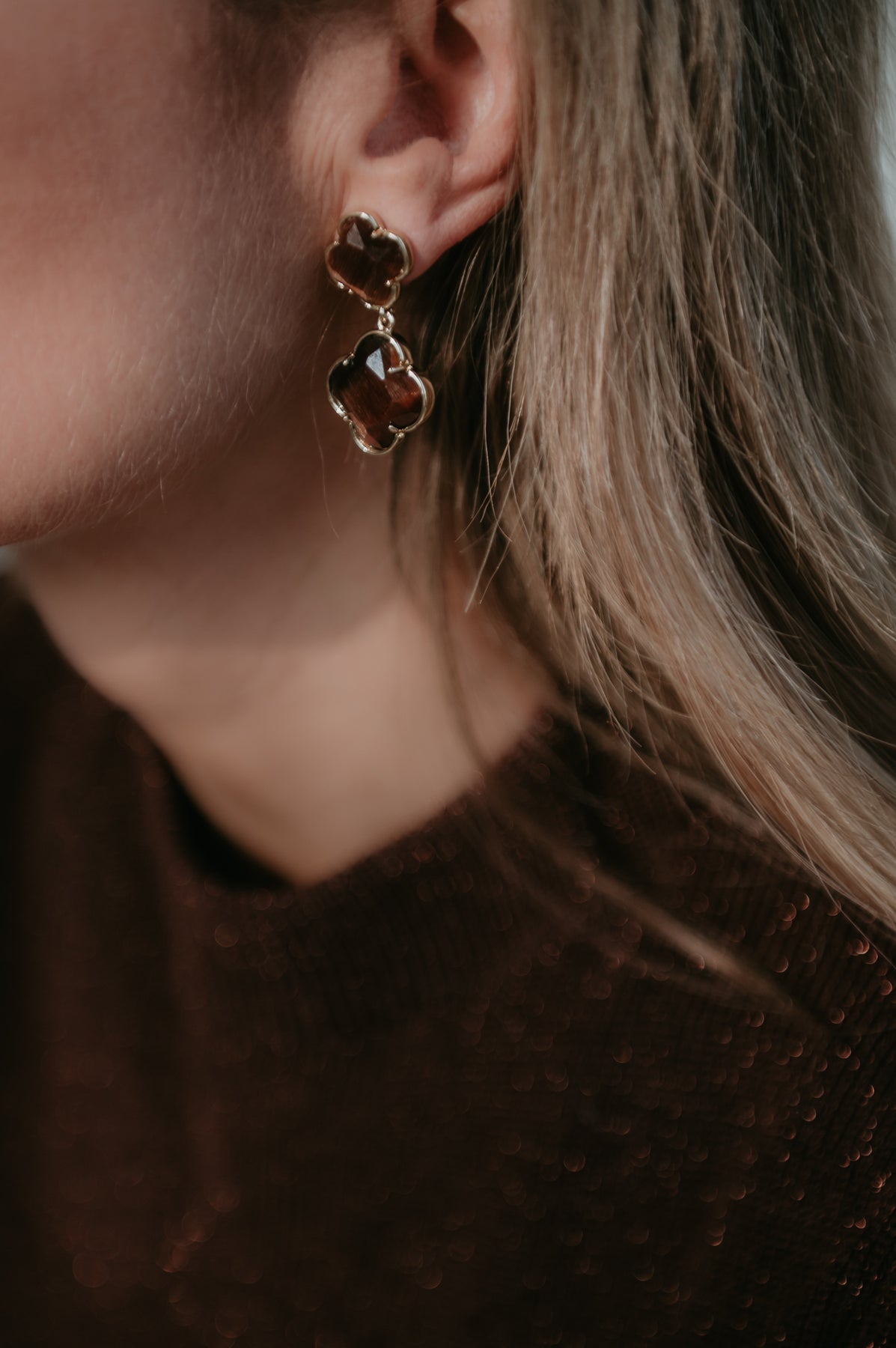 Deze bruine oorbellen zijn elegant en geven een warme, diepe kleur aan je outfit.