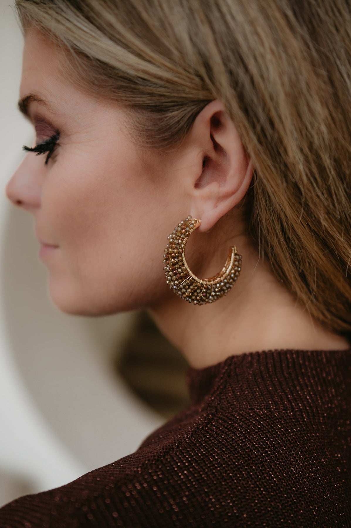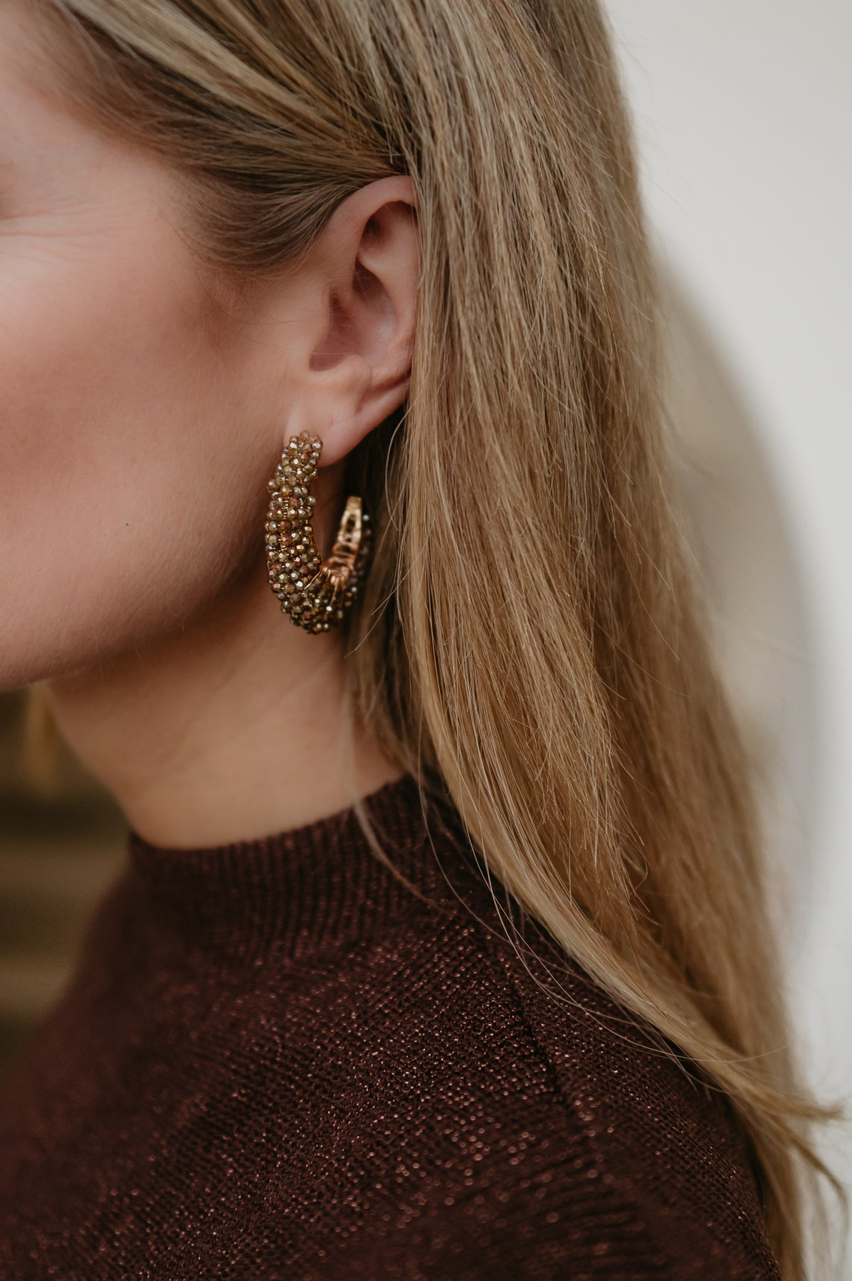 Mooie champagne kleurige oorbellen met fijne steentjes die subtiel schitteren.