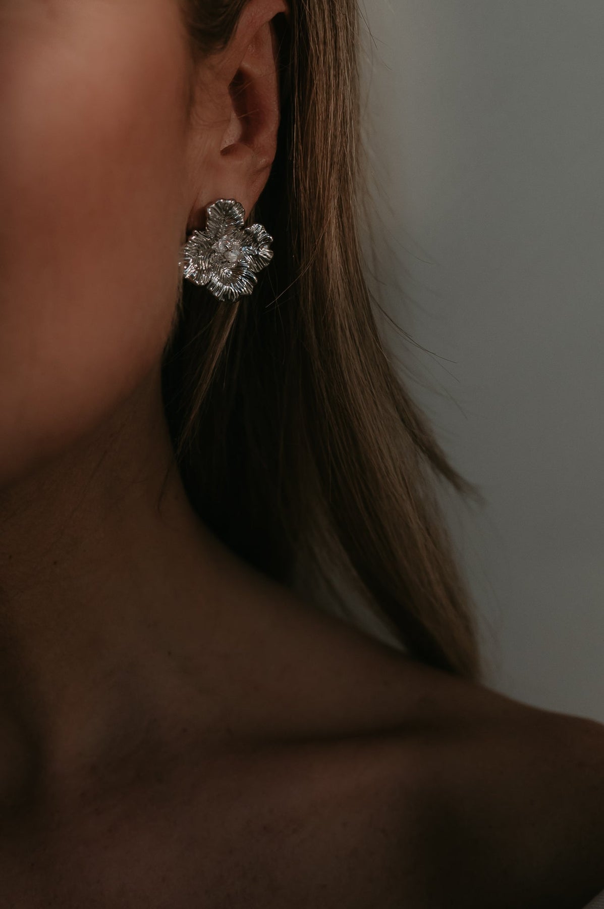 Deze zilveren oorbellen in de vorm van een bloemetje zijn elegant en subtiel.