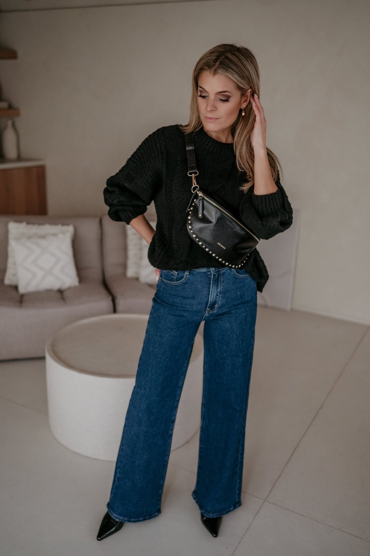 Deze zwarte lederen bumbag combineert stijl met functionaliteit.