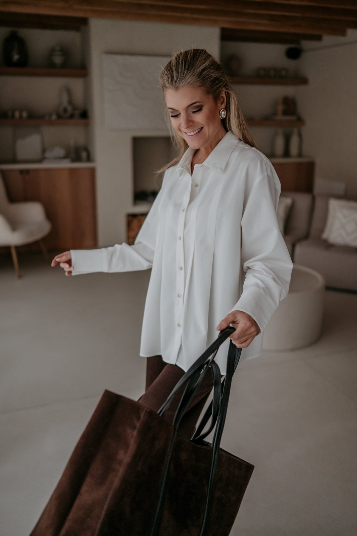 Het luchtige model valt mooi en is ideaal om zowel casual als gekleed te dragen.