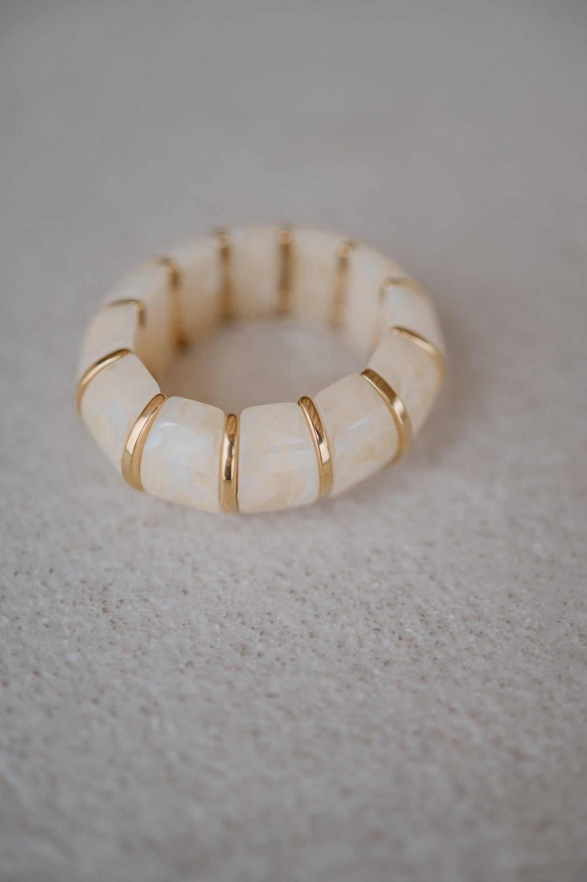 Deze prachtige beige armband met gouden details straalt elegantie en stijl uit.