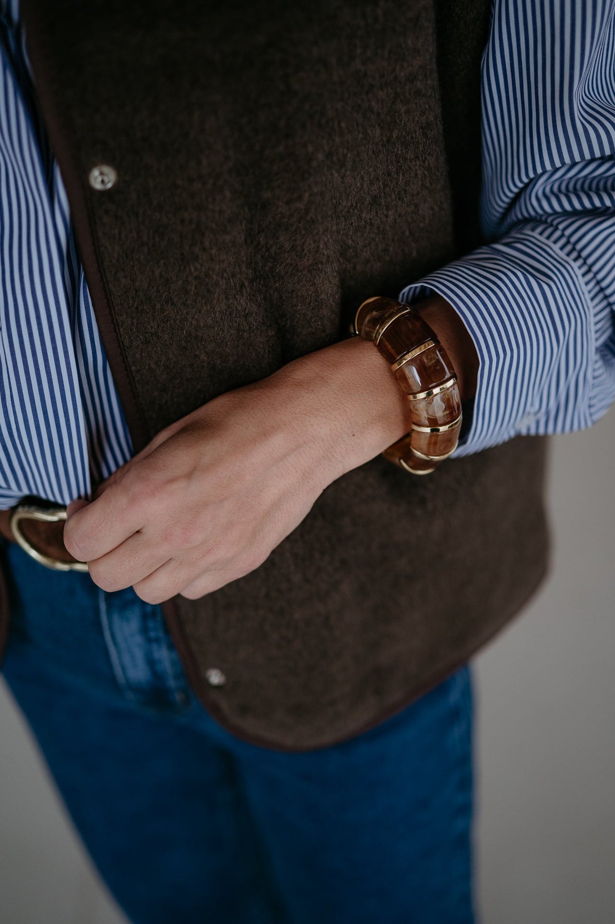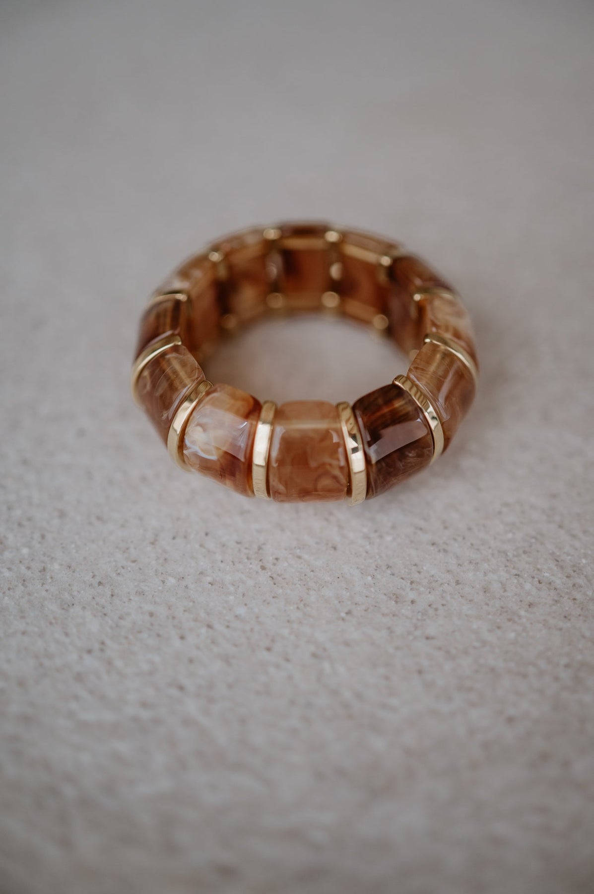 Deze prachtige bruine armband met gouden details straalt elegantie en stijl uit.
