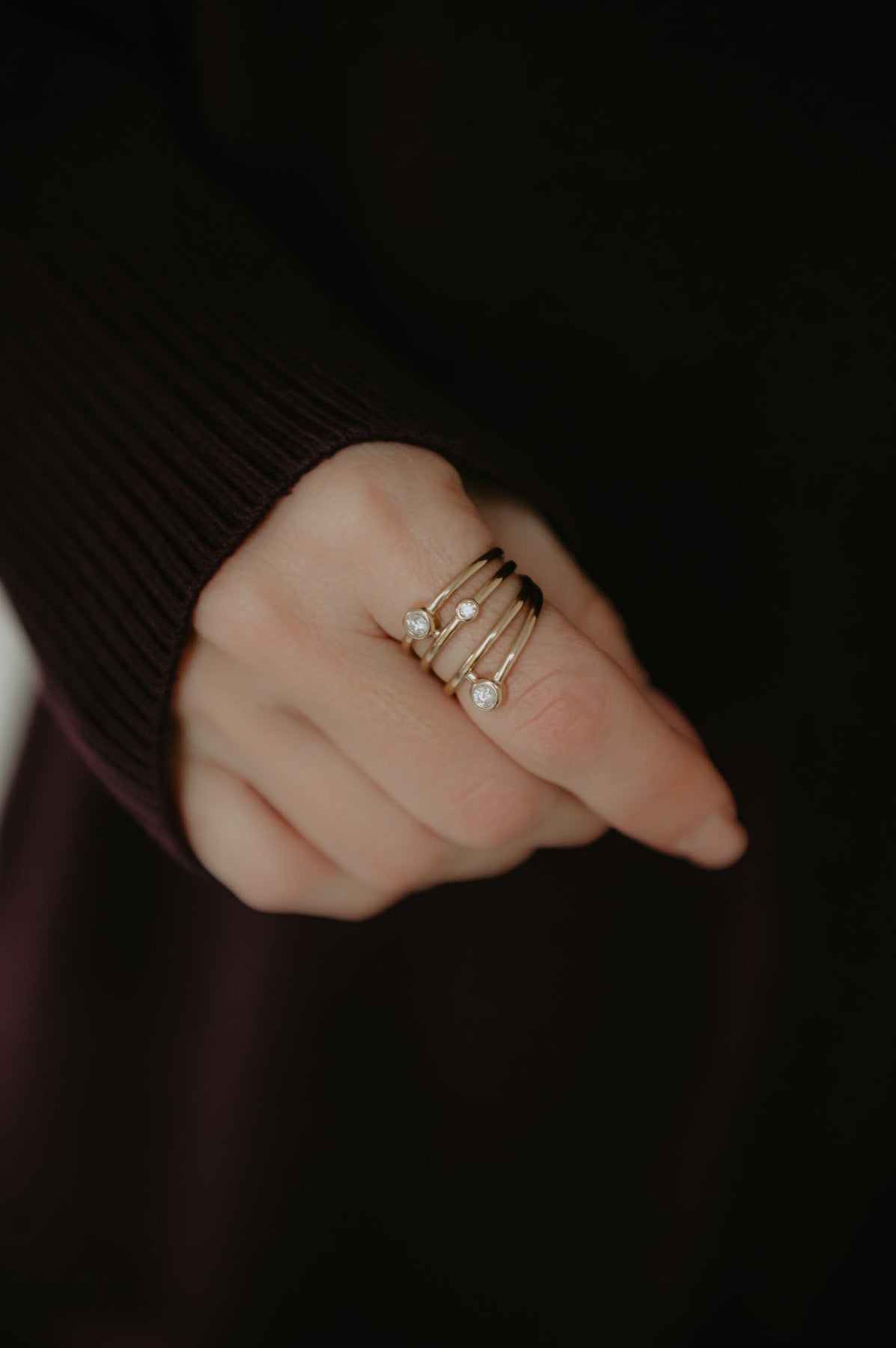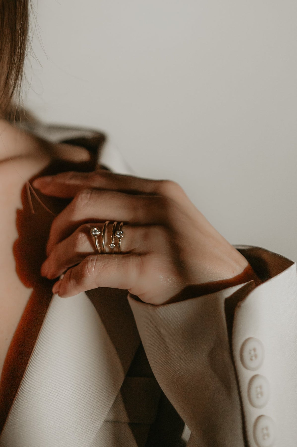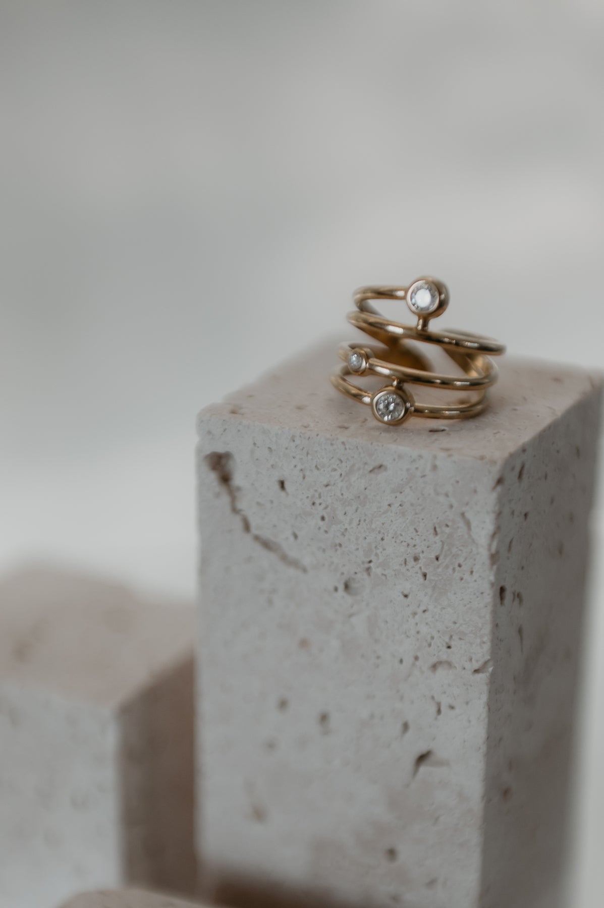 Een subtiele ring met kleine steentjes die elegant en verfijnd oogt.