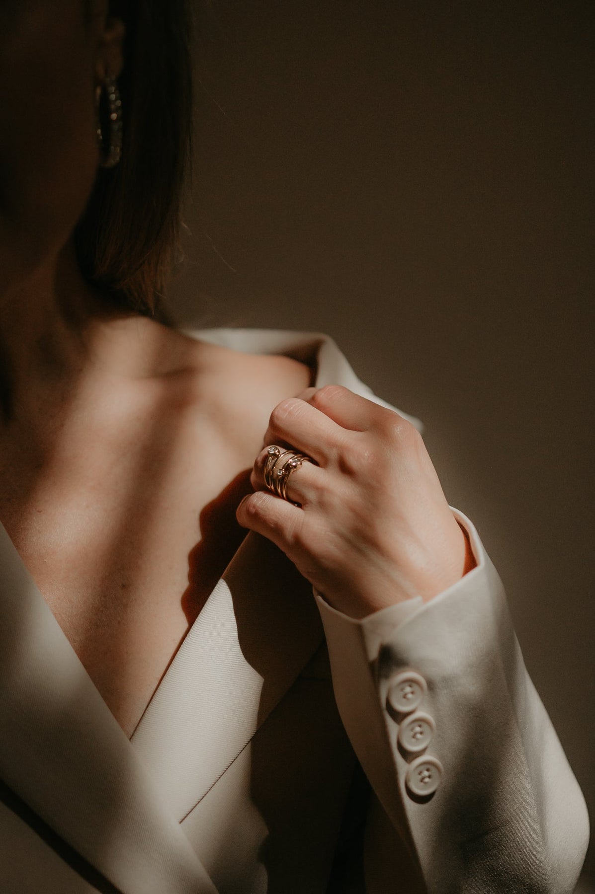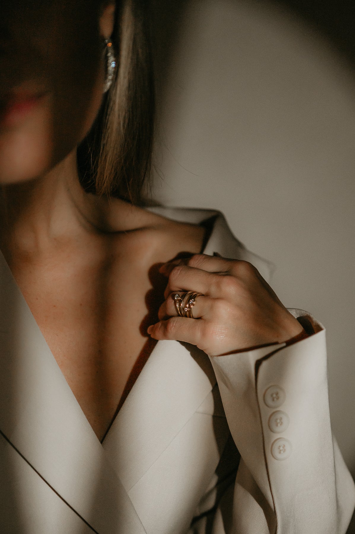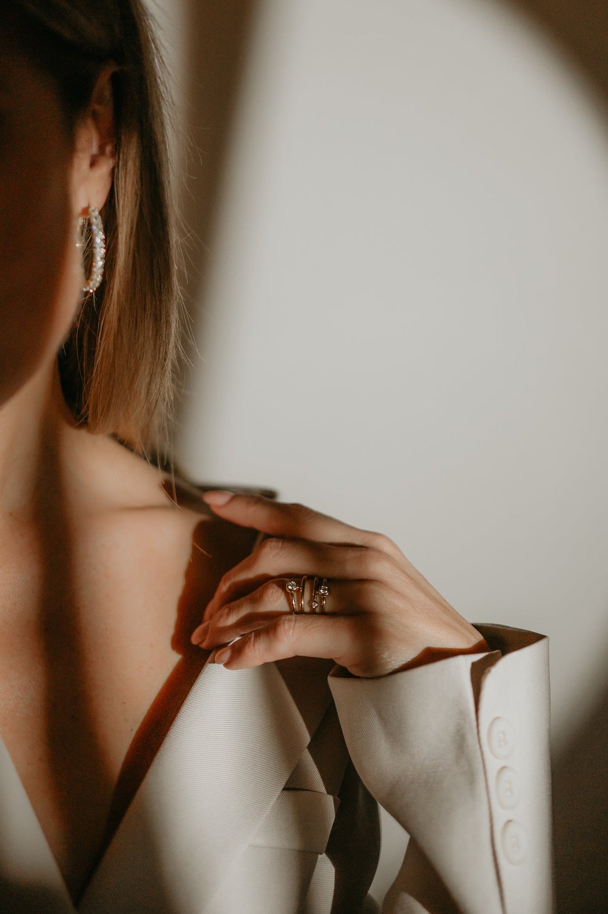 Een subtiele ring met kleine steentjes die elegant en verfijnd oogt.