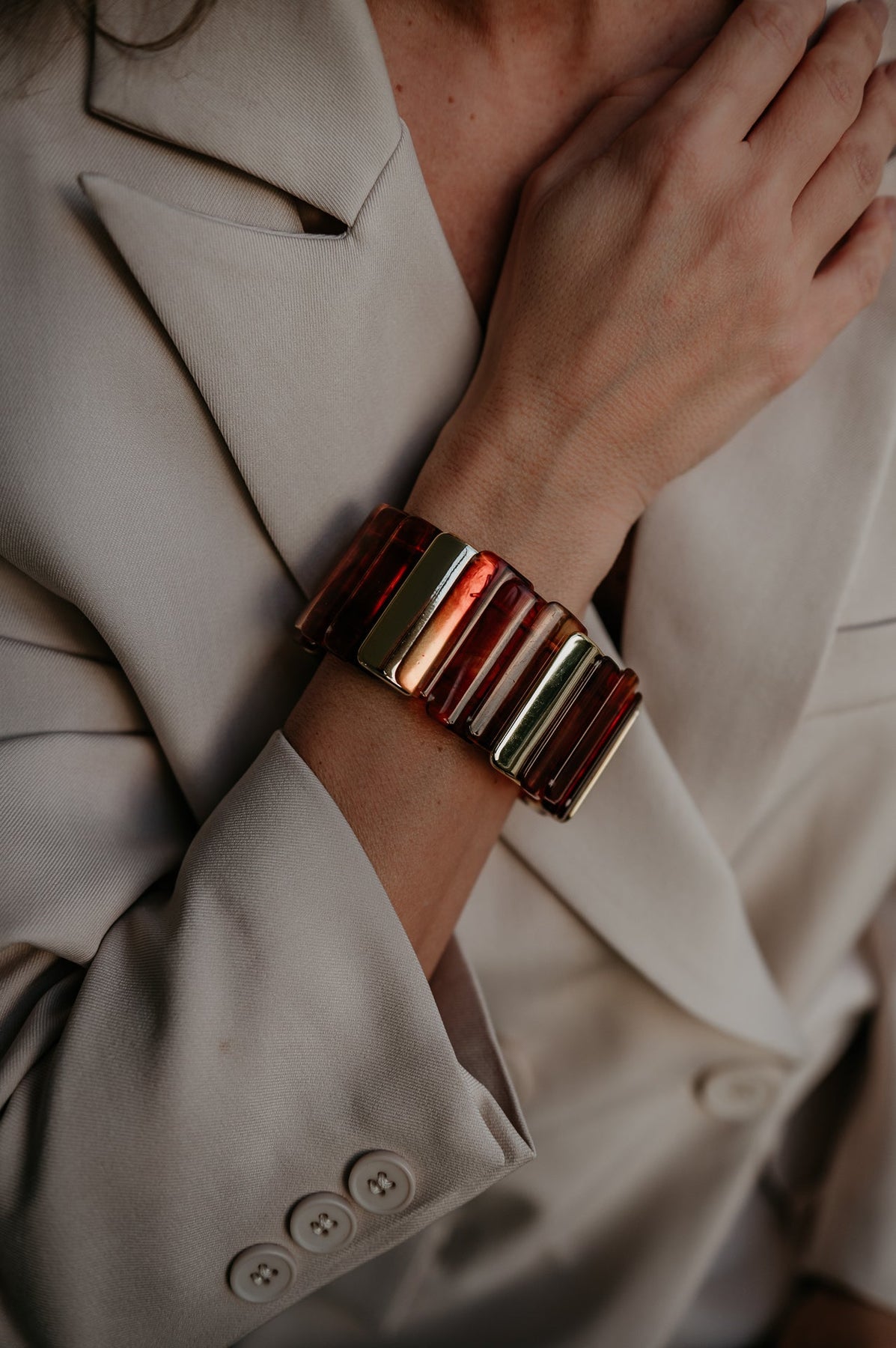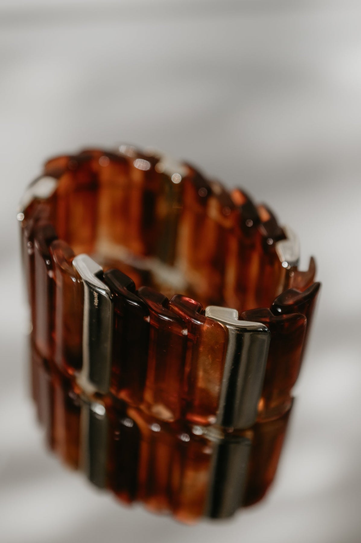 Een mooie bruine armband met subtiele gouden details die elke outfit net dat beetje extra geeft.