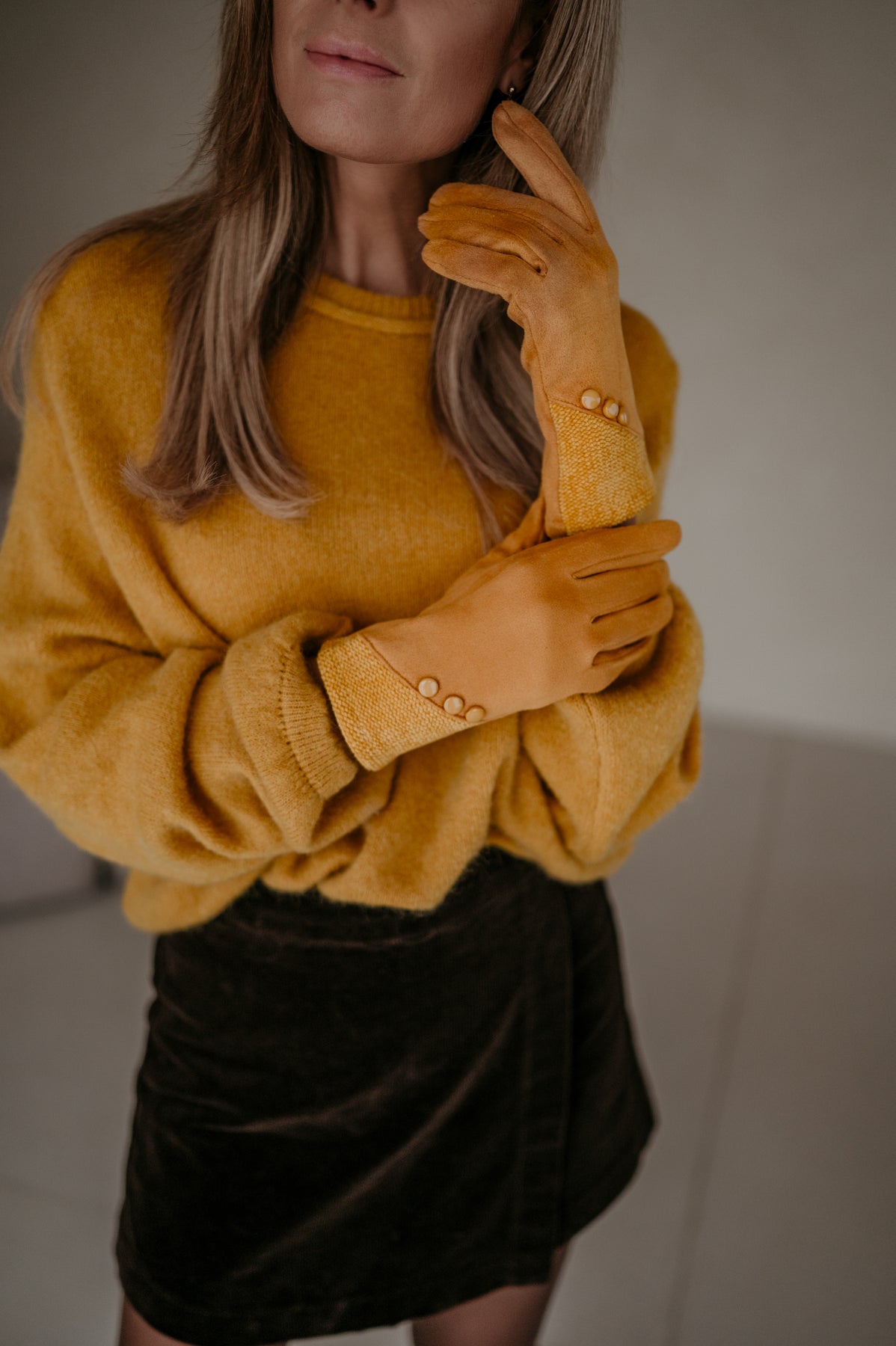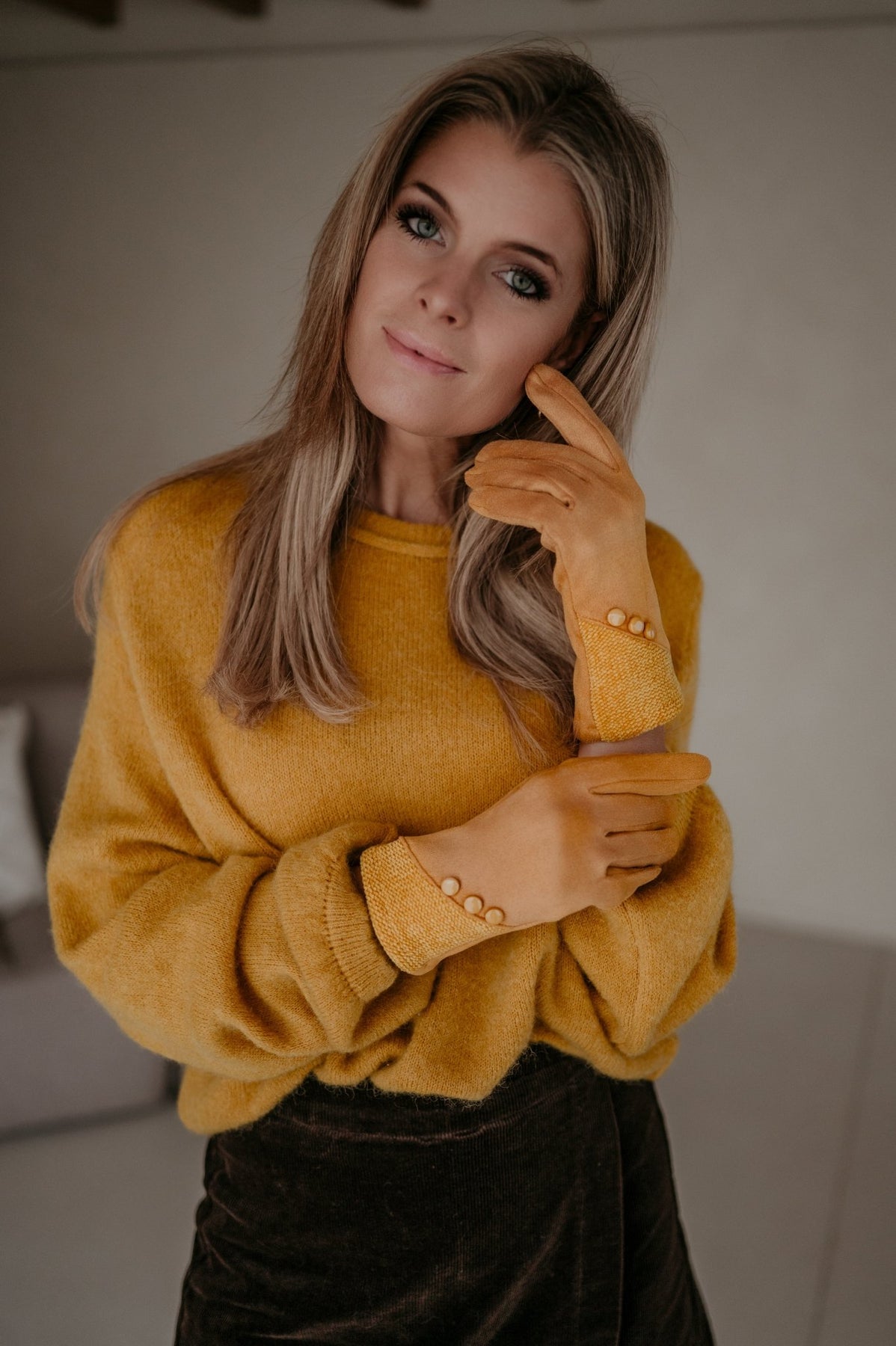 Deze okergele handschoenen brengen warmte en stijl samen.