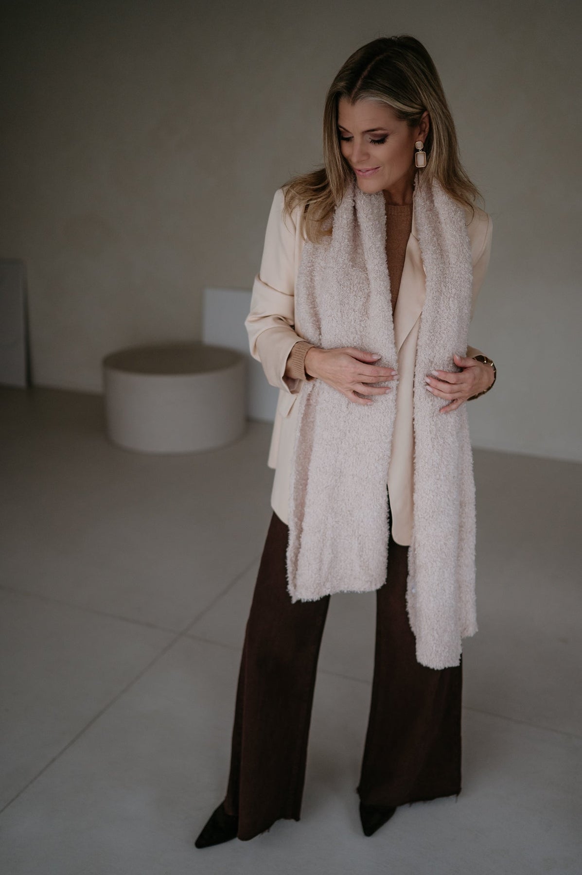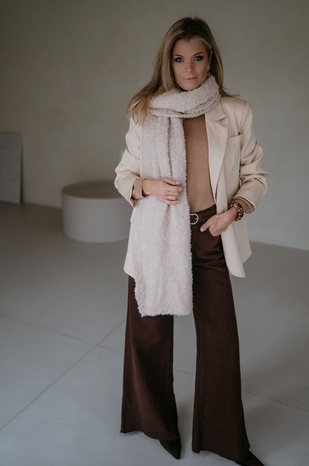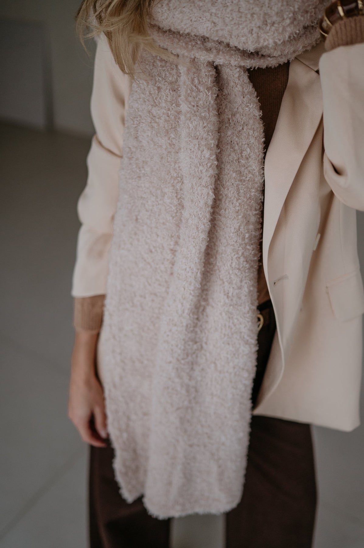 Deze mega zachte beige sjaal is de perfecte toevoeging aan je outfit.