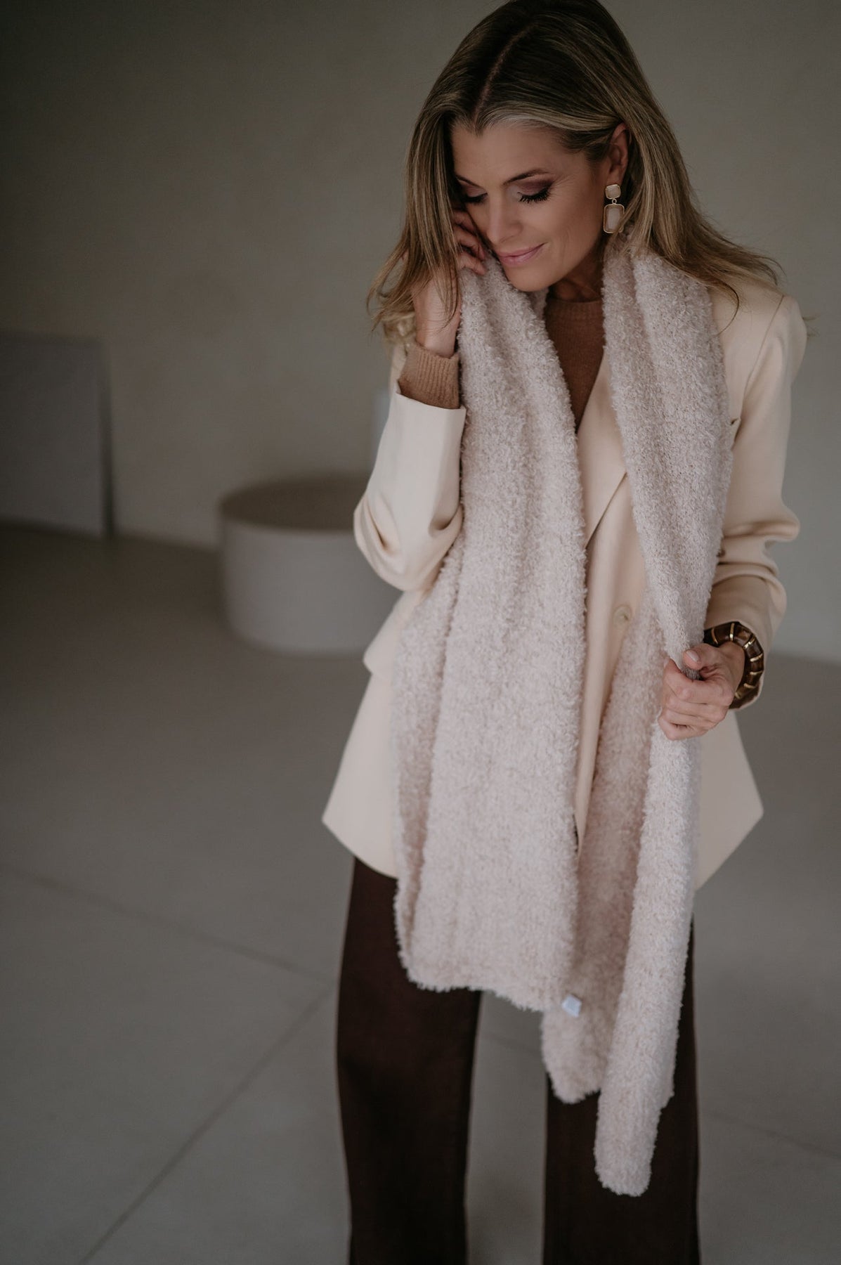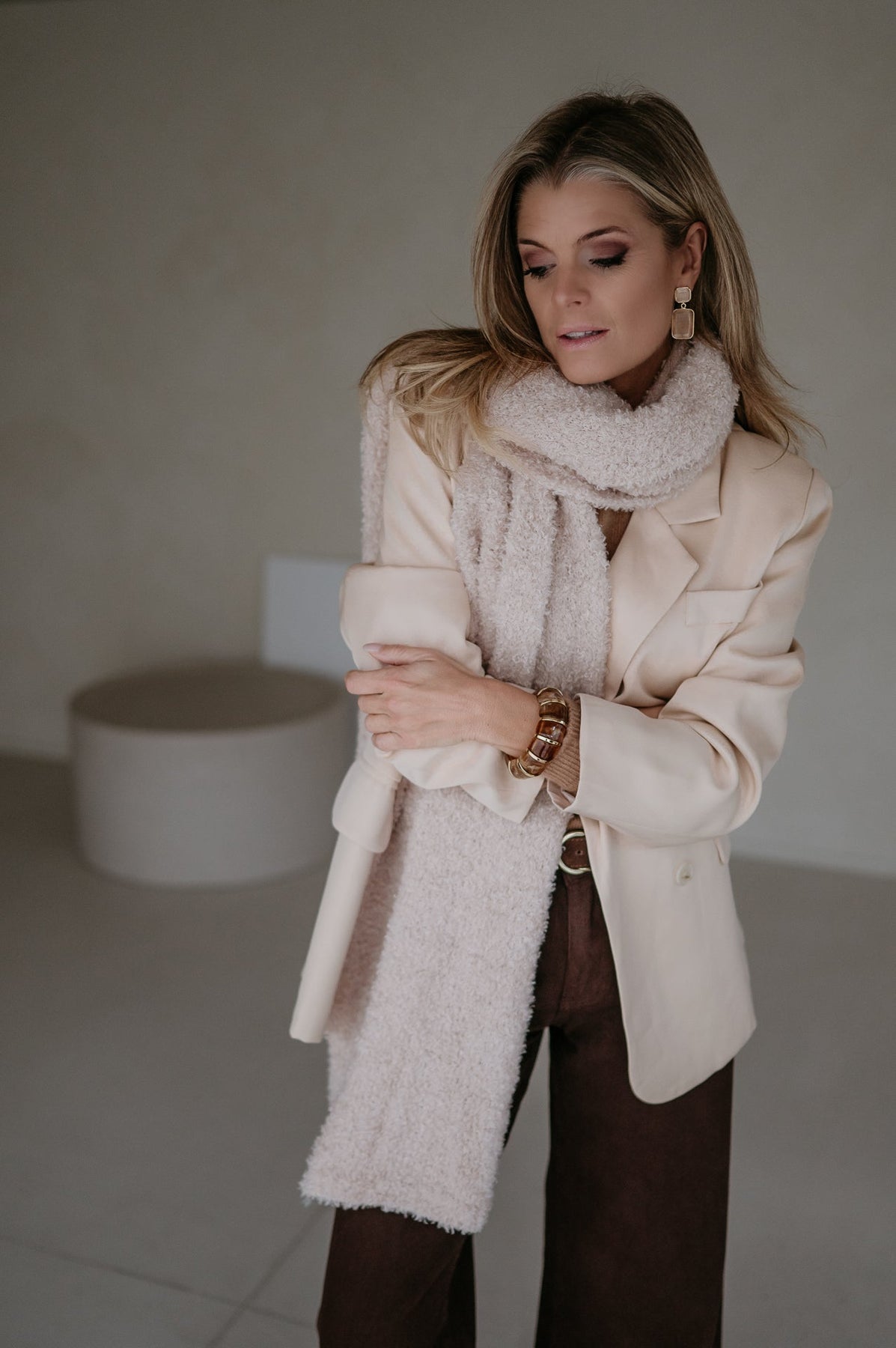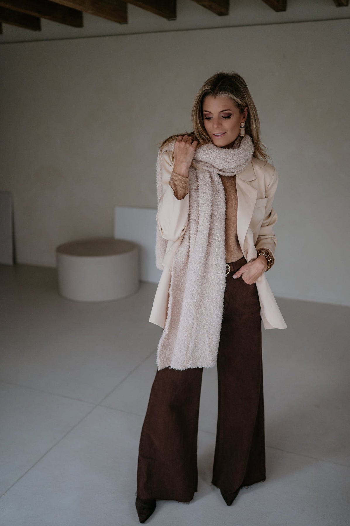 Deze mega zachte beige sjaal is de perfecte toevoeging aan je outfit.