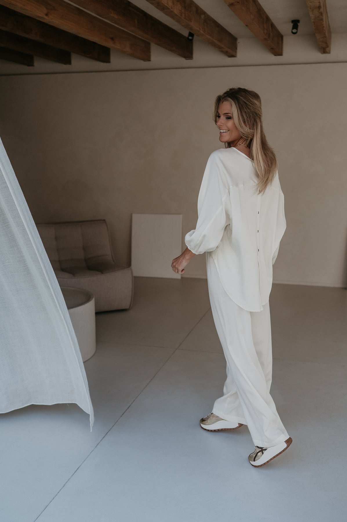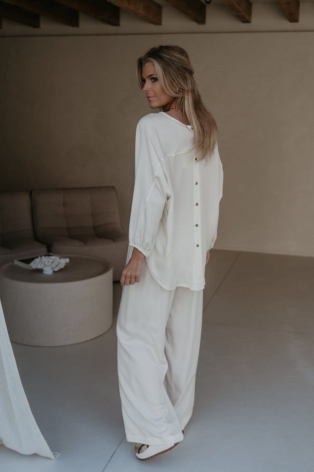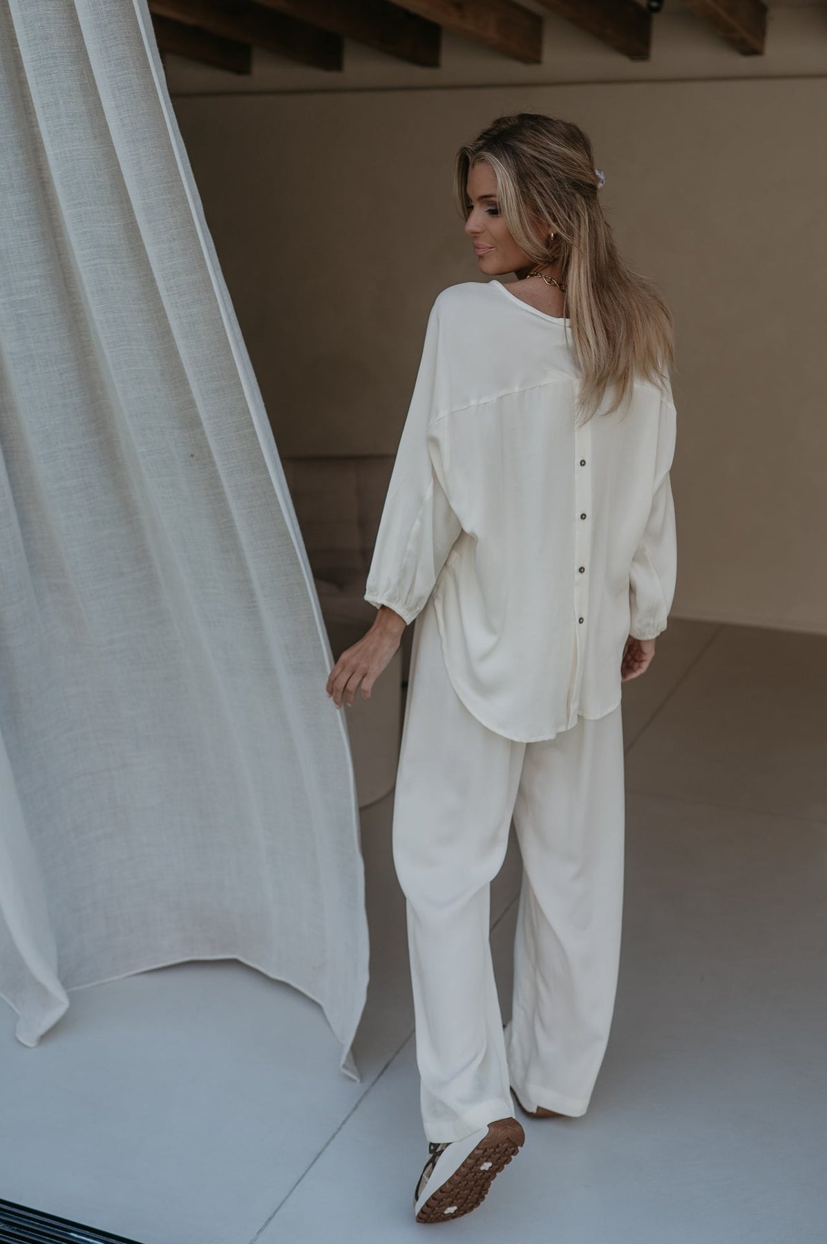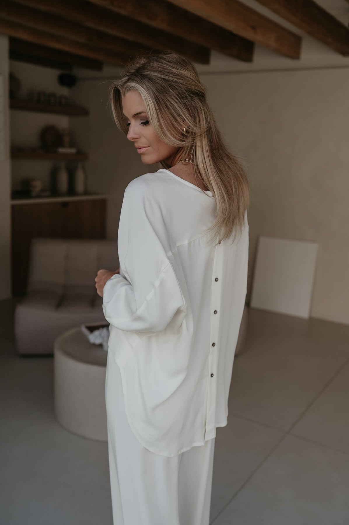 De blouse heeft achteraan prachtige knoopjes, wat zorgt voor een elegante en vrouwelijke touch.
