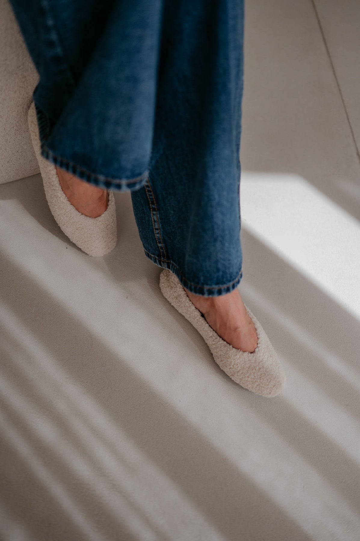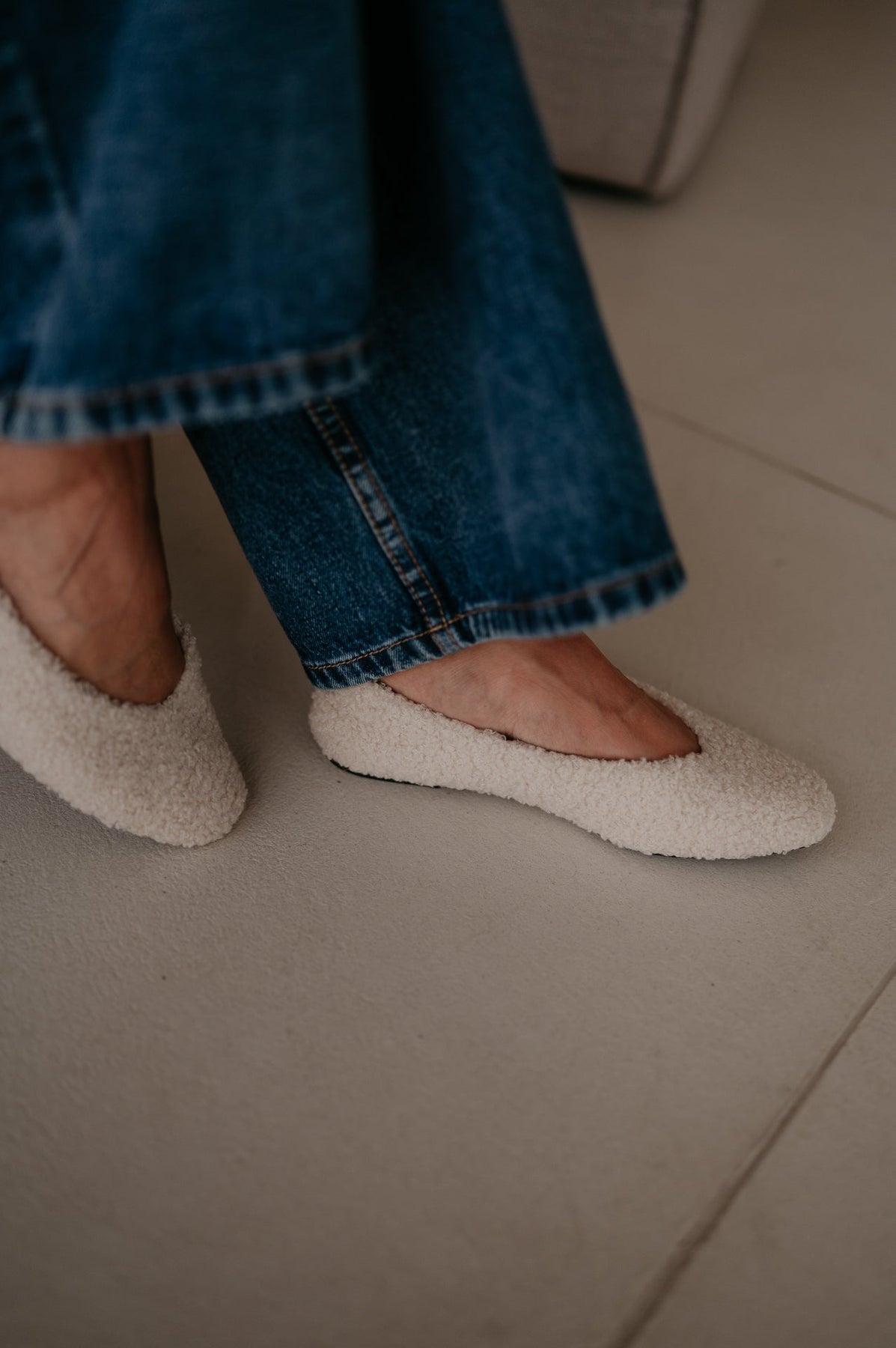Het zachte teddy materiaal geeft ze een speelse, cozy uitstraling, terwijl het ballerina-model zorgt voor een elegante touch.