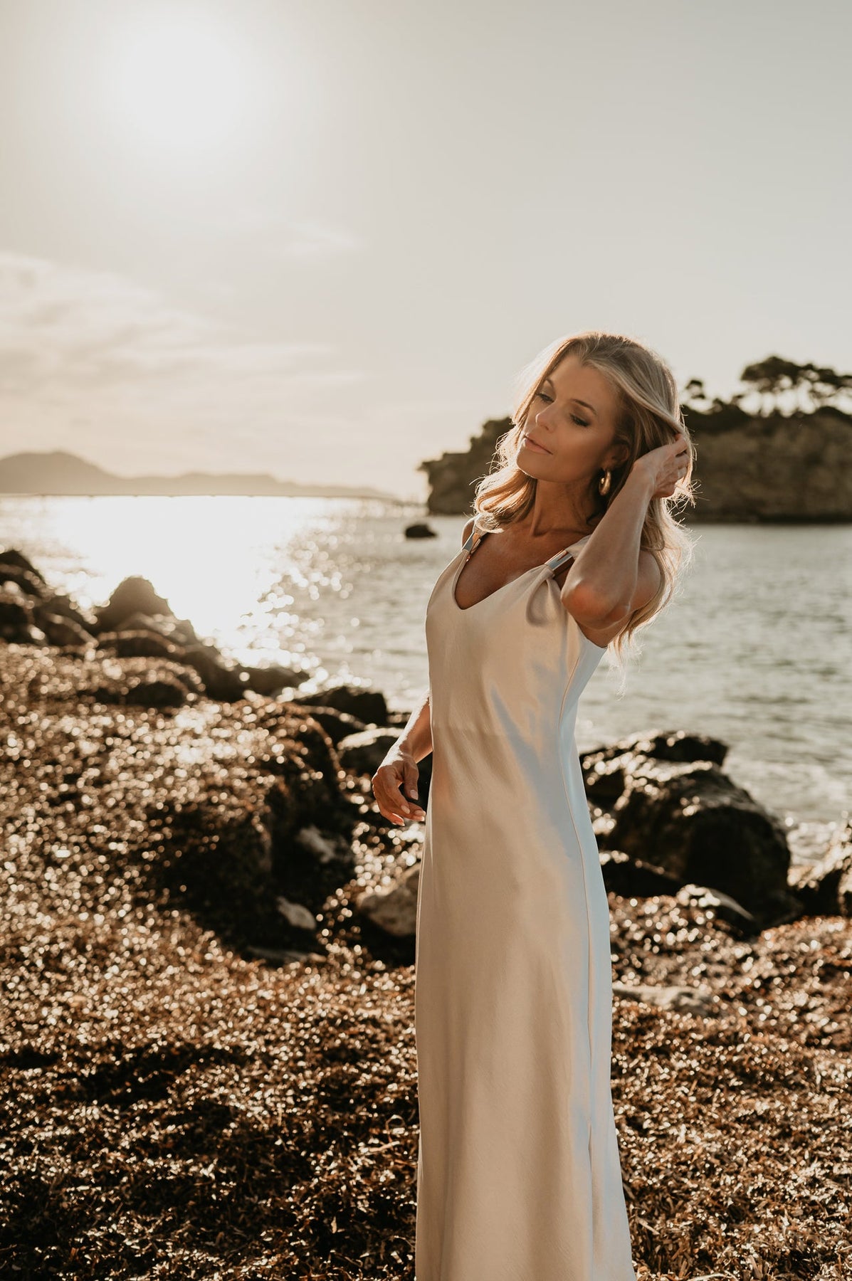 Elegante lange jurk in een zachte, vloeiende stof die prachtig valt.