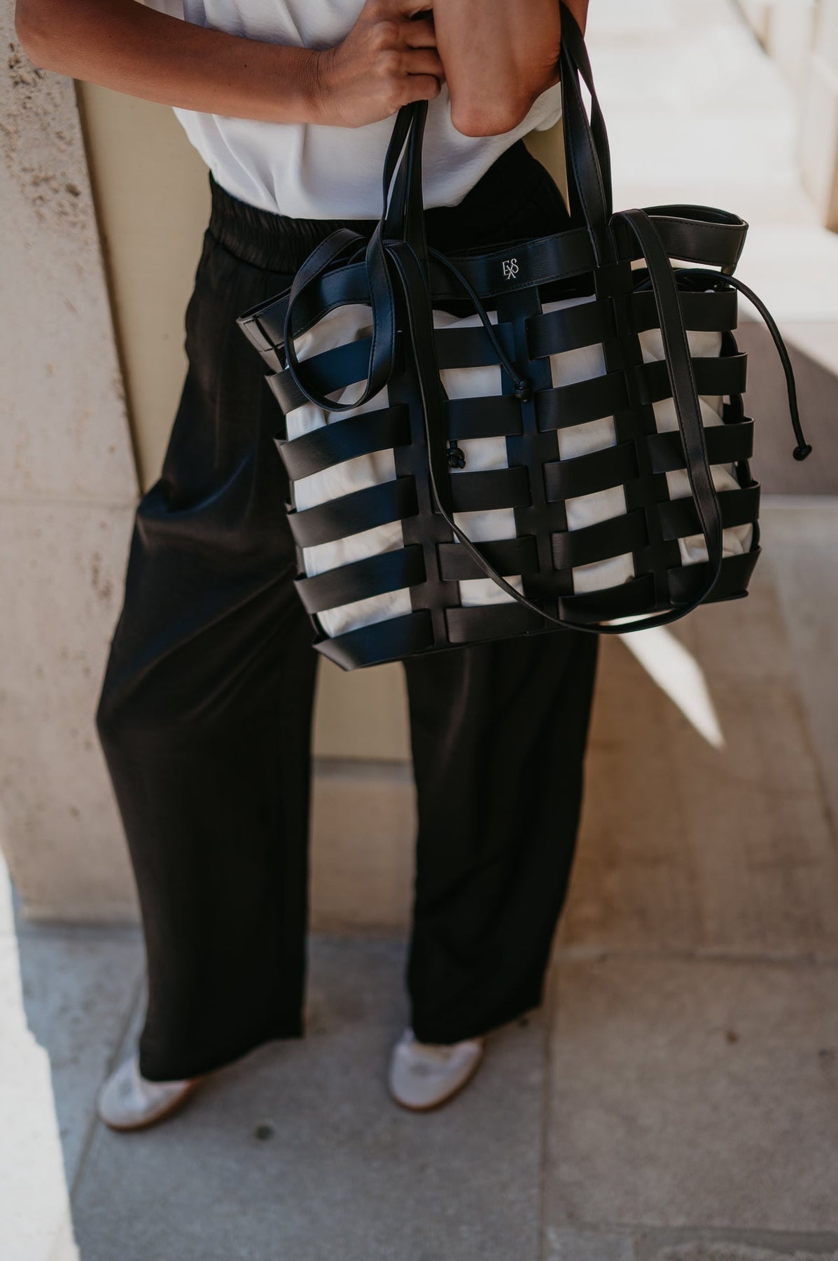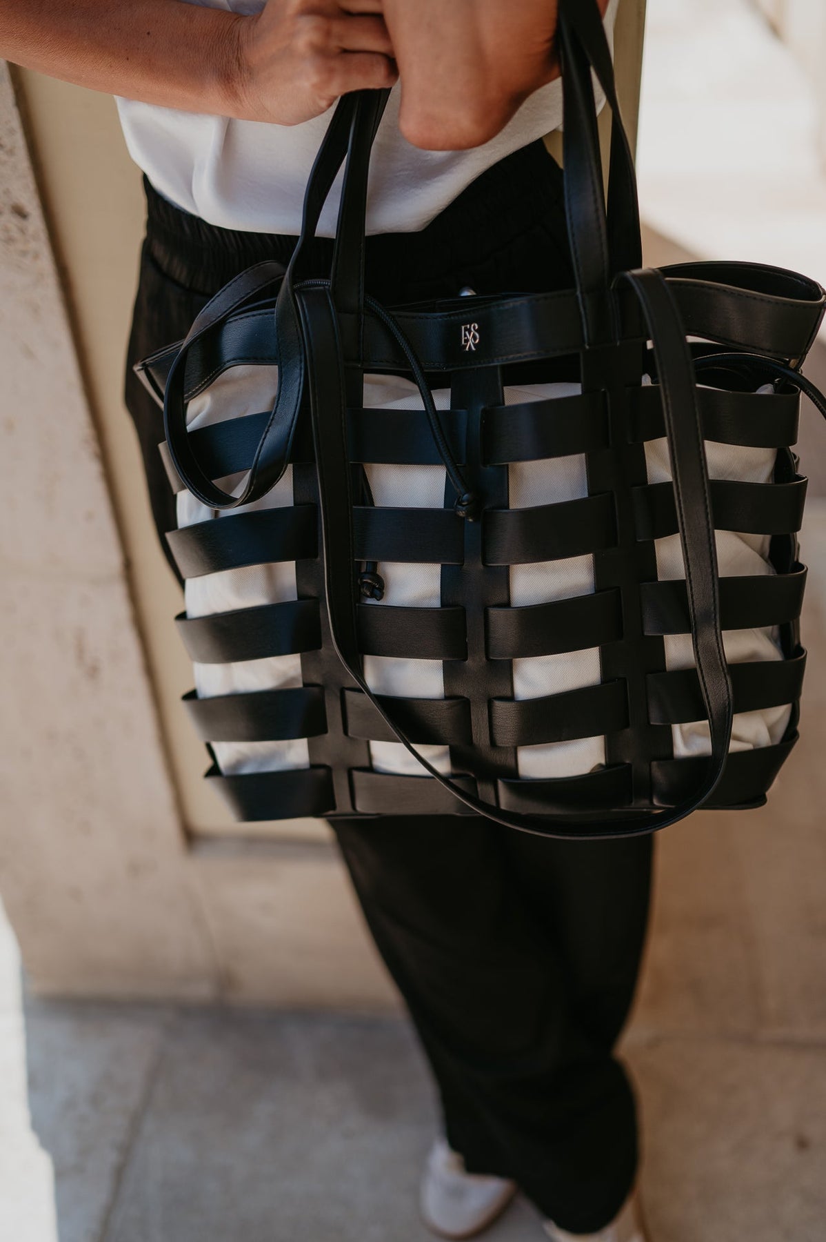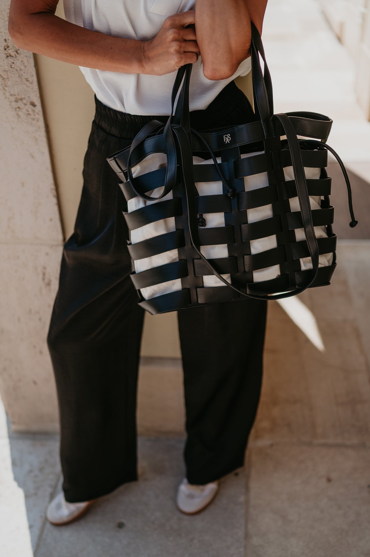 Stijlvolle zwarte tas die klasse en eenvoud uitstraalt.