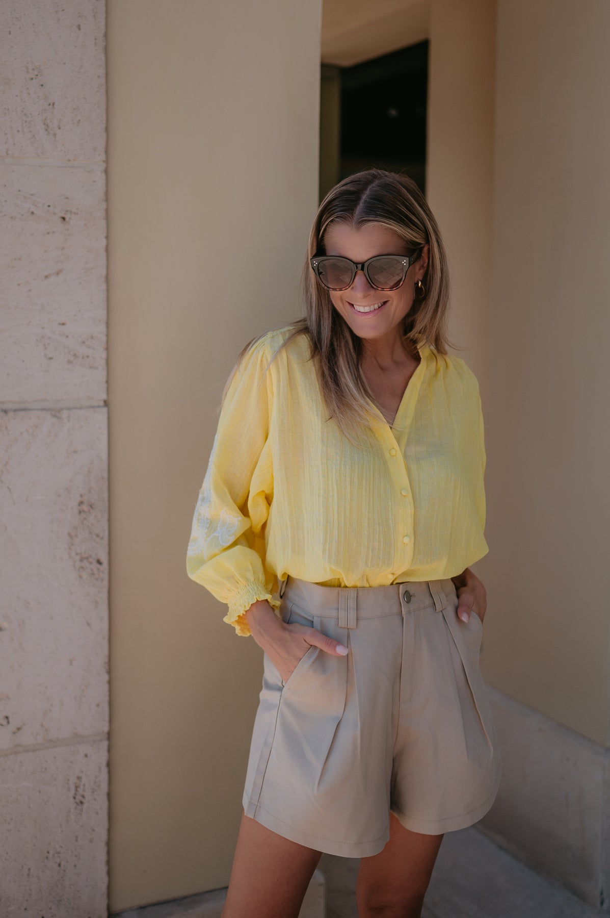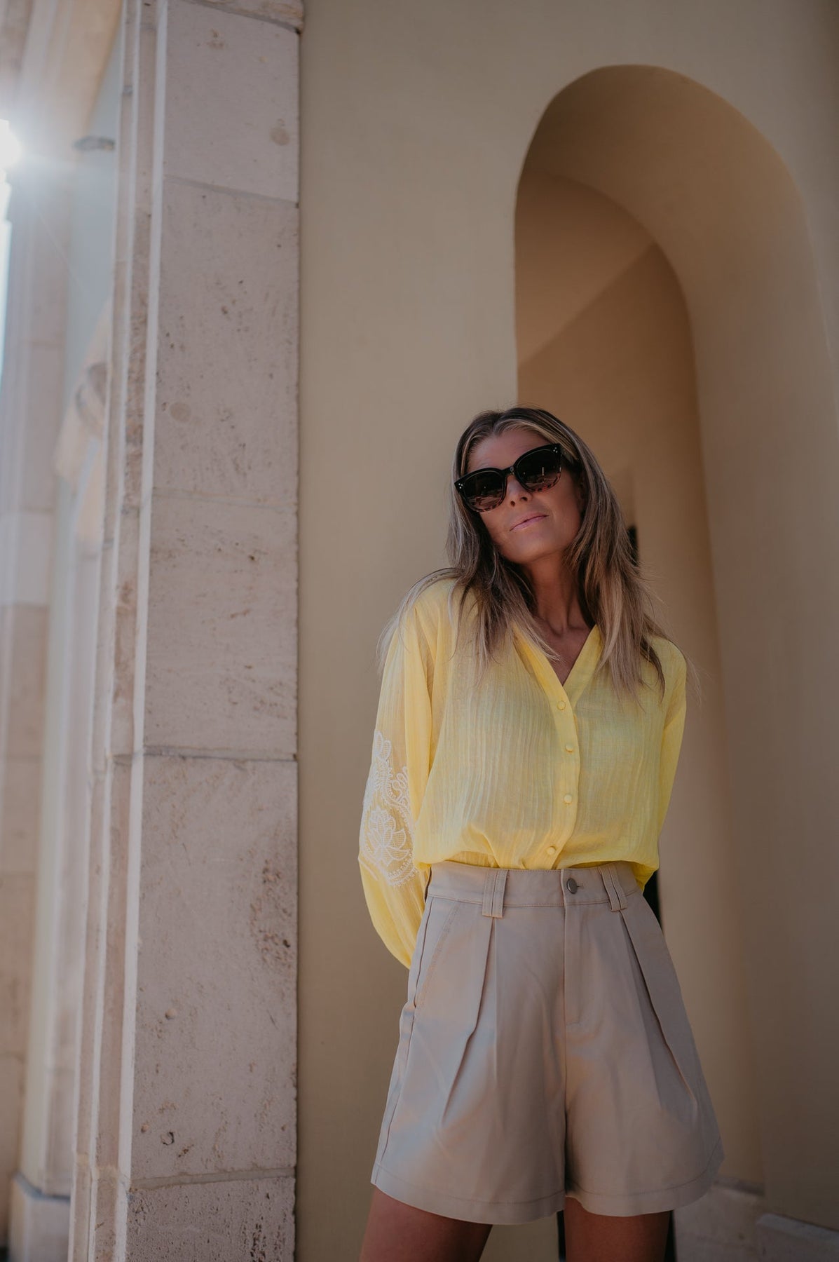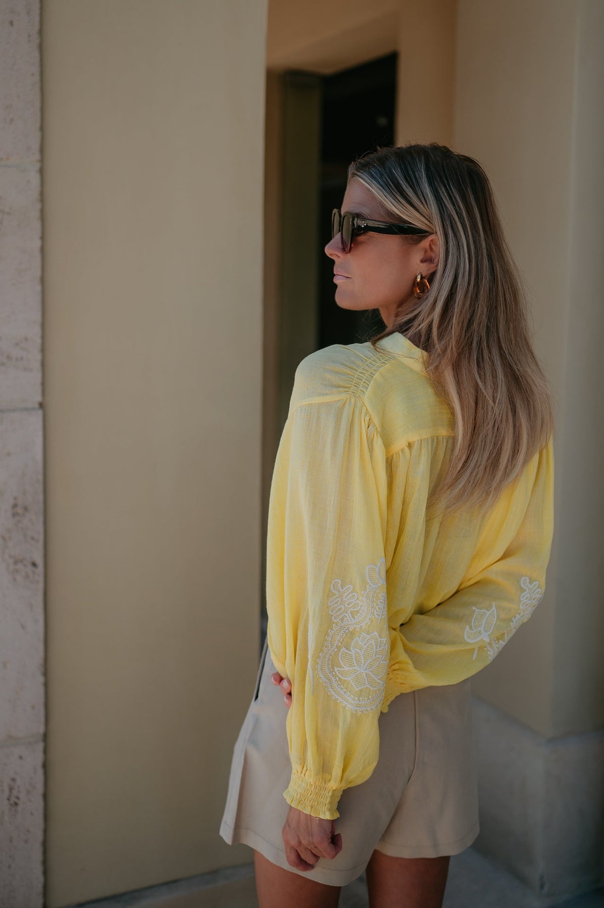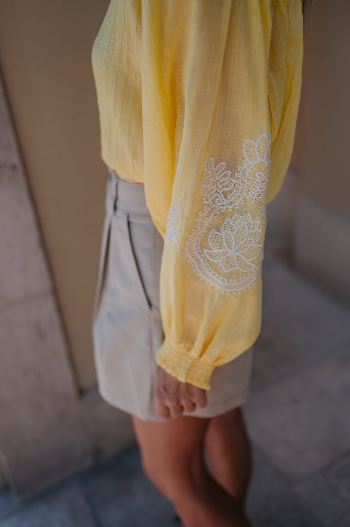 De subtiele details op de mouwen geven het net dat beetje extra, zonder te overdrijven. Perfect om te dragen op een jeans of shortje.