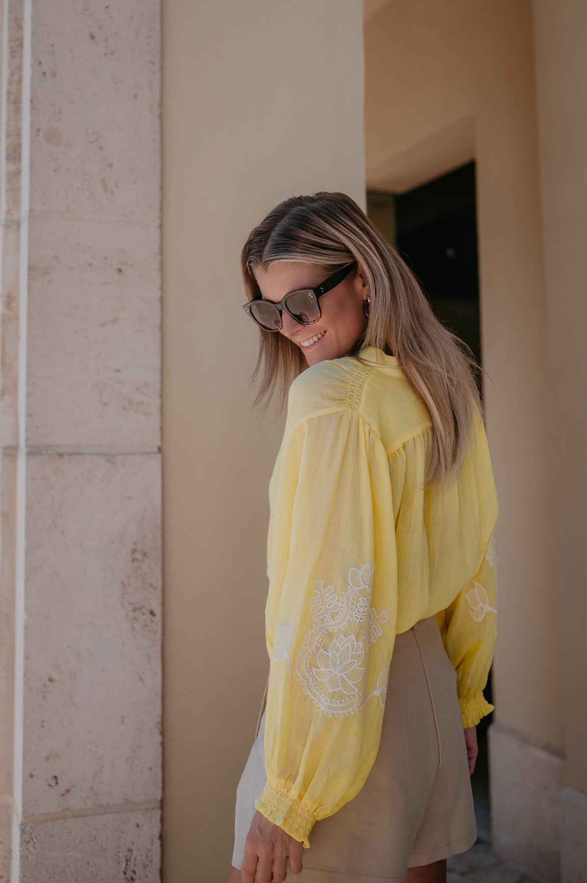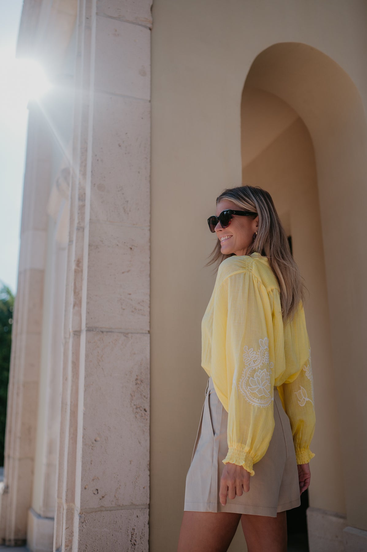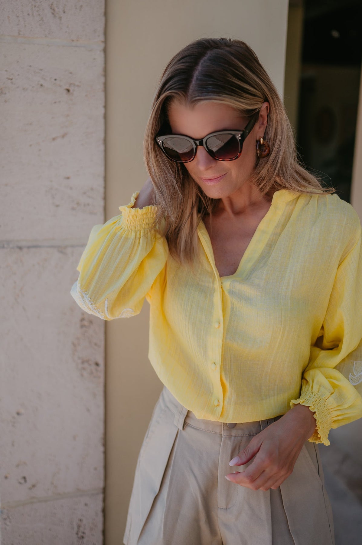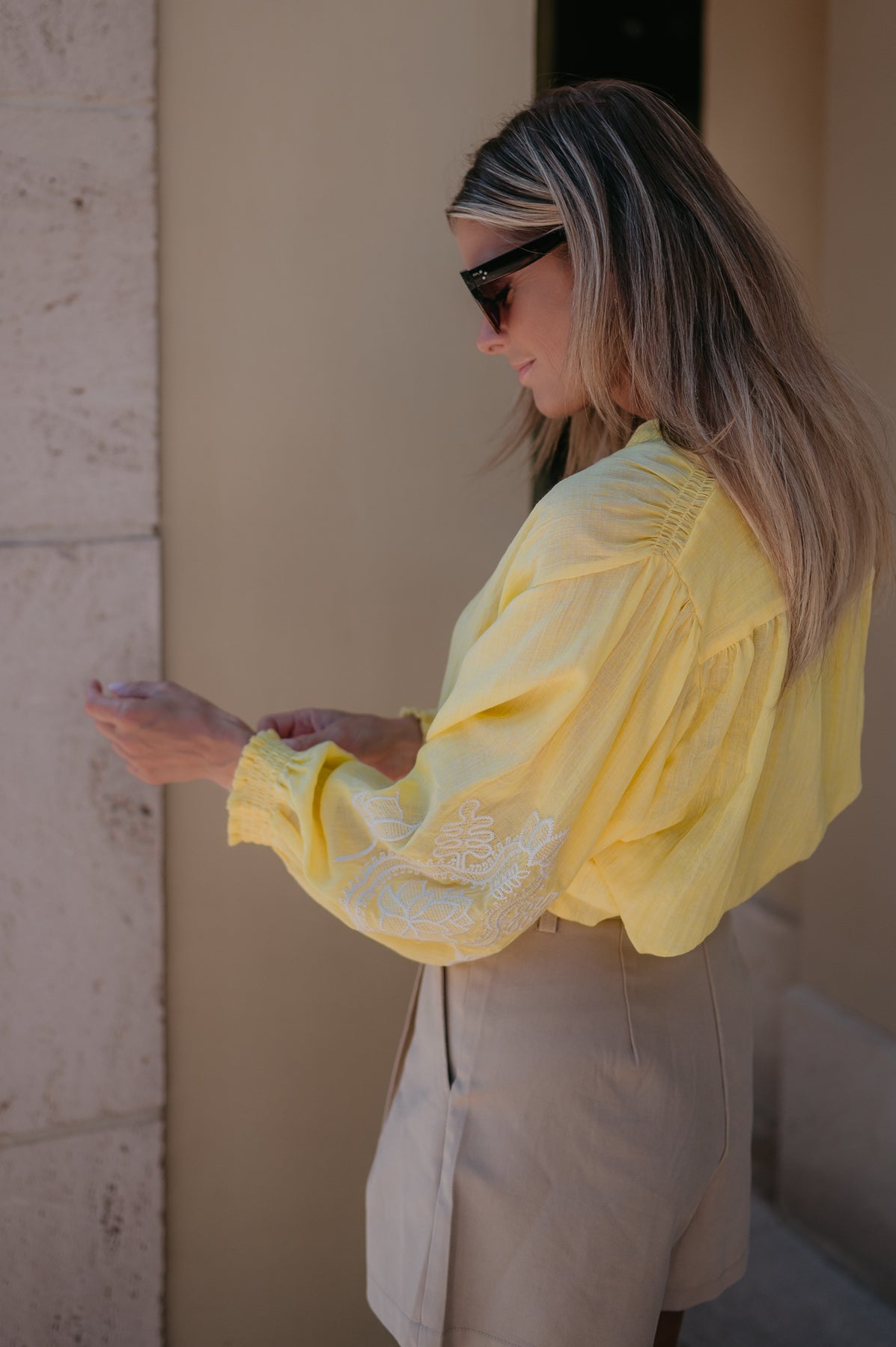 De subtiele details op de mouwen geven het net dat beetje extra, zonder te overdrijven. Perfect om te dragen op een jeans of shortje.