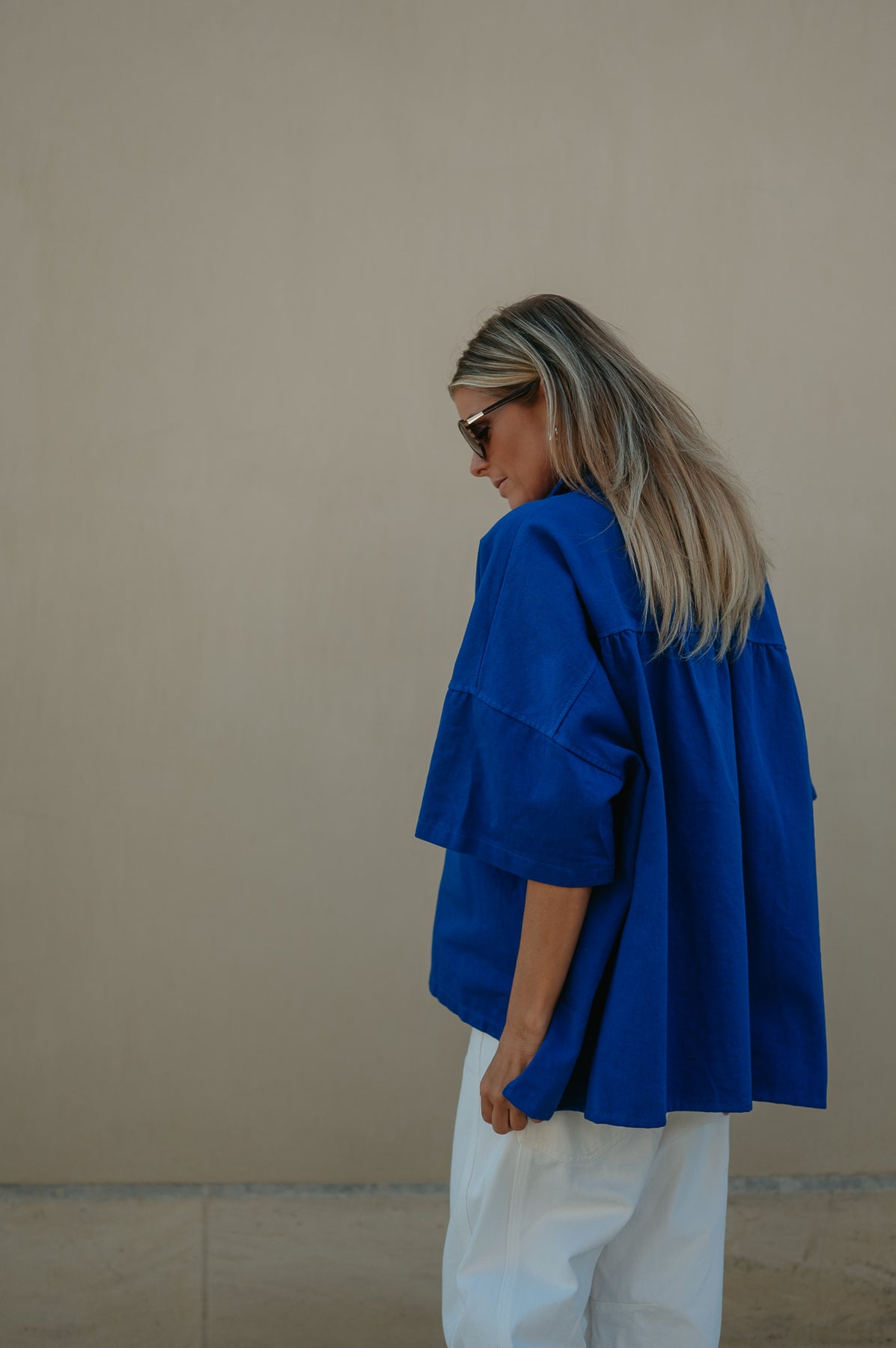 Gemaakt van een iets stevigere stof, waardoor het perfect is voor die eerste frisse herfstdagen.
