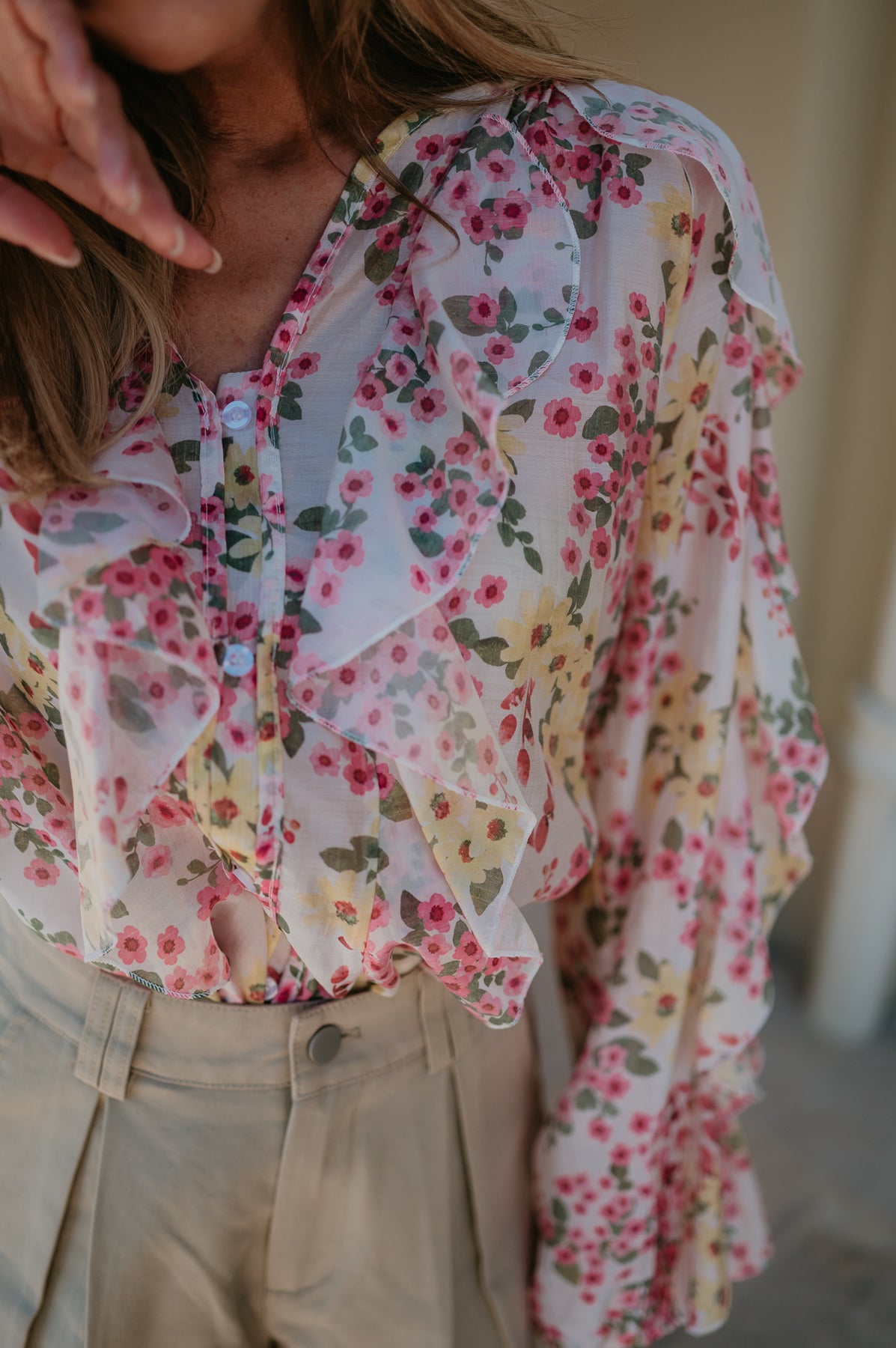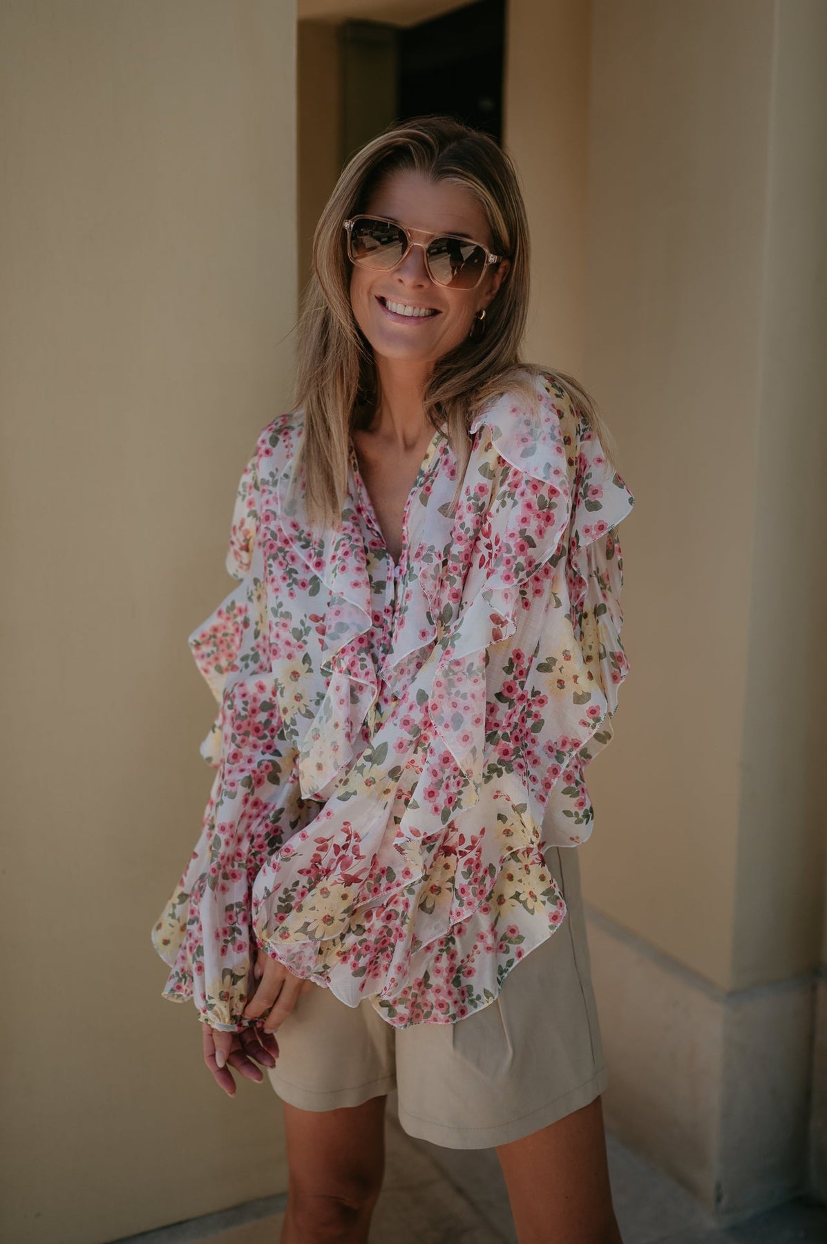 Deze blouse met kleurrijke bloemetjes is het perfecte item voor een frisse, vrolijke look.