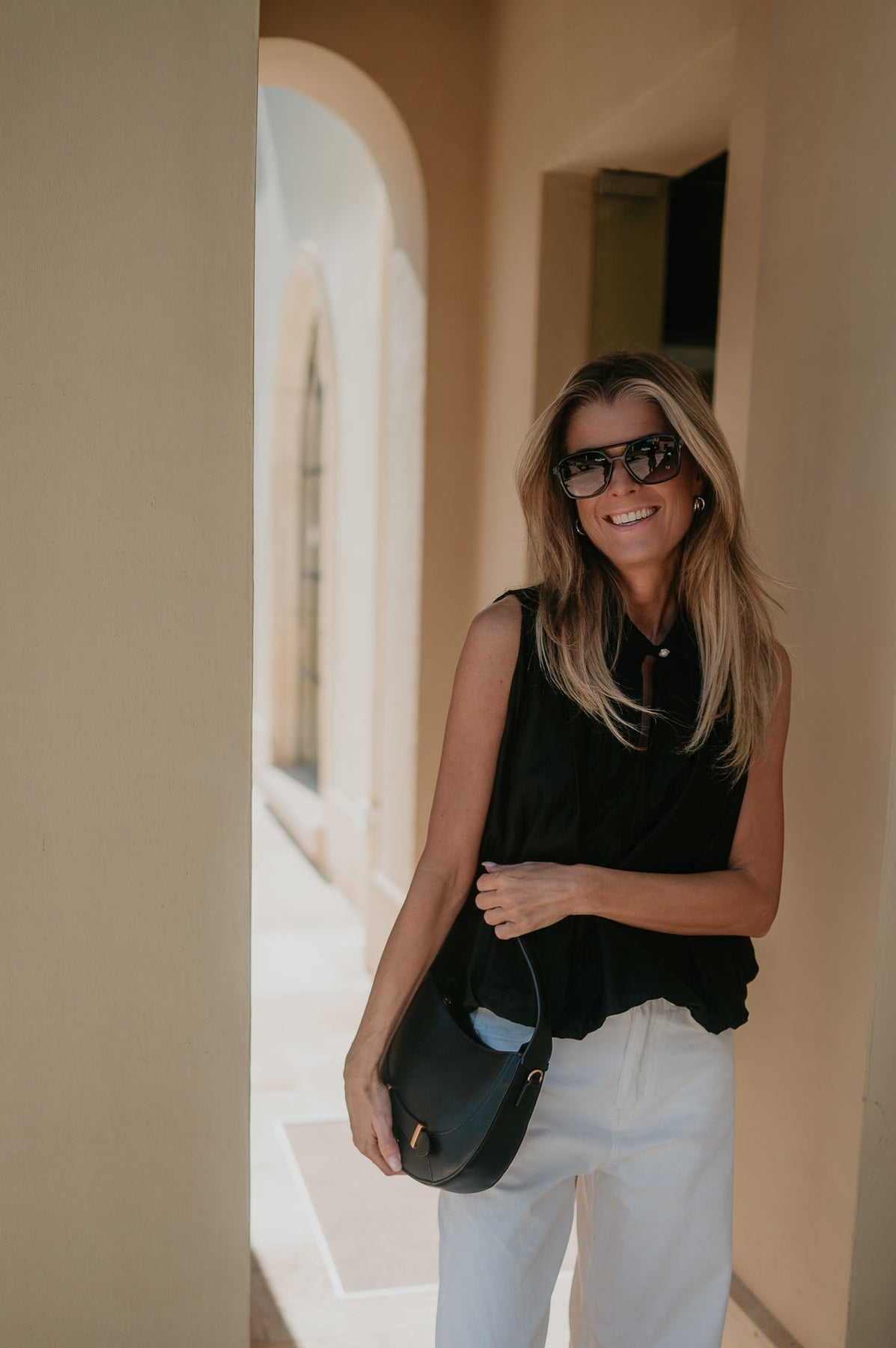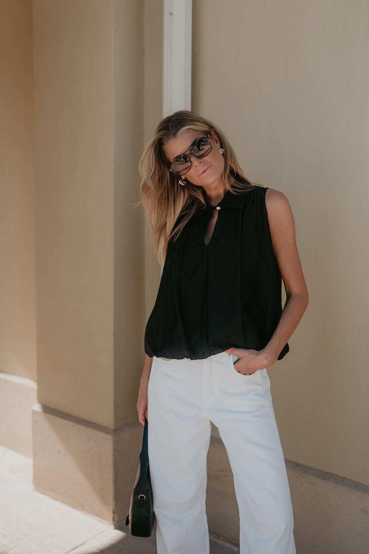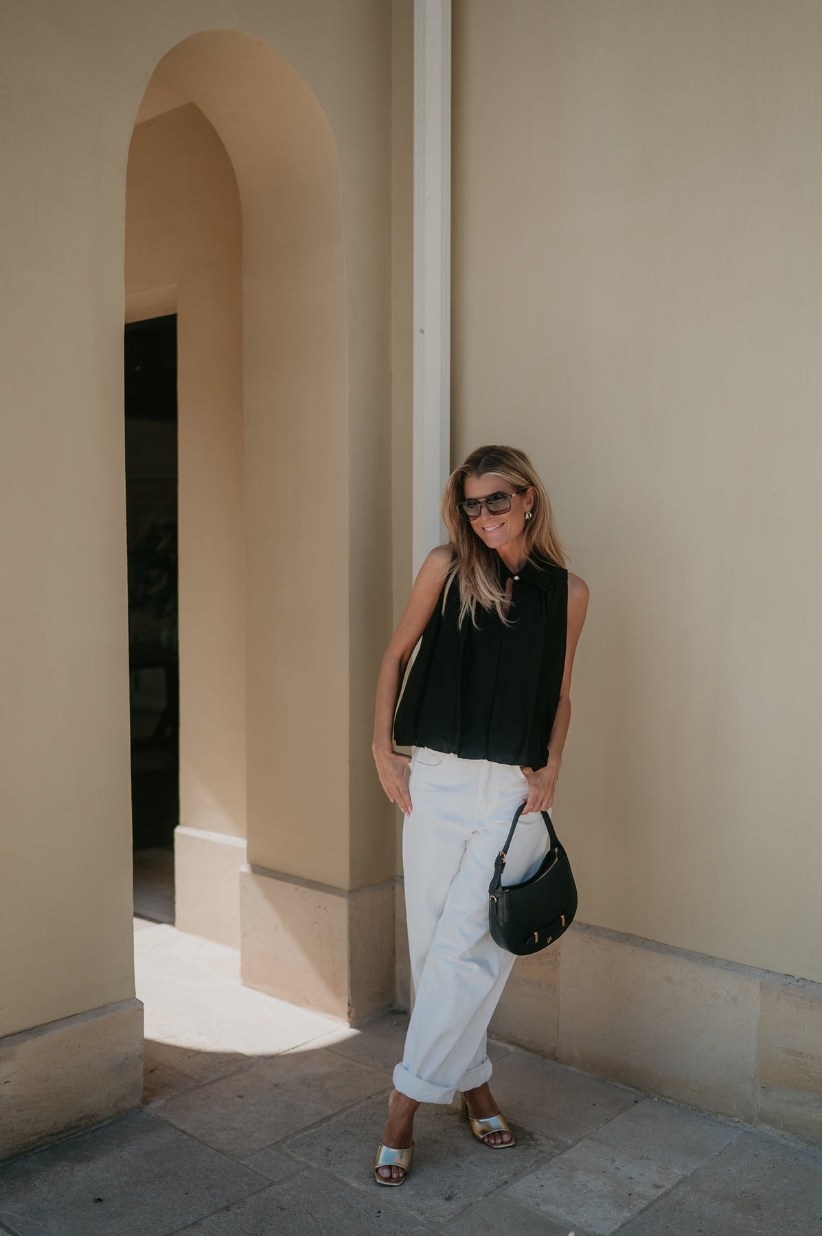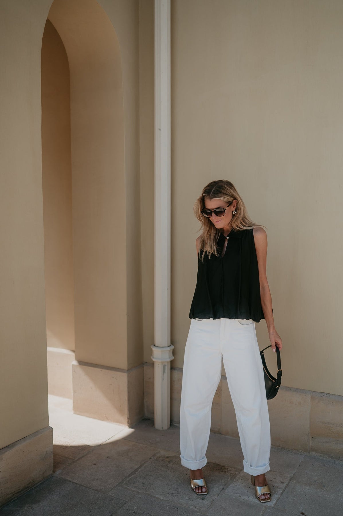 De pasvorm is losjes en vrouwelijk, waardoor het heerlijk draagt op warme dagen. Combineer het met een rok of broek voor een stijlvolle, zomerse look.