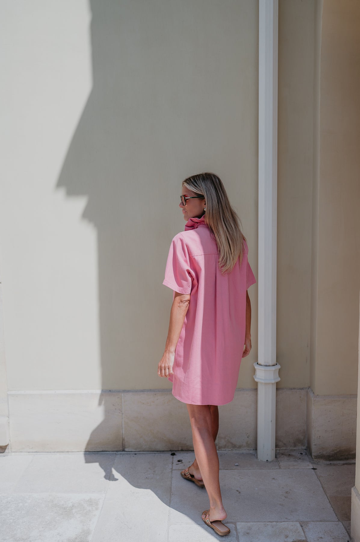 Prachtig kort kleed met een opvallende, stijlvolle kraag.